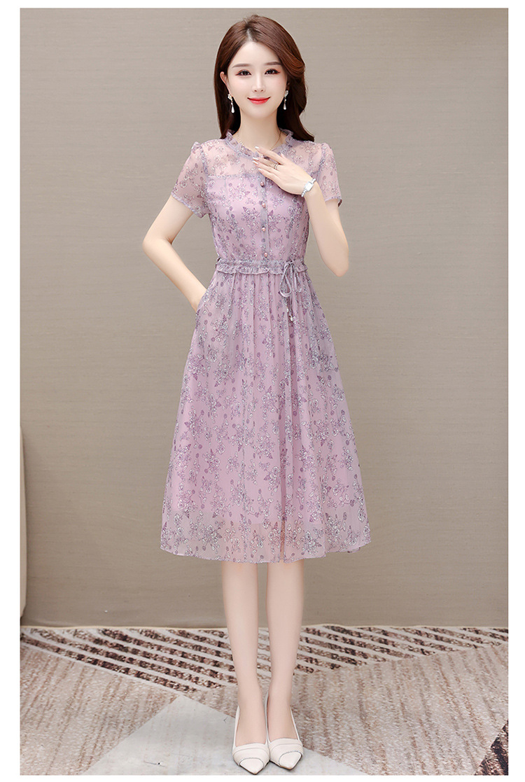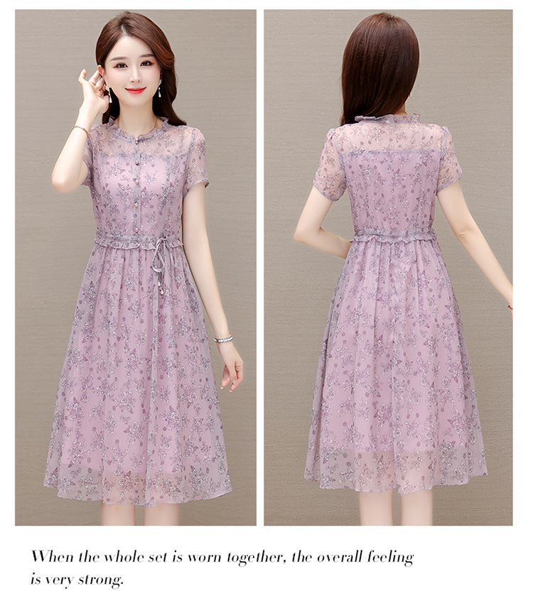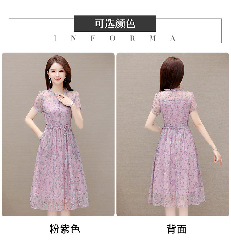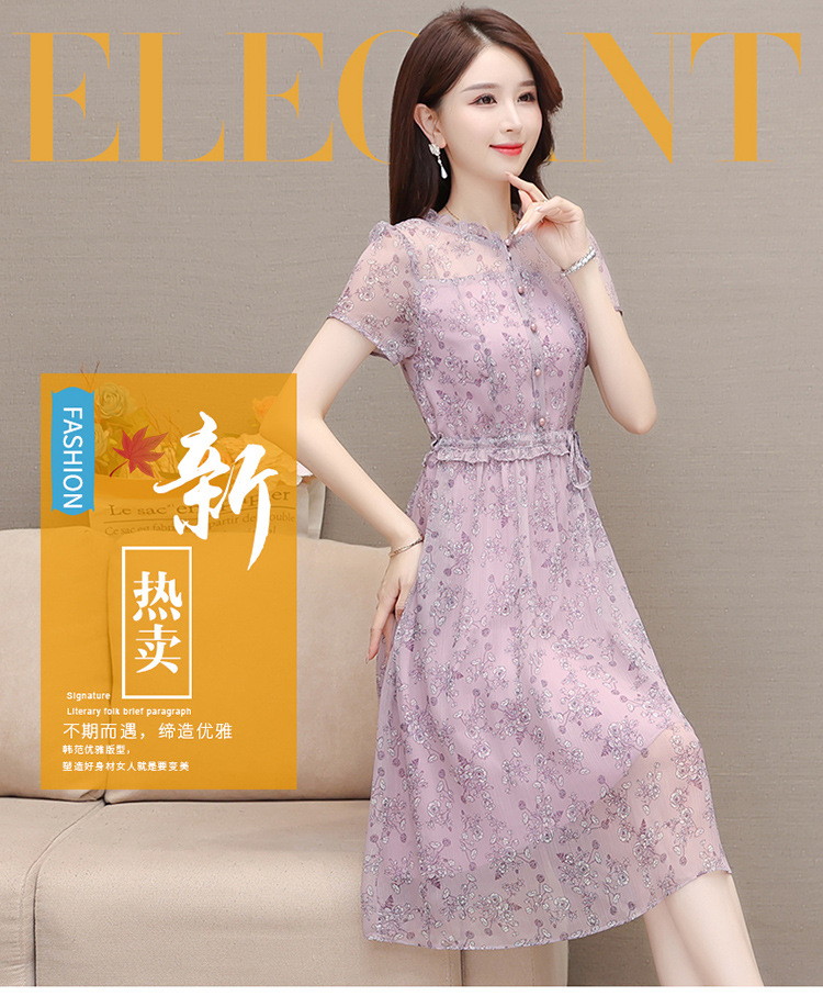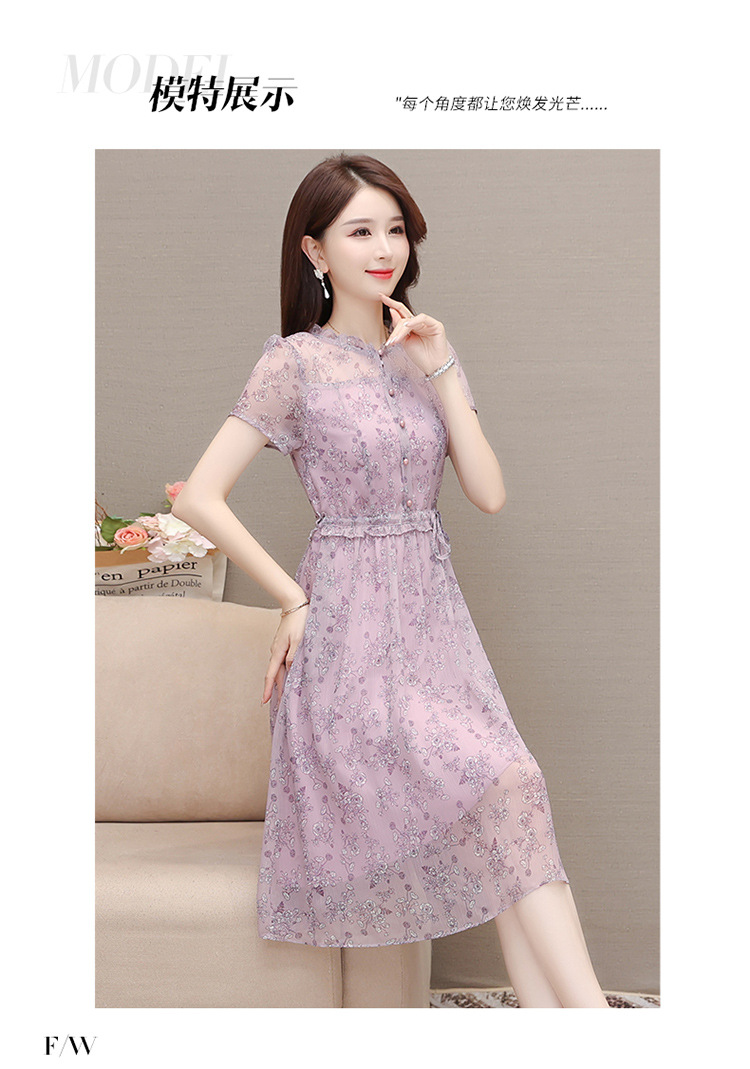 DD-碎花连衣裙女2023年夏季新款洋气中长裙短袖口袋打底裙A字裙