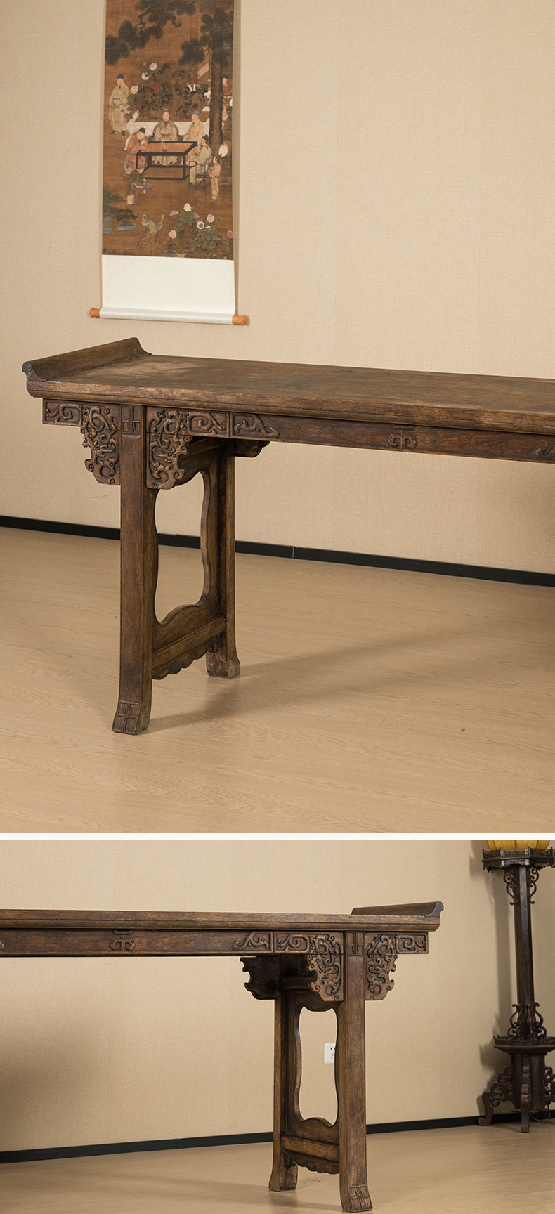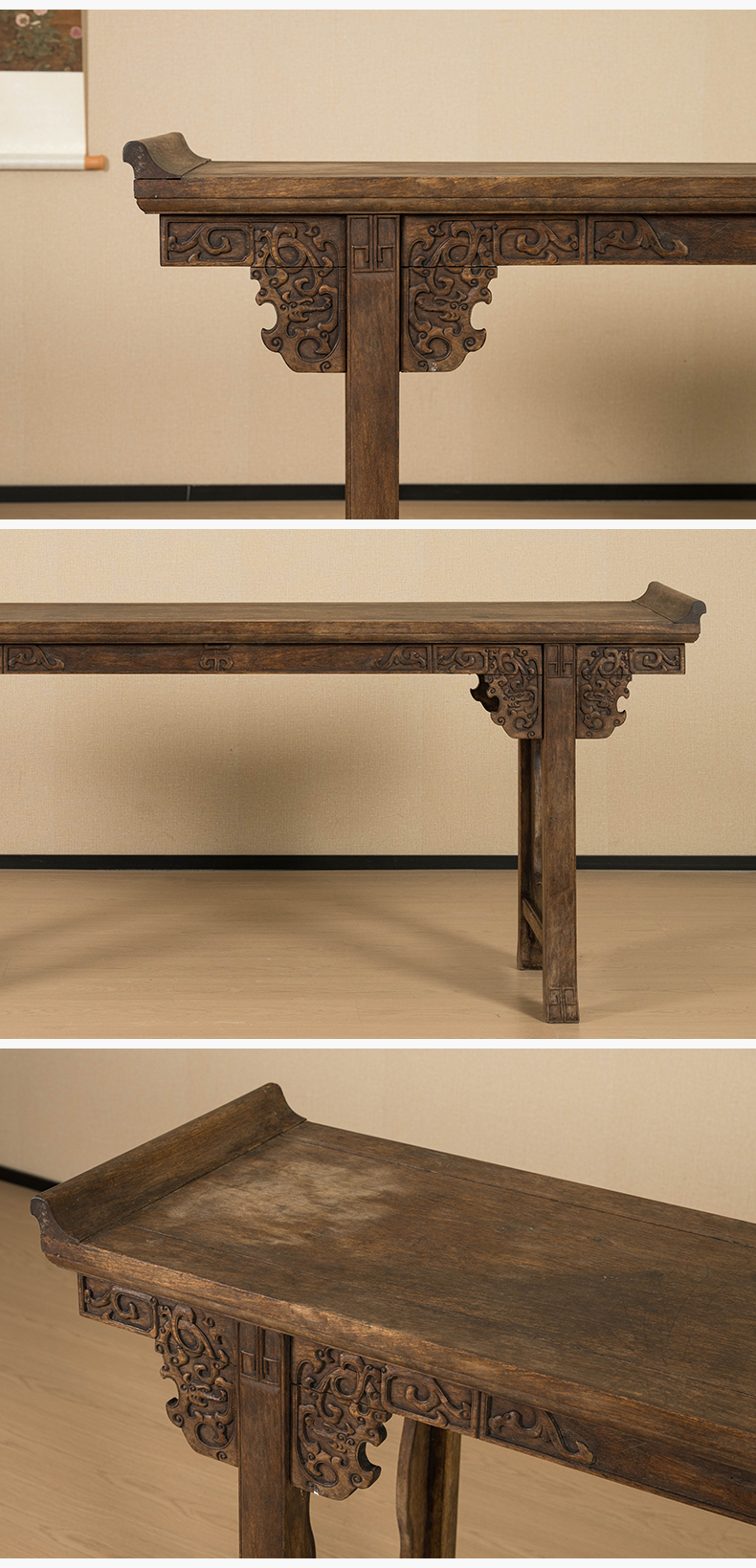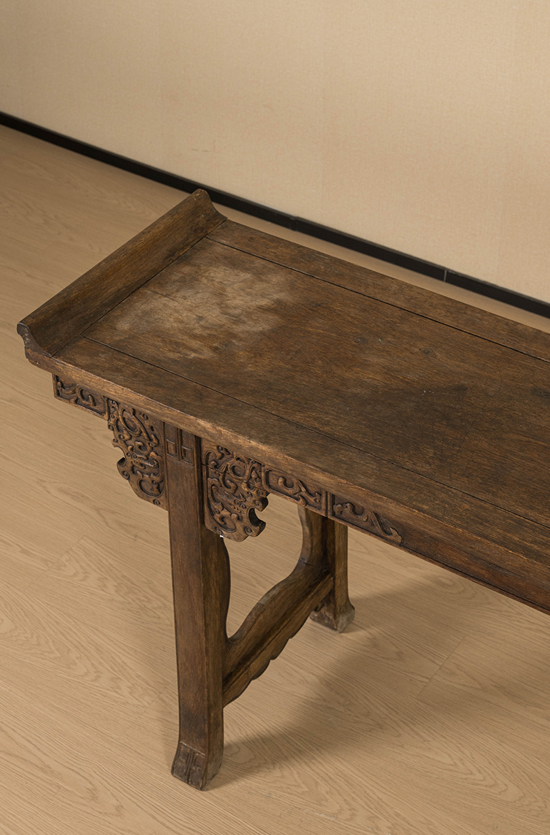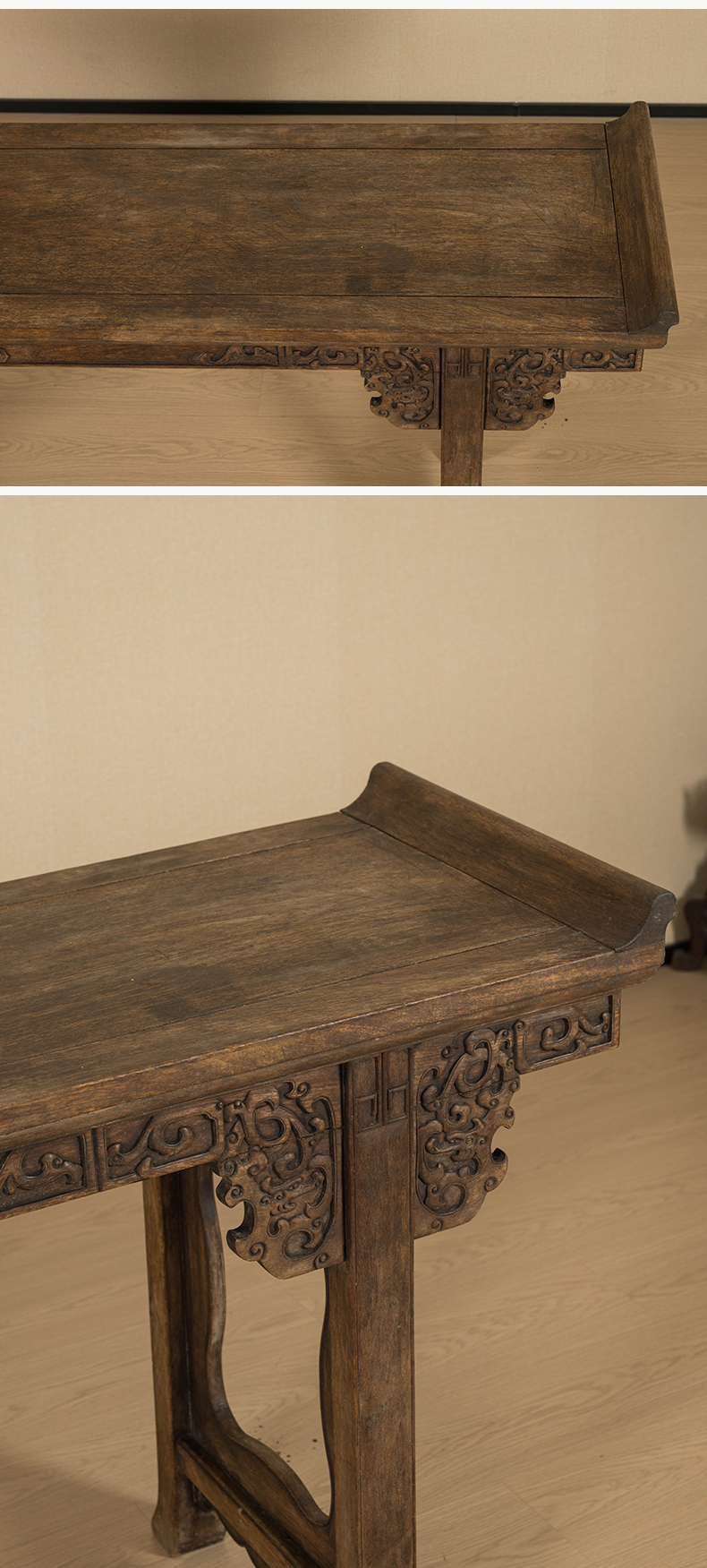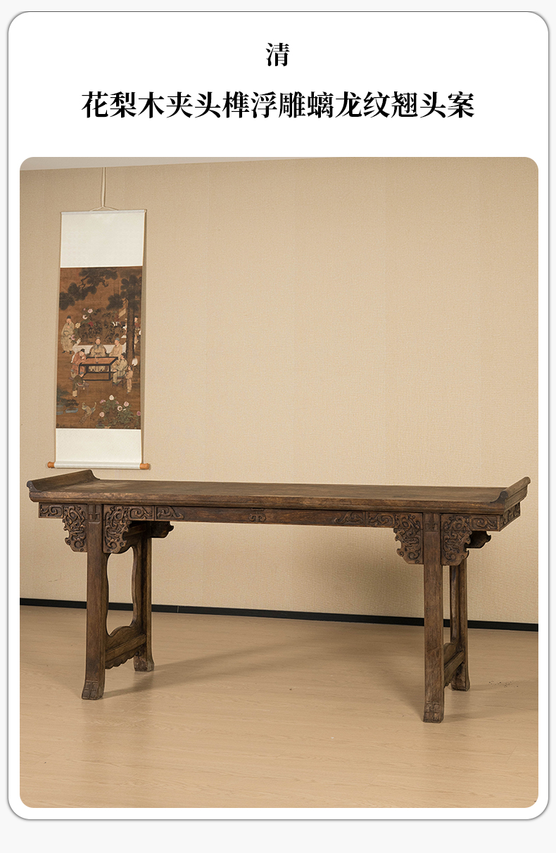 清 花梨木夹头榫浮雕螭龙纹翘头案