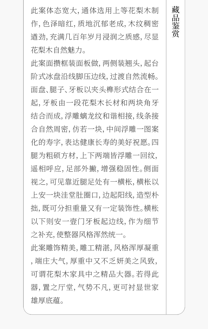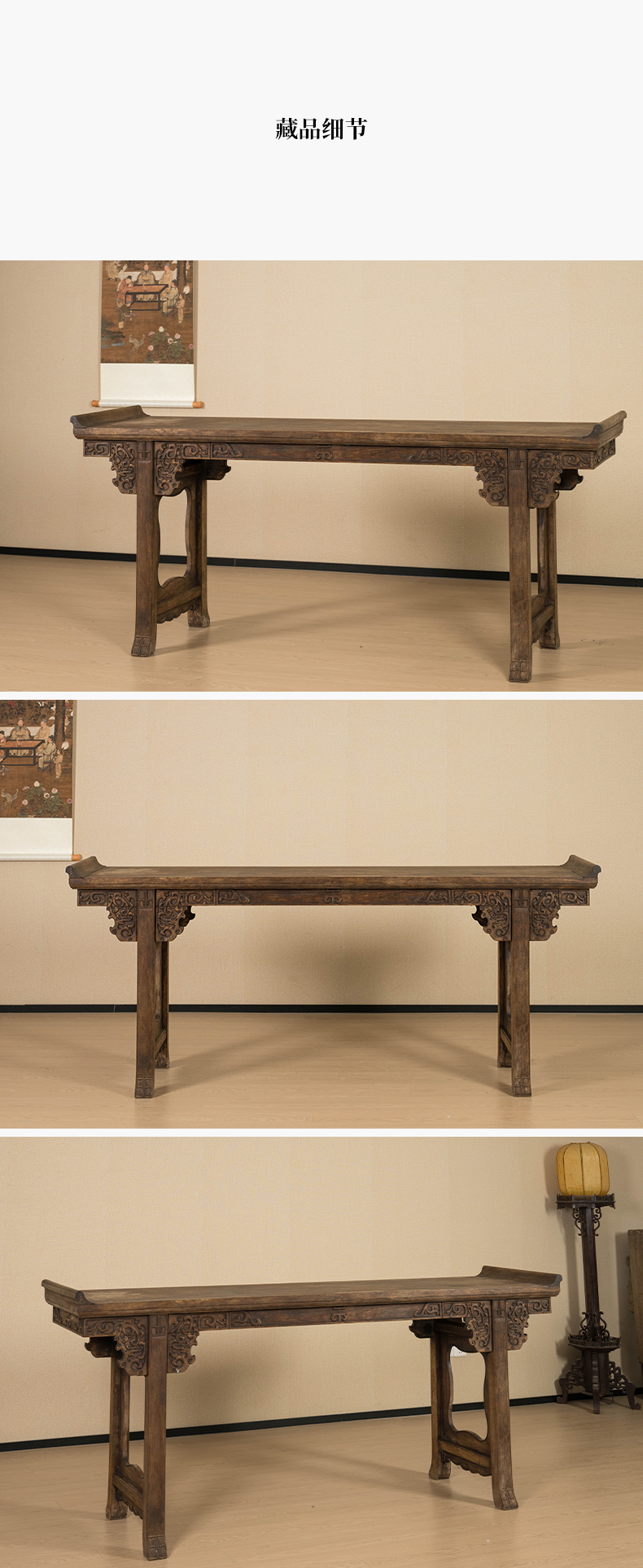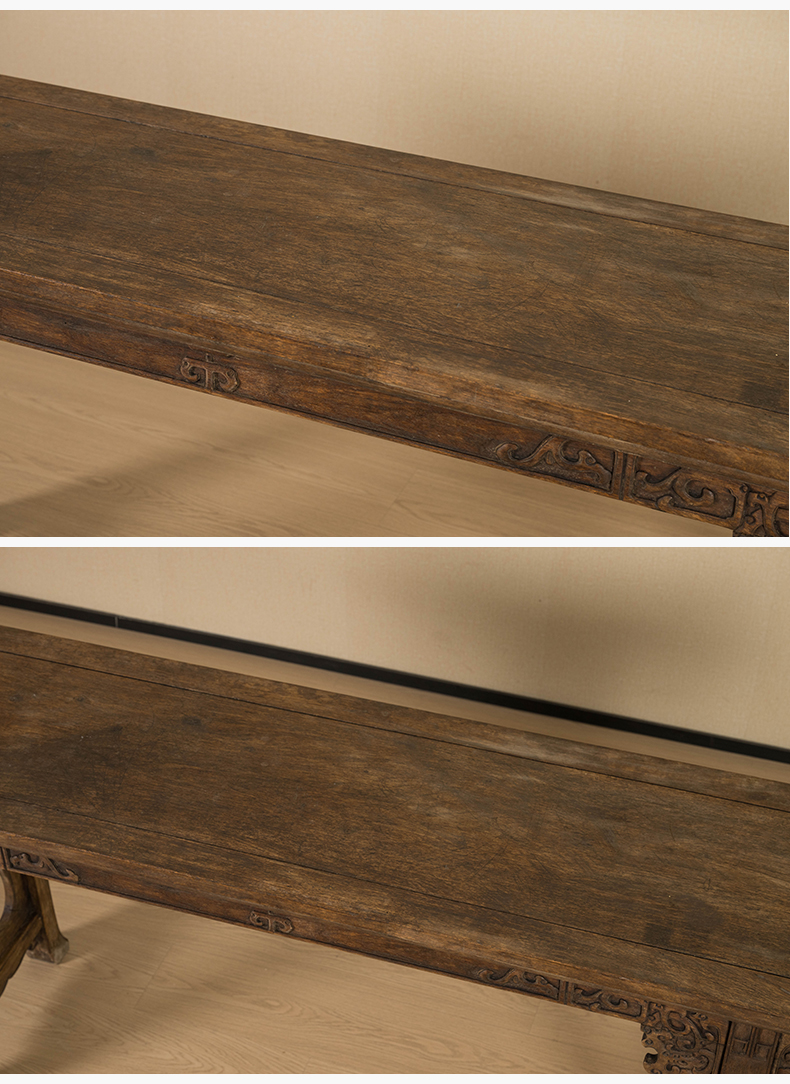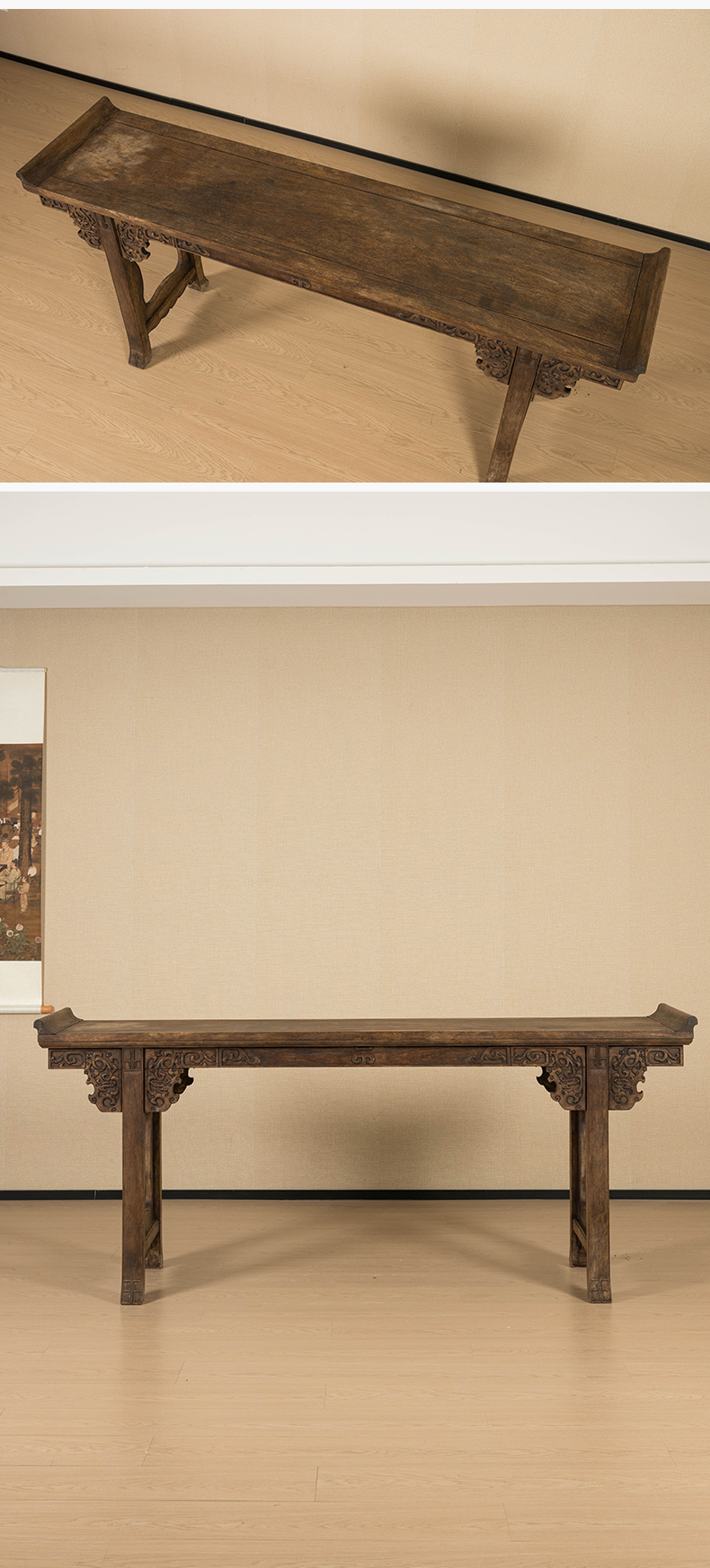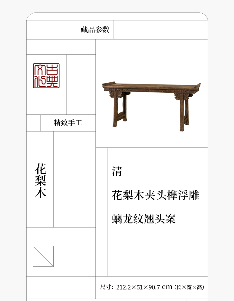 清 花梨木夹头榫浮雕螭龙纹翘头案