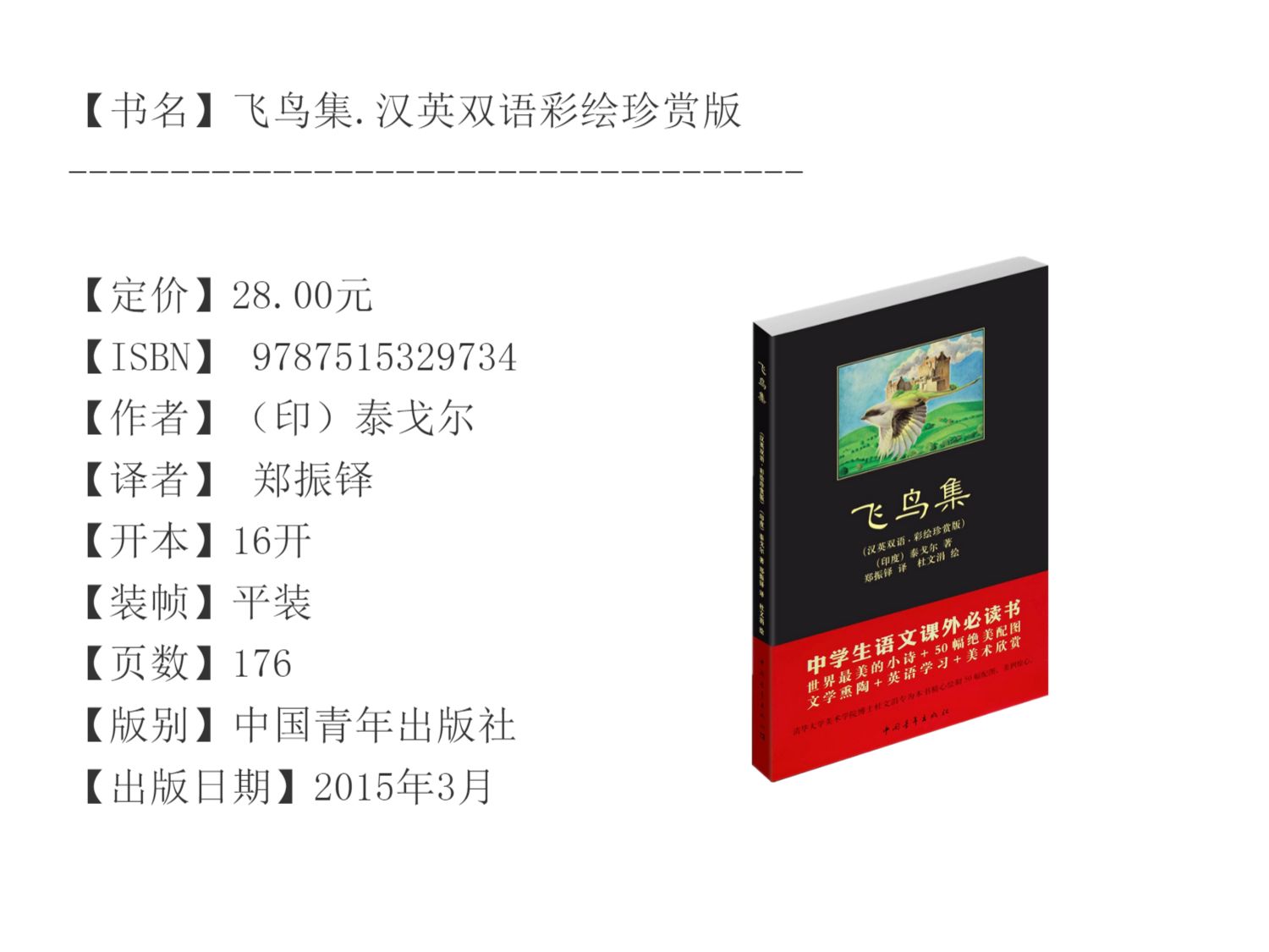 飞鸟集泰戈尔著郑振铎译 汉英双语彩绘珍赏版 黑皮书中国青年出版社中小学生课外阅读必读书正品直发