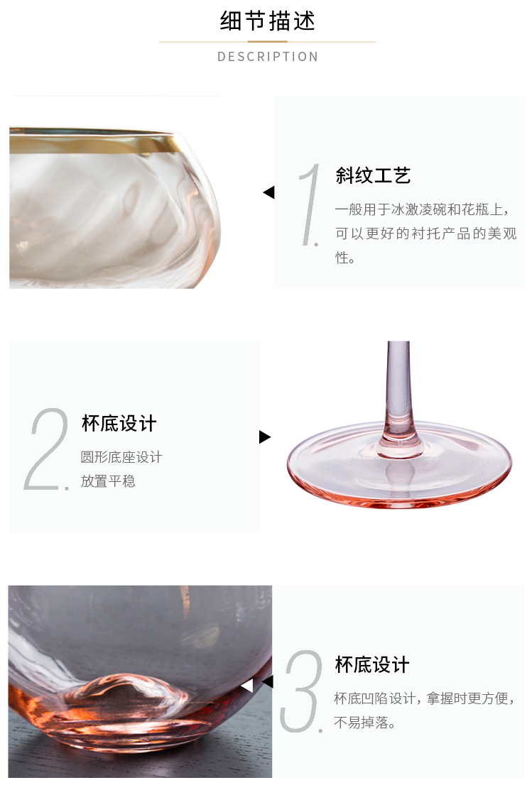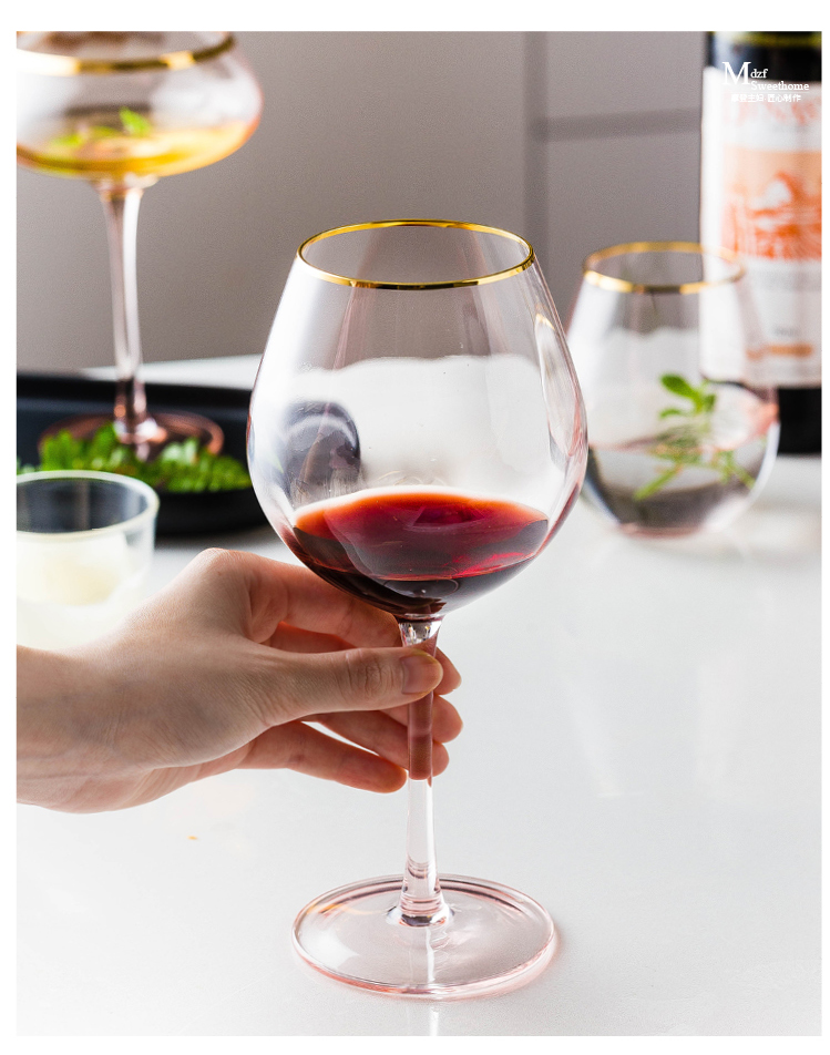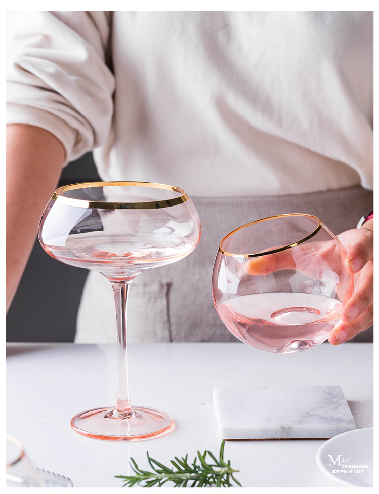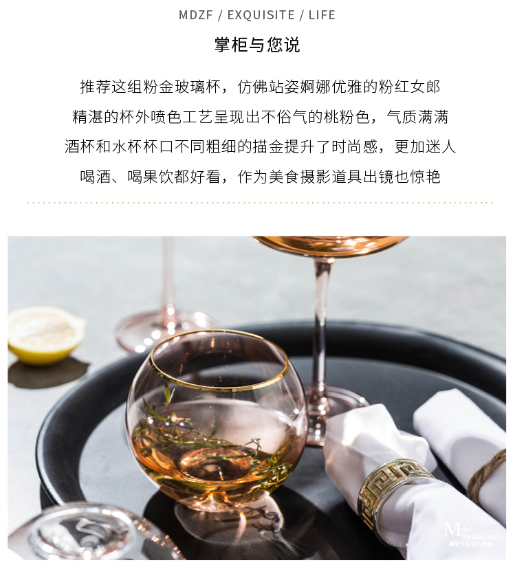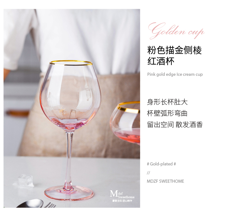 摩登主妇描金水晶玻璃高脚杯红酒杯家用葡萄酒鸡尾酒杯大肚甜品杯