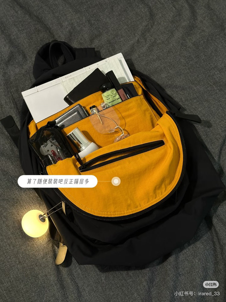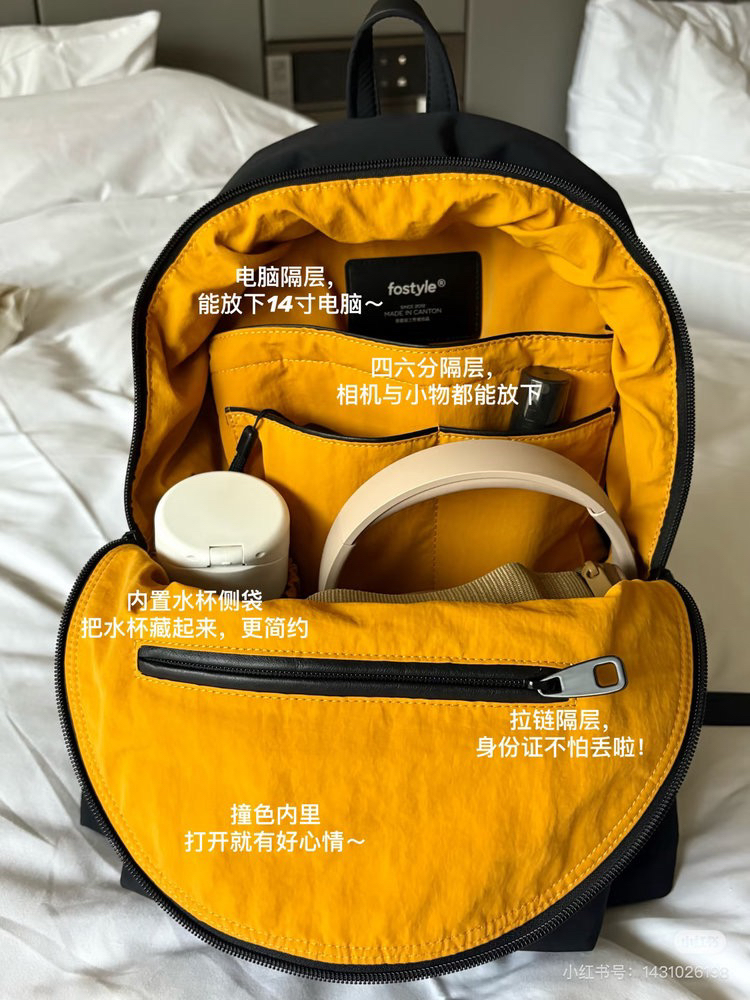 短途出差告别行李箱一个双肩包就够了。书包内里功能分区也很实用