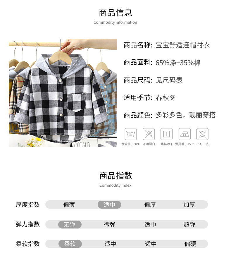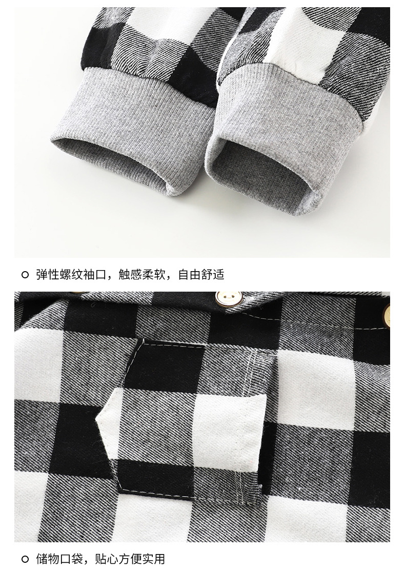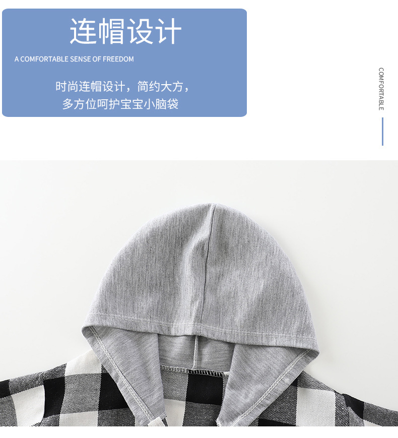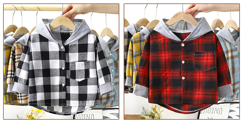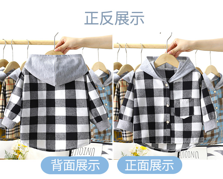 【49/任选2件】儿童长袖男童衬衣宝宝新款韩版春秋娃娃衫女童格子连帽衬衫外套潮聚