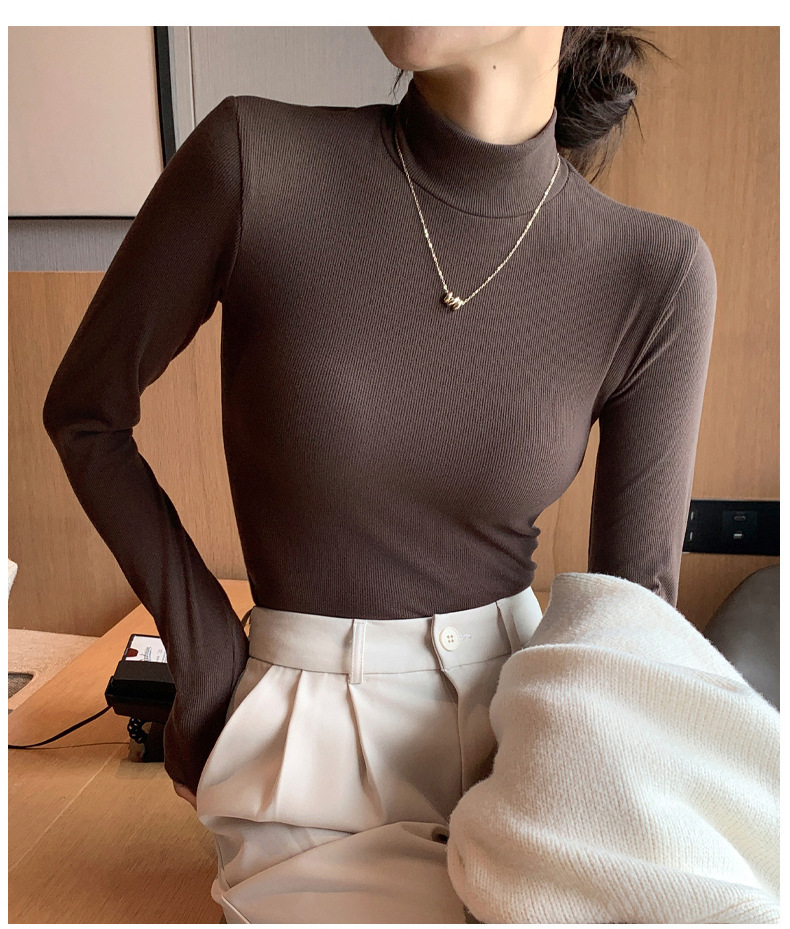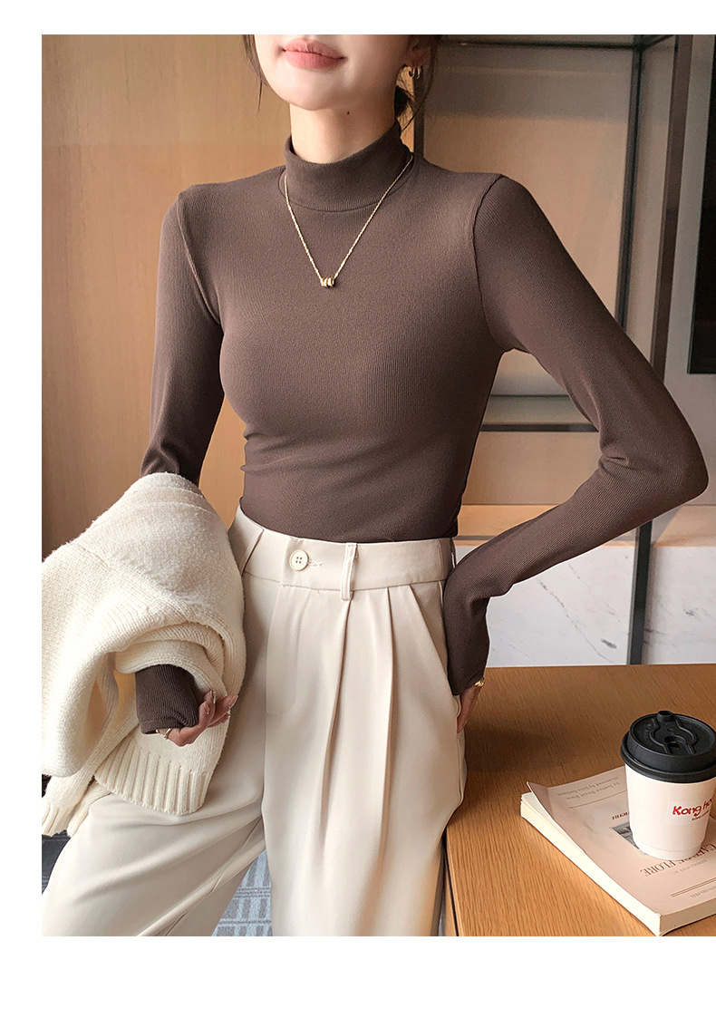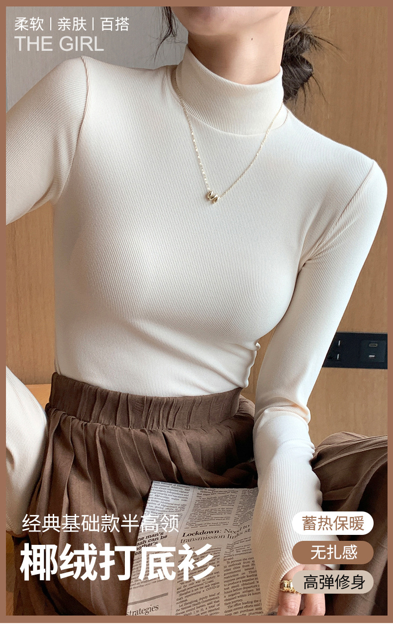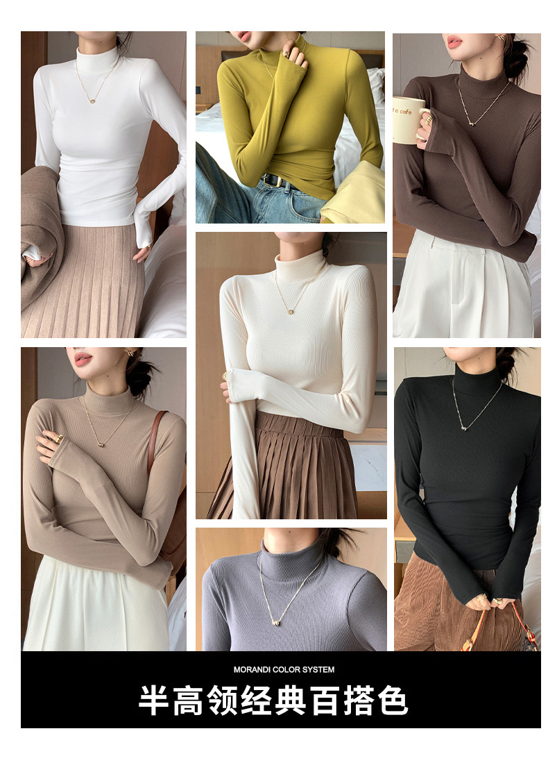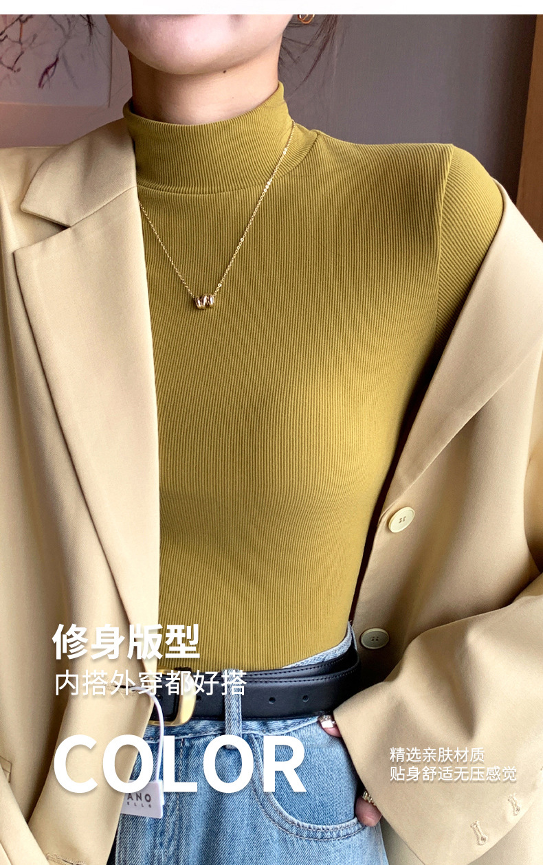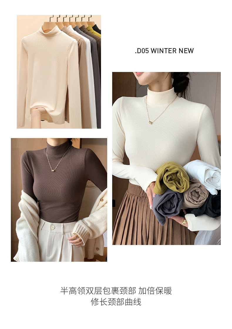 丁摩 【两条装】针织半高领打底衫女秋冬内搭秋衣洋气中领套头长袖5ZF-H329