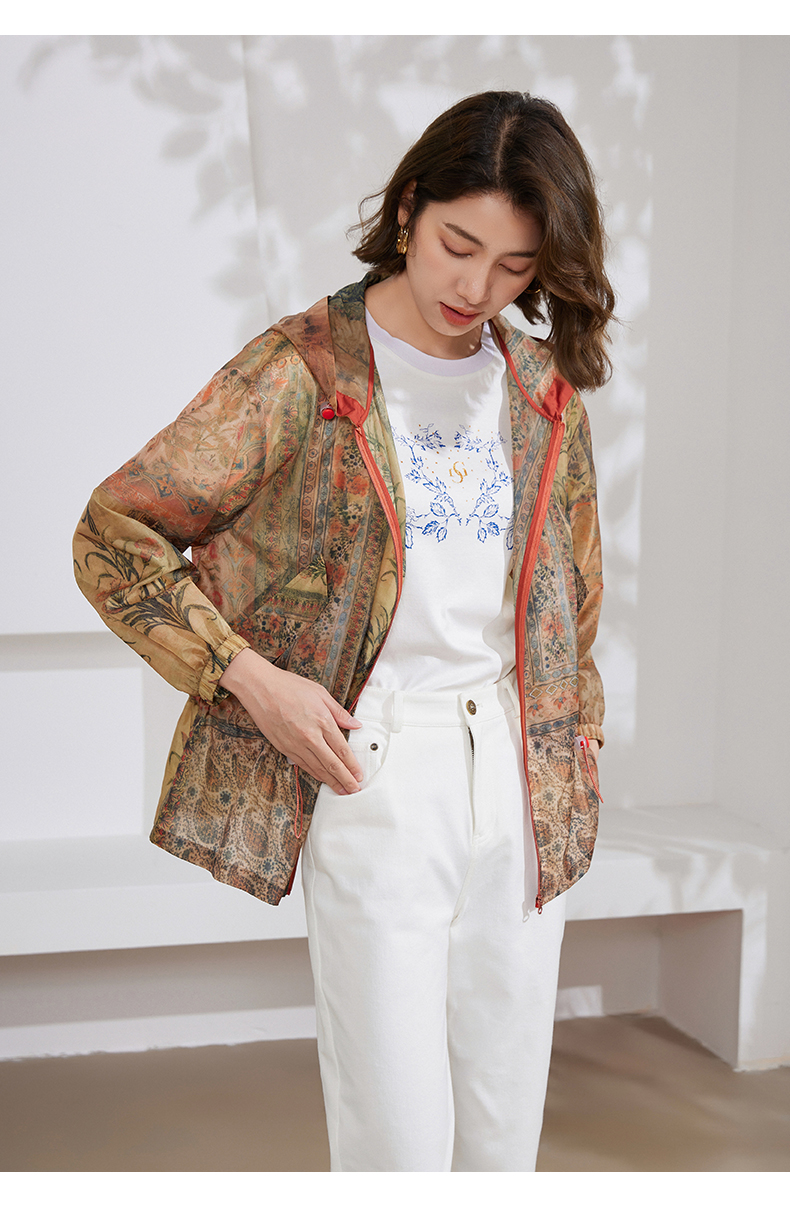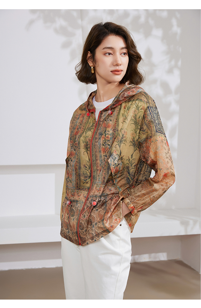 乔万尼春夏薄款外套女新品复古图腾收腰设计EM2B922