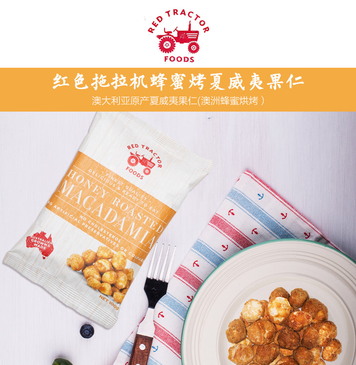 红色拖拉机坚果系列(原味、盐烤、蜂蜜烤夏威夷果仁,原味核桃仁)