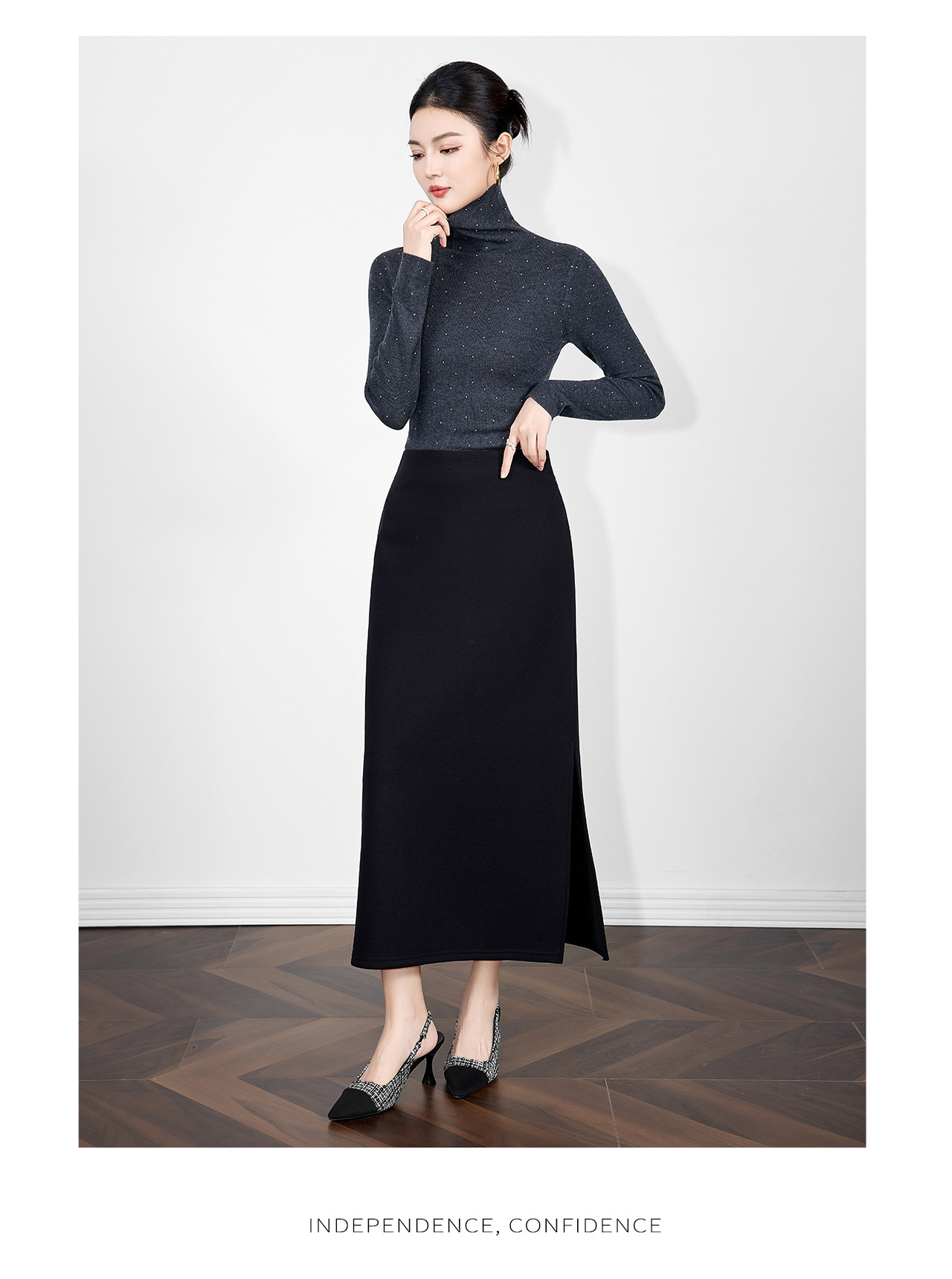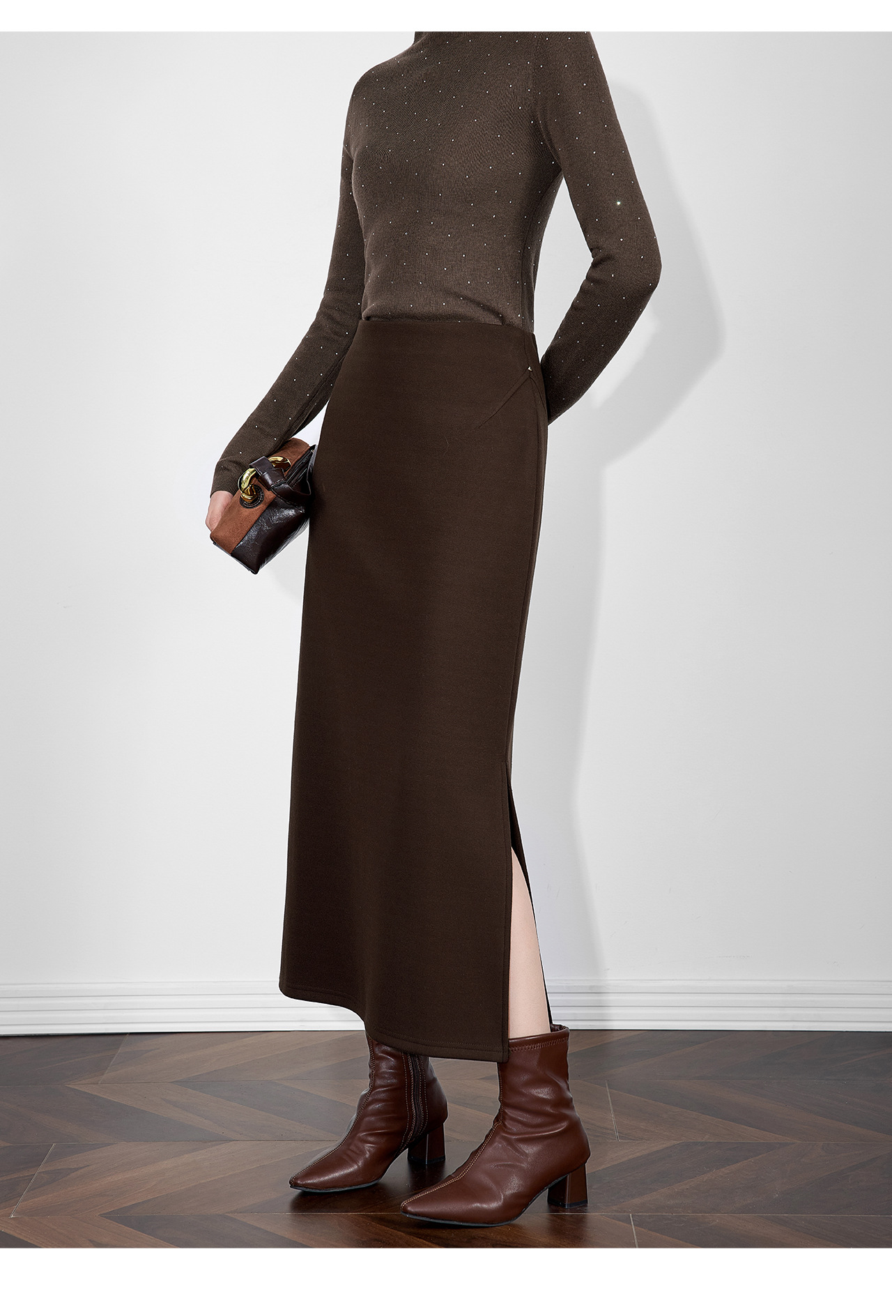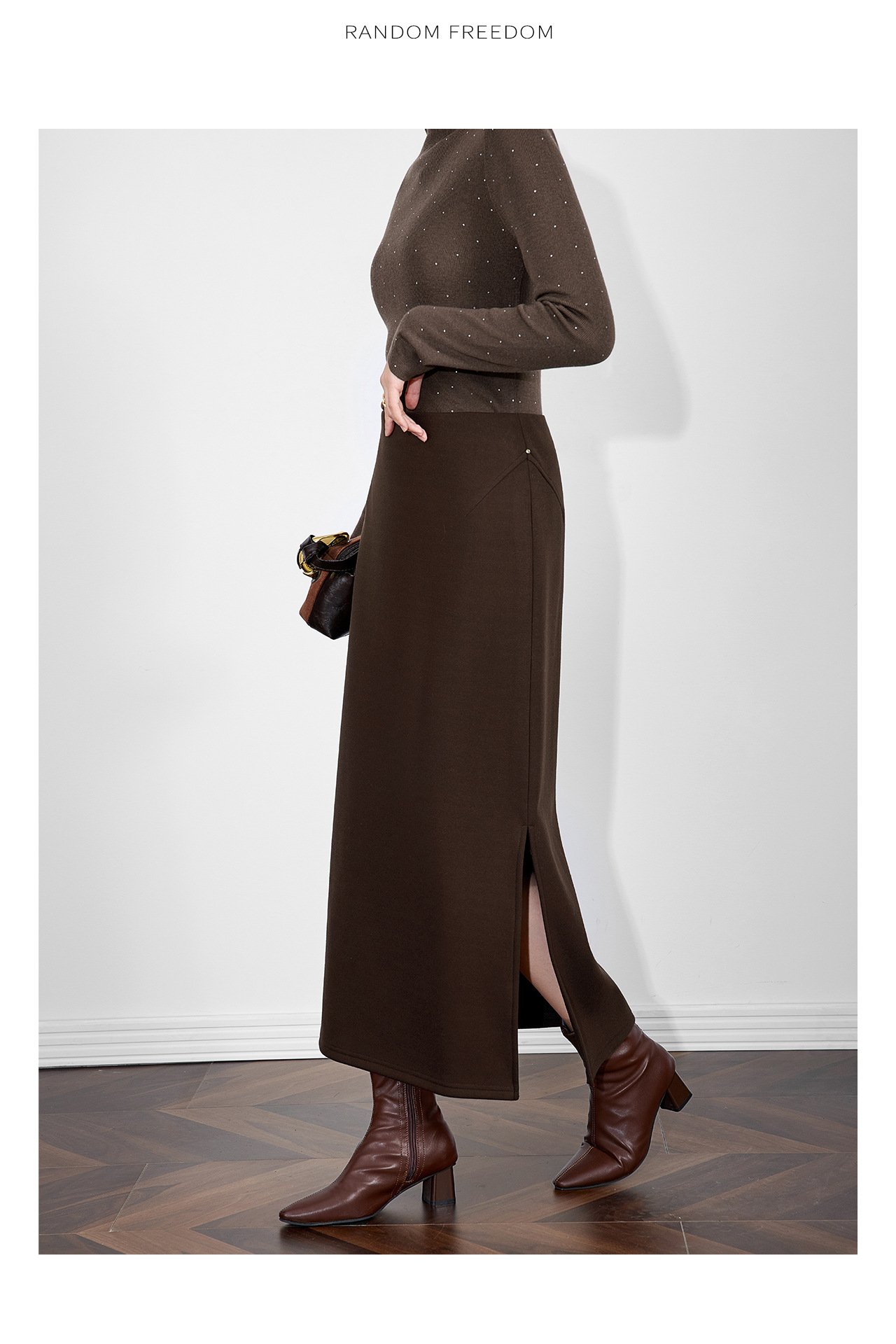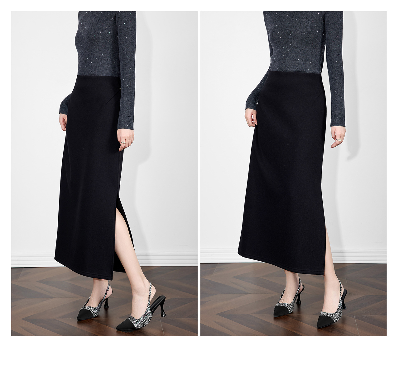 「高货wl」全新升级【铂金会员220/天猫289/差价69】(03327)洛诗琳2025秋冬气质通勤复合加绒平纹高腰毛呢开衩半身裙