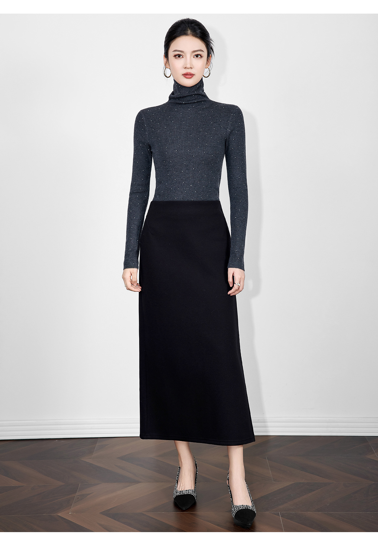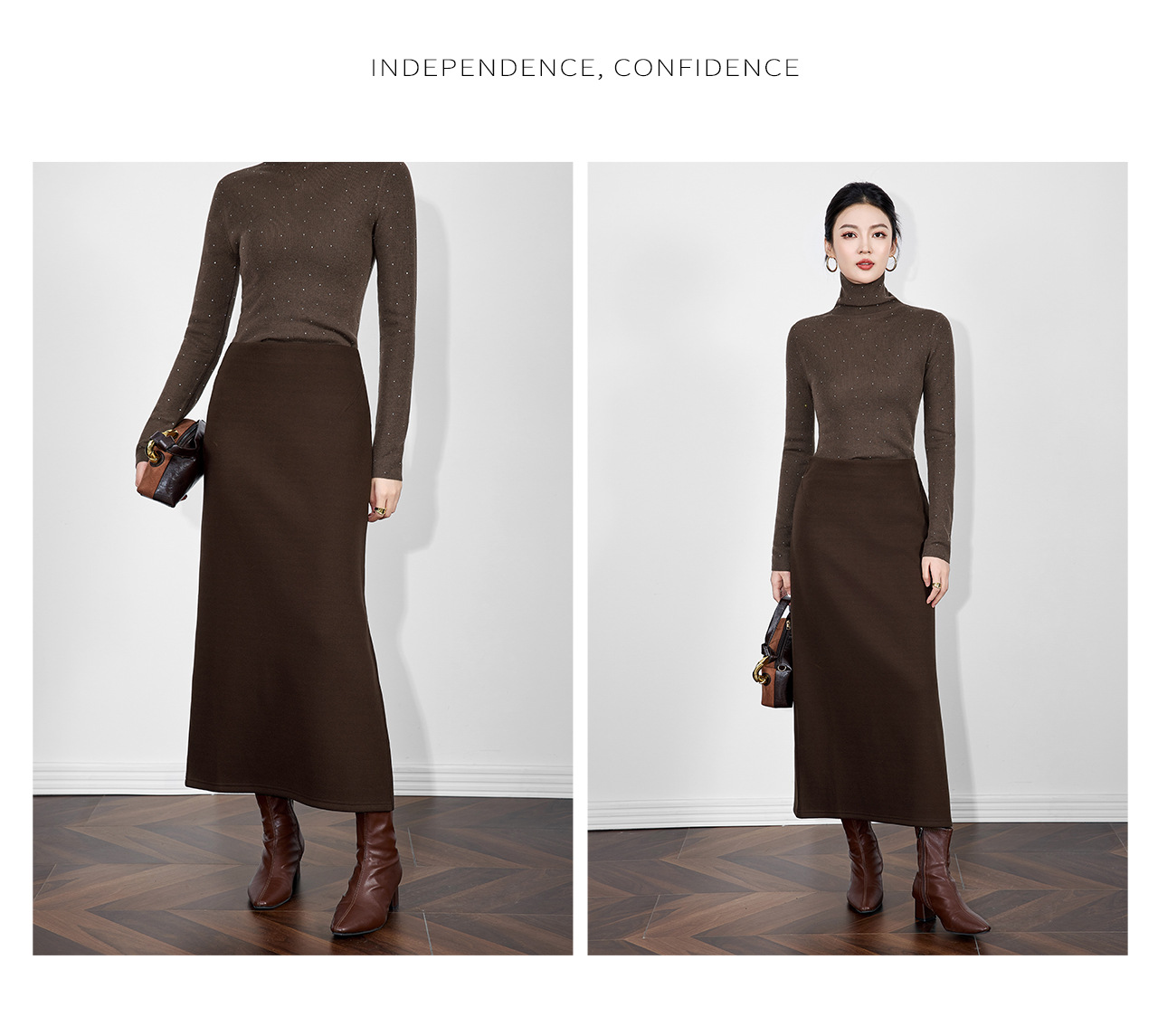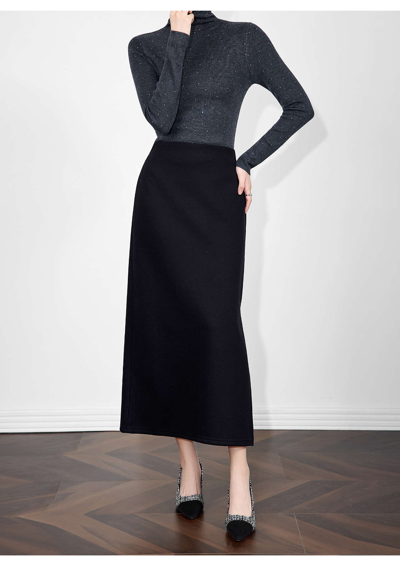 「高货wl」全新升级【铂金会员220/天猫289/差价69】(03327)洛诗琳2025秋冬气质通勤复合加绒平纹高腰毛呢开衩半身裙