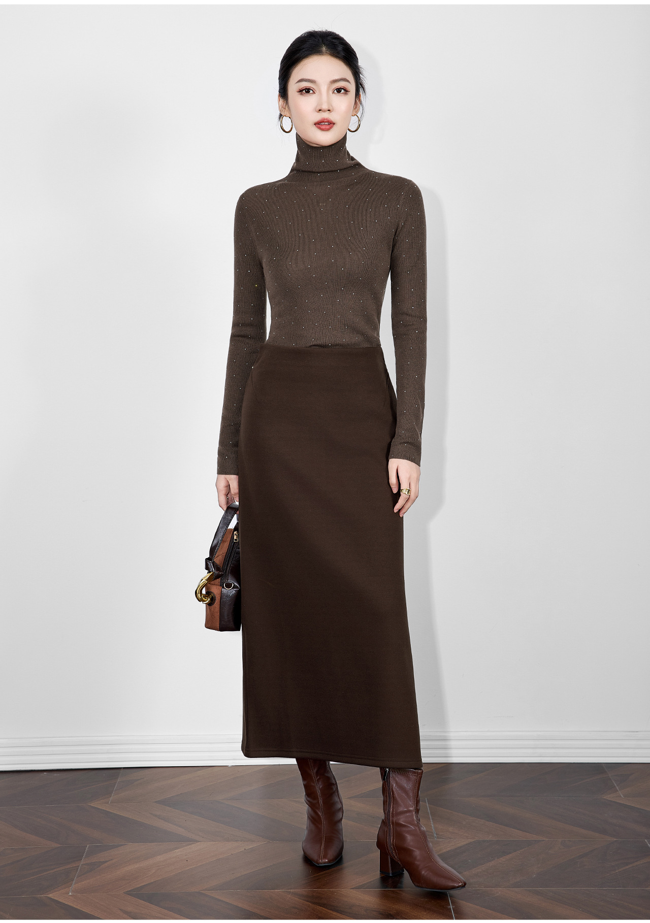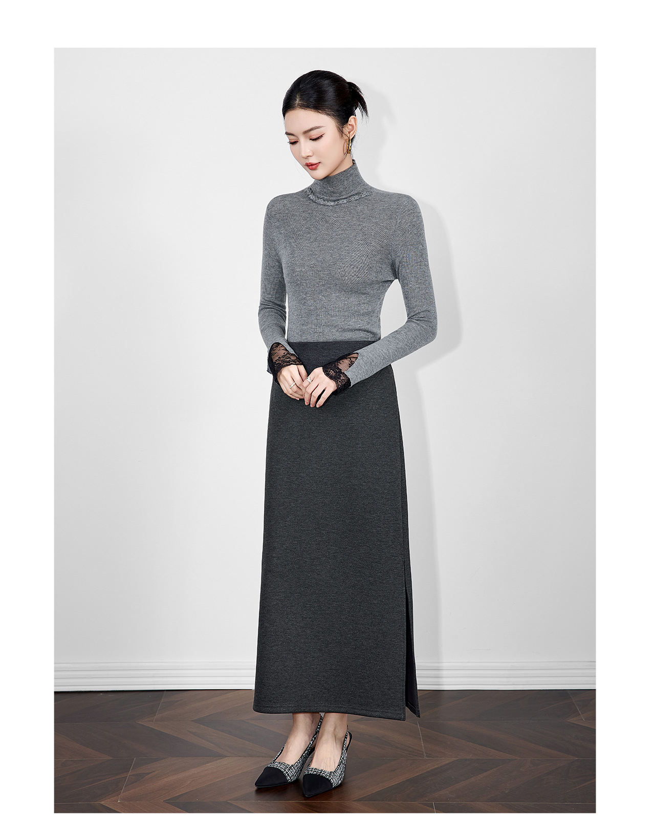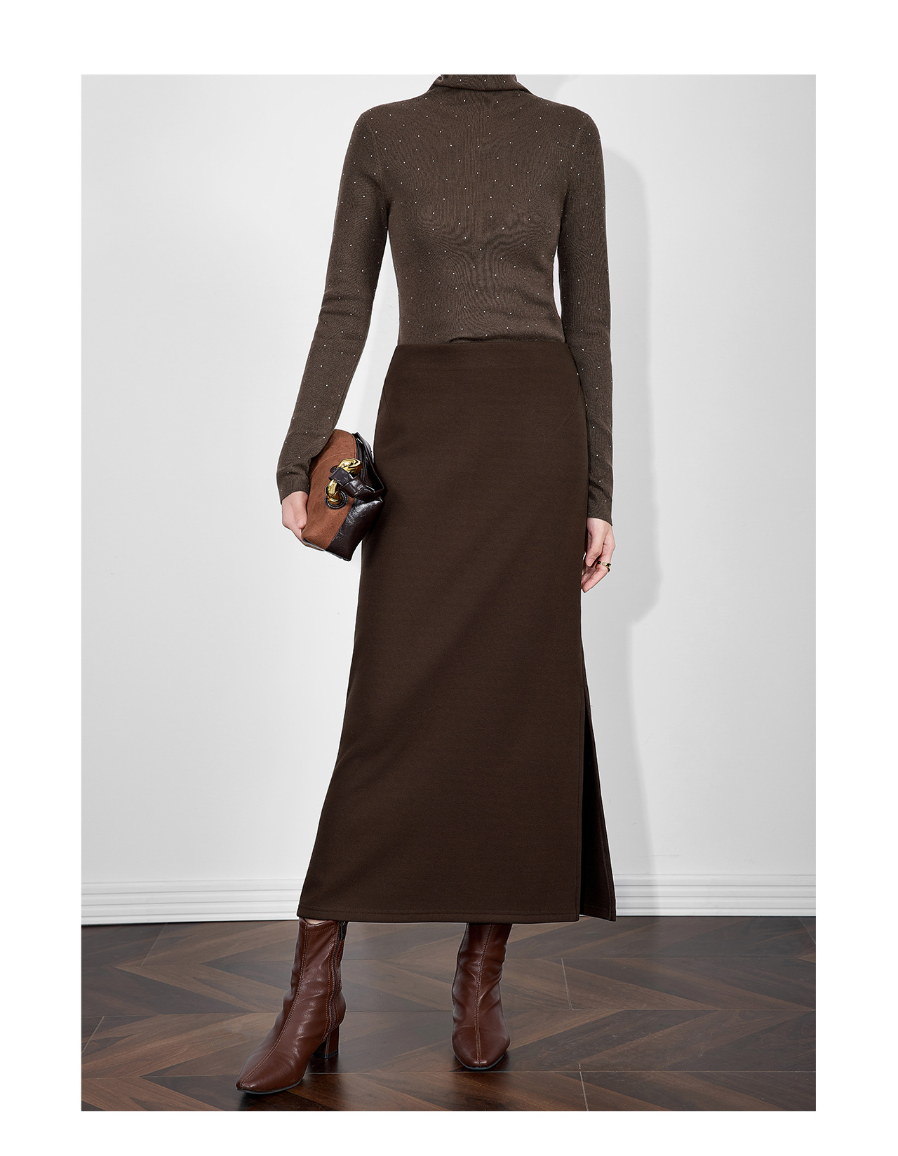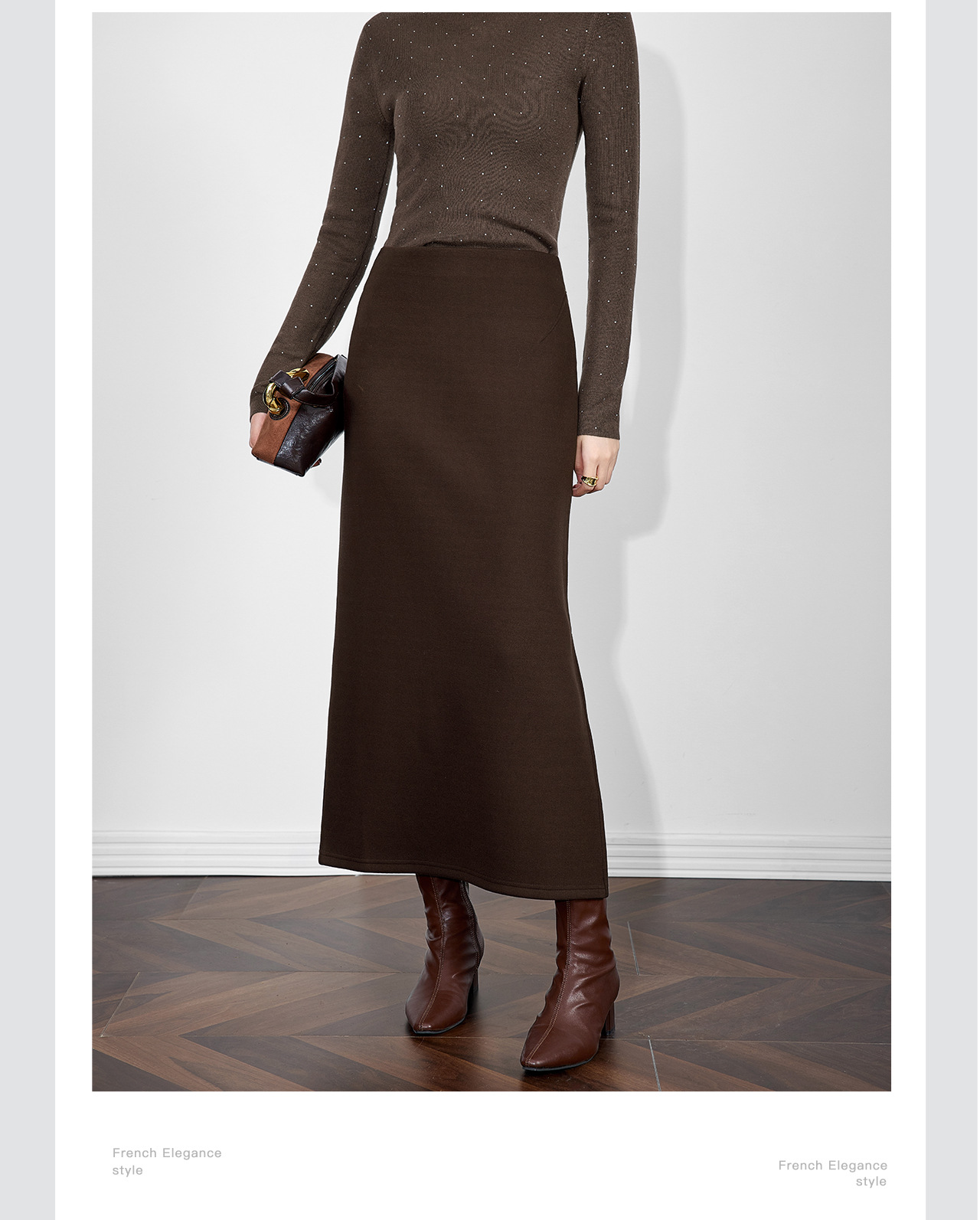 「高货wl」全新升级【铂金会员220/天猫289/差价69】(03327)洛诗琳2025秋冬气质通勤复合加绒平纹高腰毛呢开衩半身裙