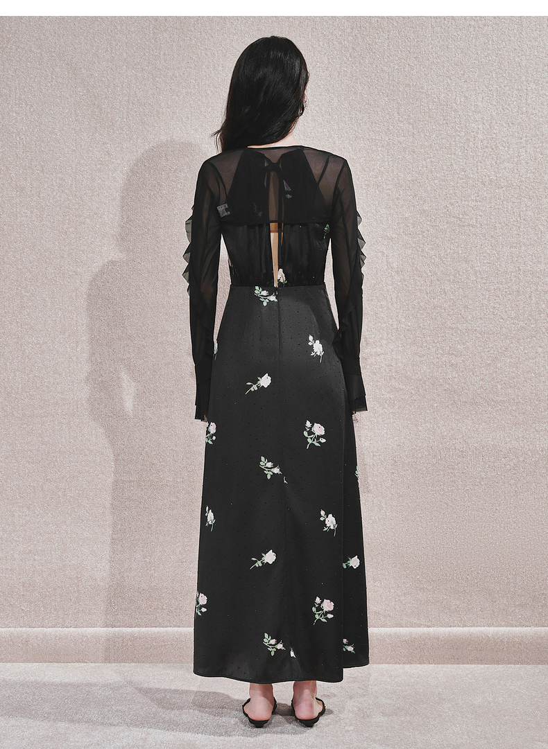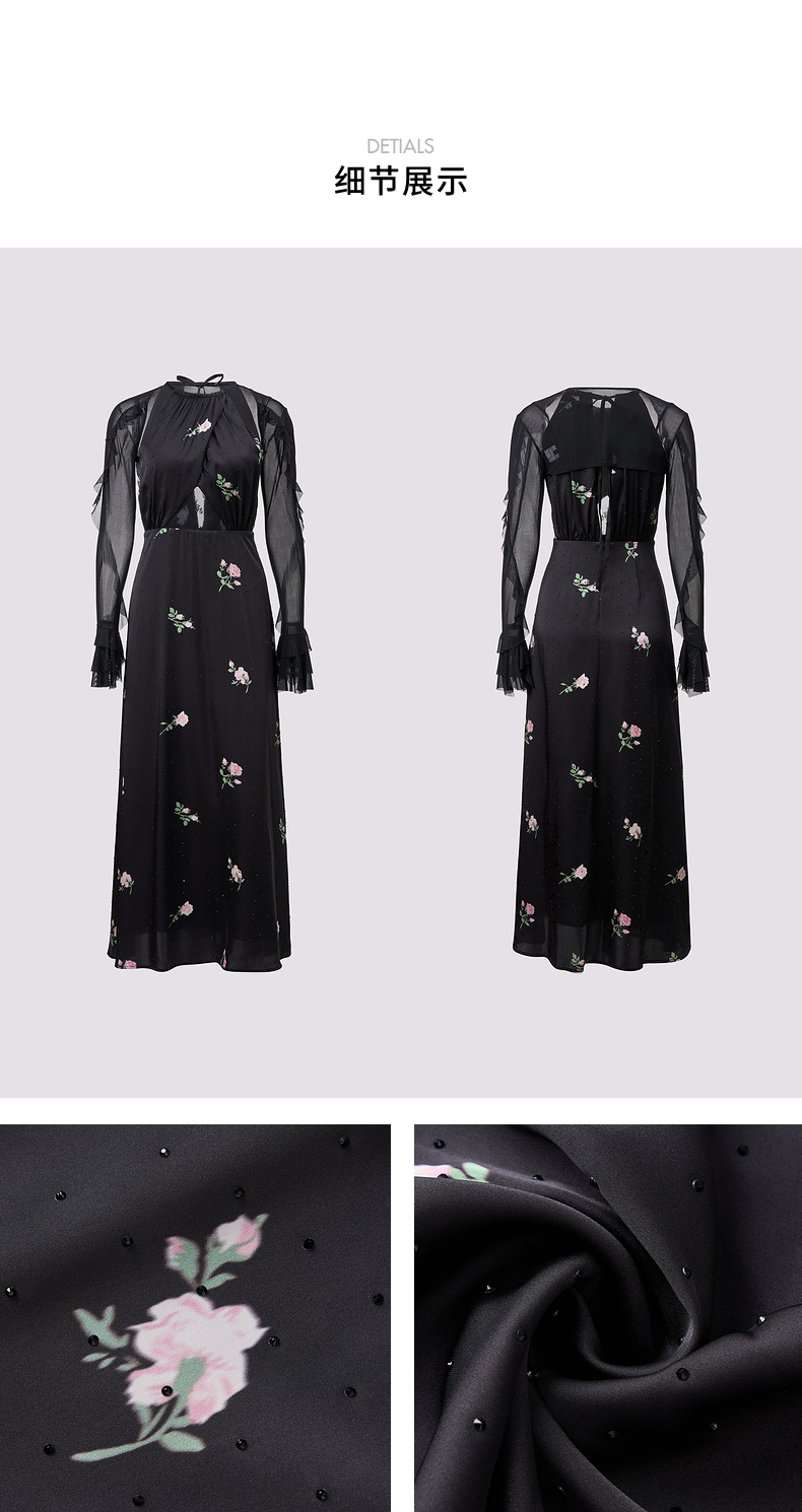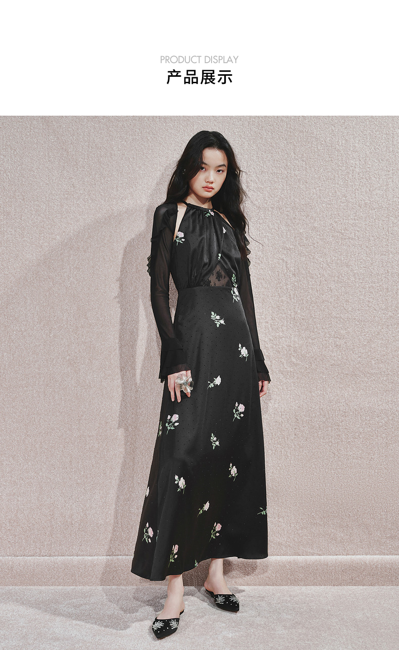 玛克门店发货:MAXRIENY华丽宫廷风玫瑰蕾丝连衣裙2024秋冬新款(货号:MC85DR560)