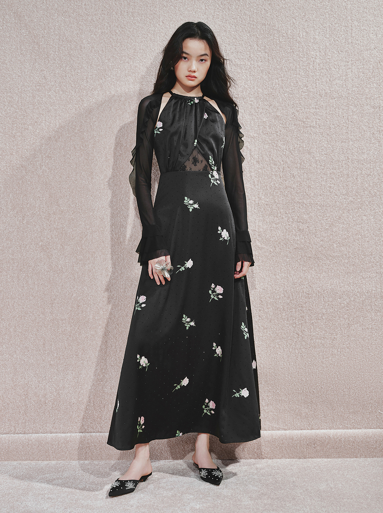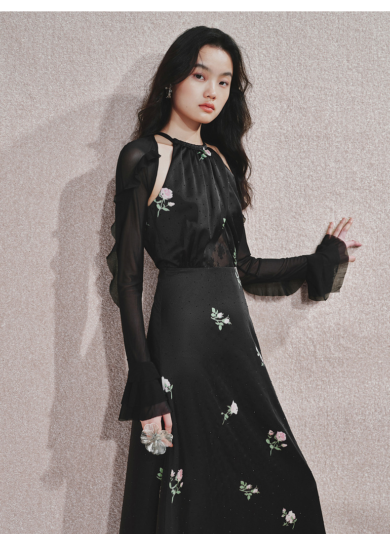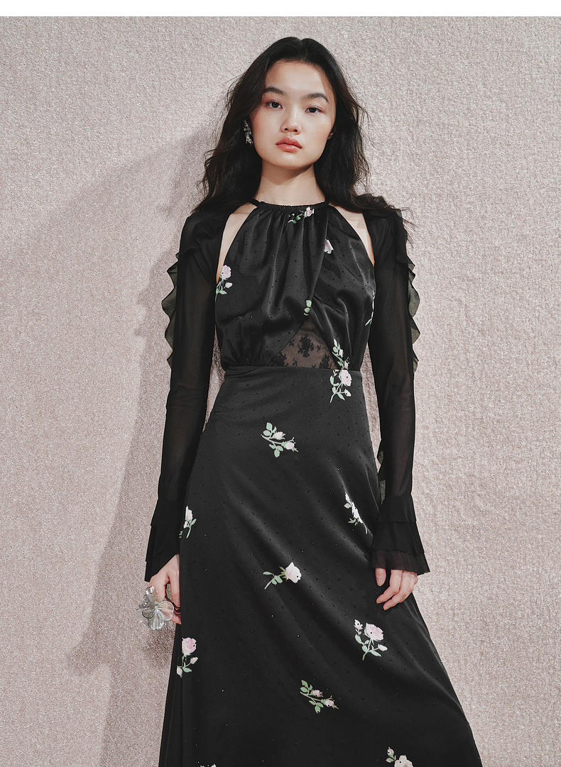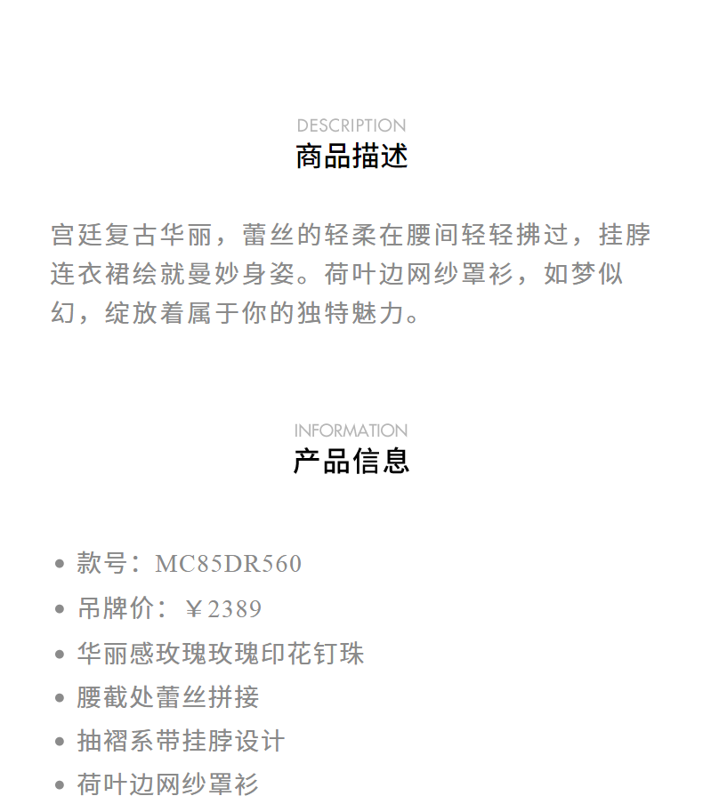 玛克门店发货:MAXRIENY华丽宫廷风玫瑰蕾丝连衣裙2024秋冬新款(货号:MC85DR560)