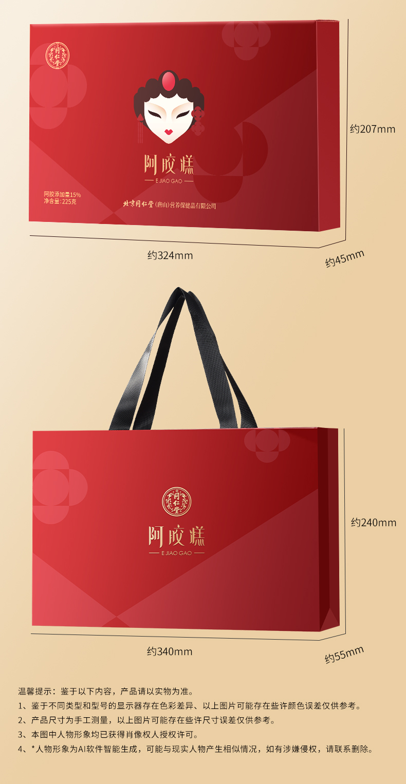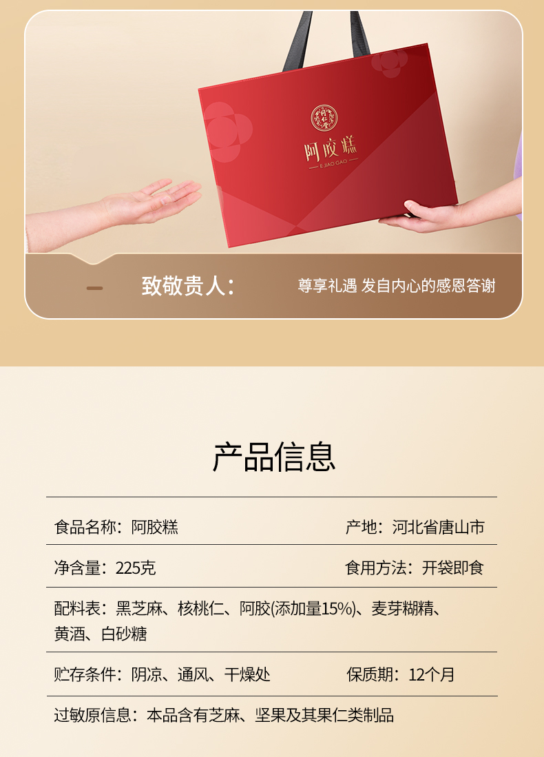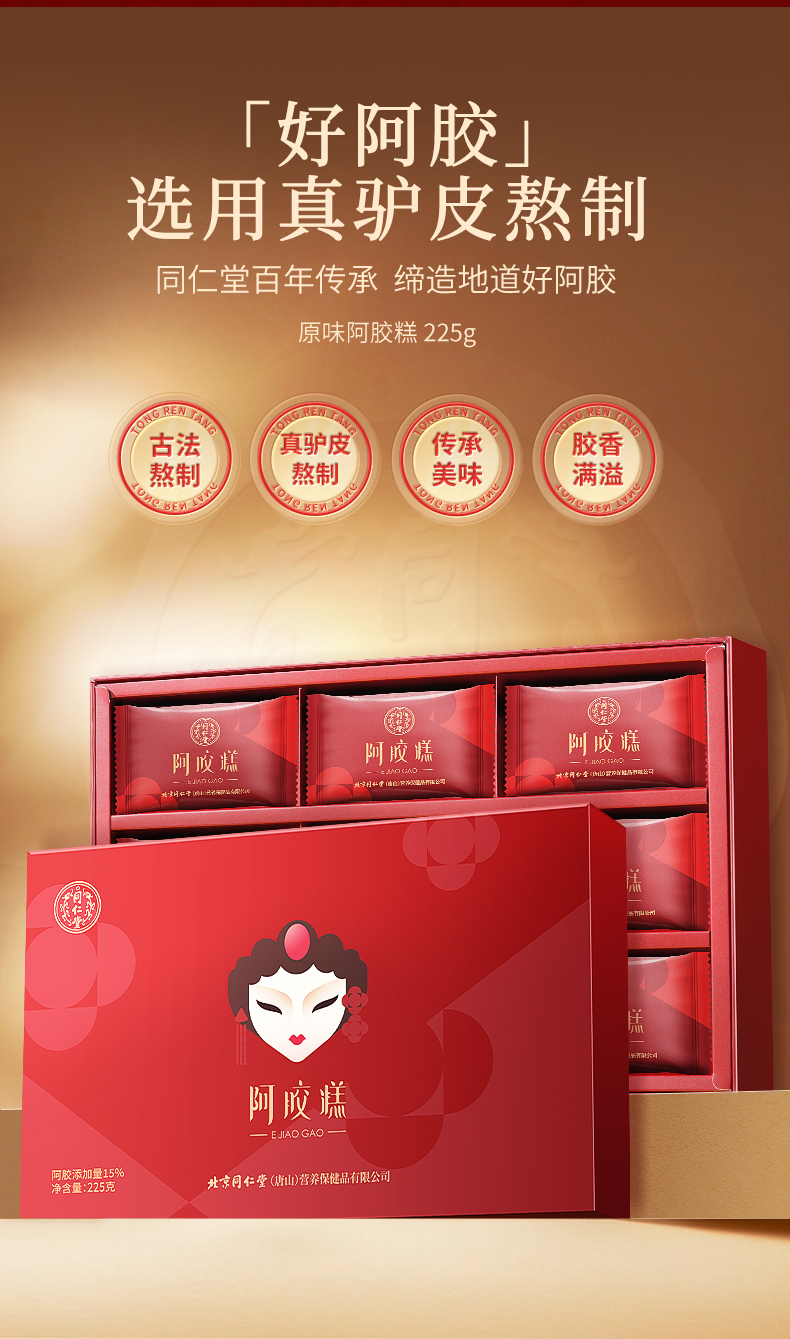 【正宗同仁堂品牌】北京同仁堂 阿胶糕-225克 送礼盒 东阿水熬制 即食 15%添加量 香醇弹嫩 SY