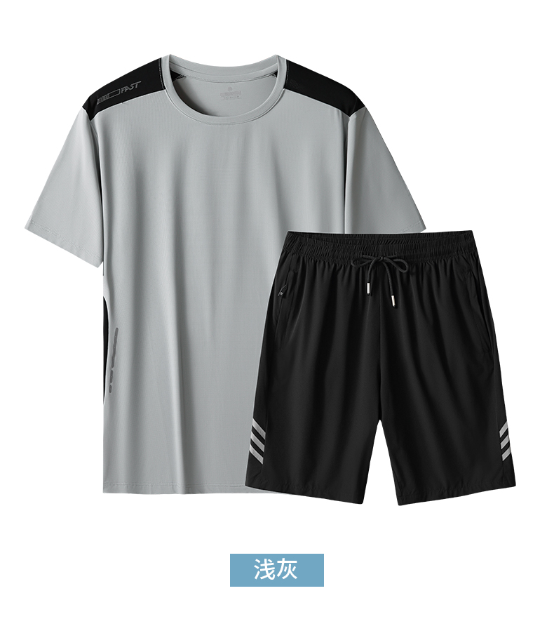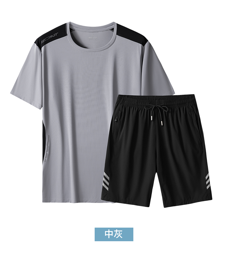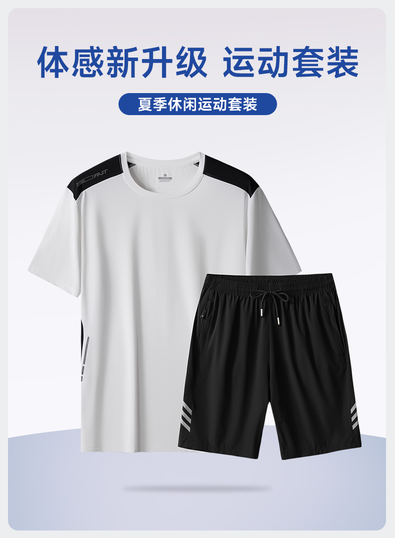 【Q】【冰丝速干】【新款DSF】大依优型大码男装夏季套装运动休闲加肥加大短袖短裤大号T恤套装夏装