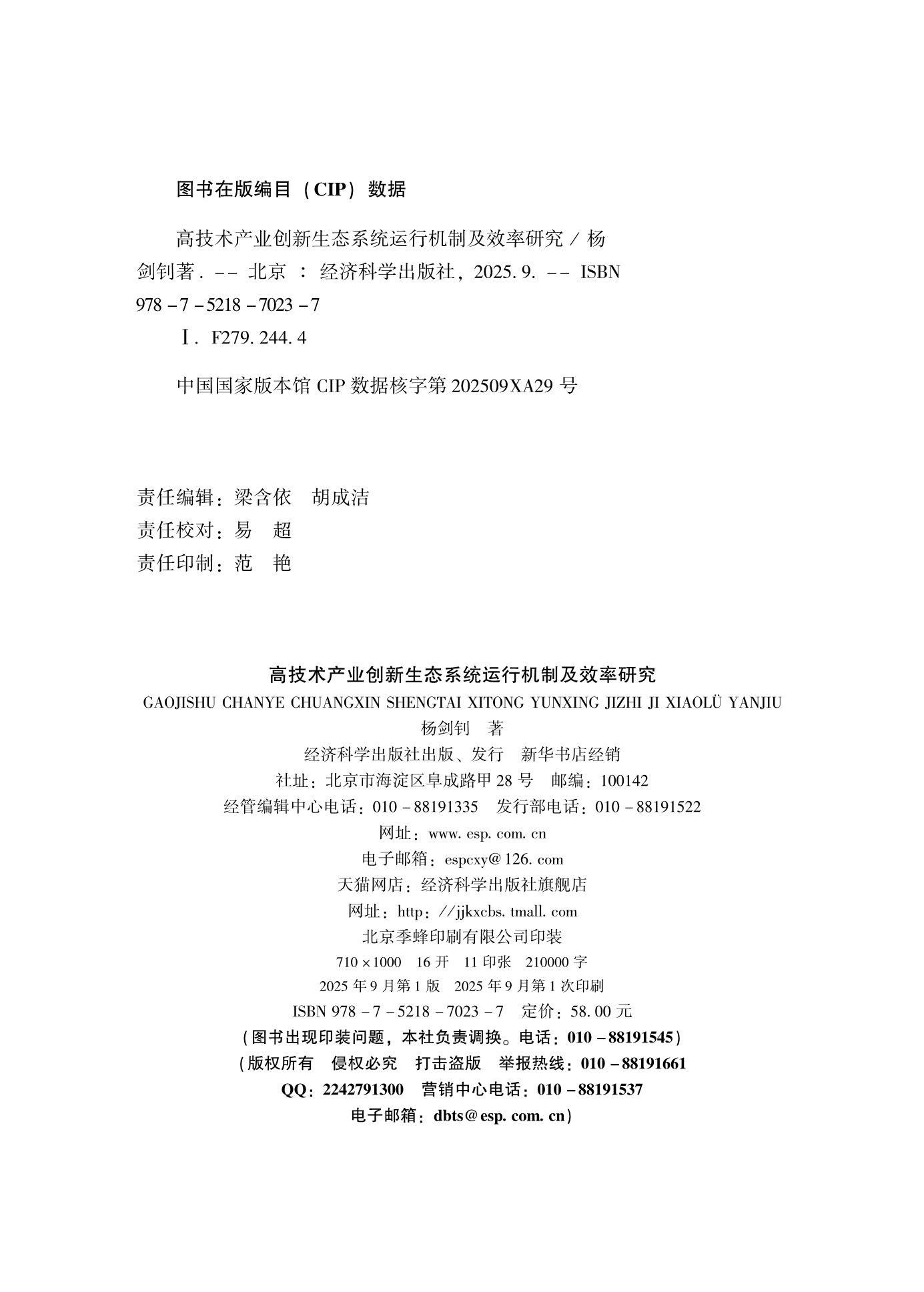 高技术产业创新生态系统运行机制及效率研究