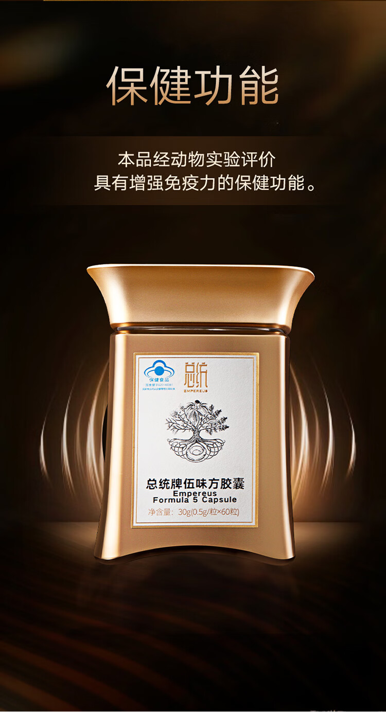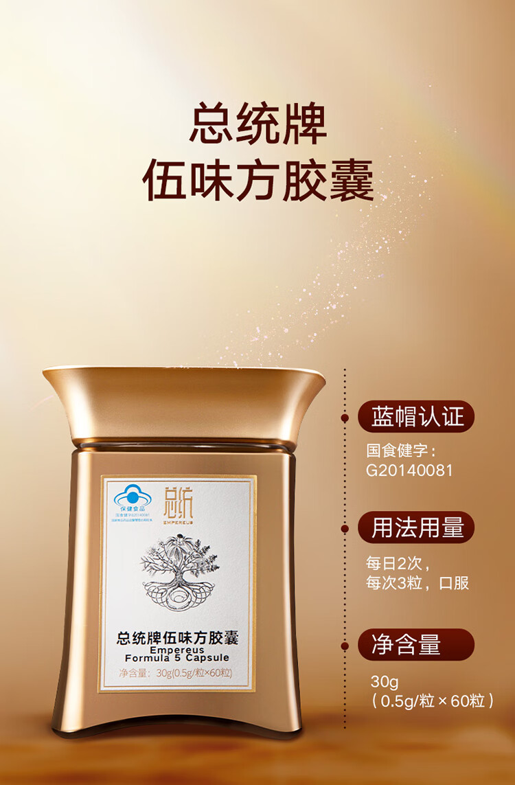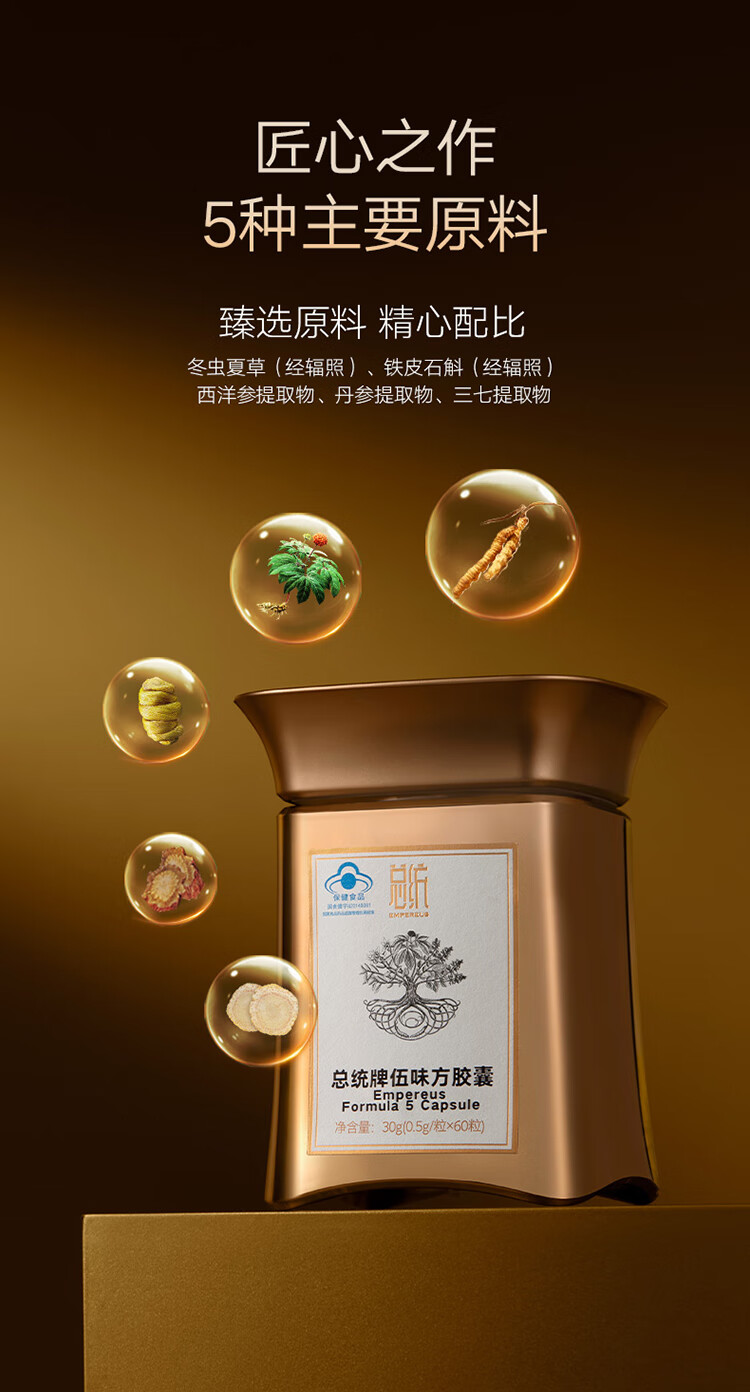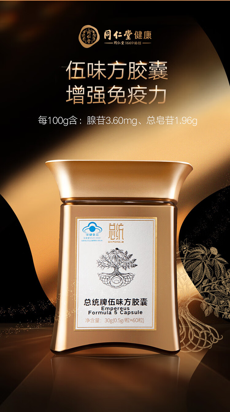 【正宗同仁堂品牌】北京同仁堂 总统牌 伍味方胶囊30g(500mg*60粒) 伍味方含冬虫夏草铁皮石斛SY