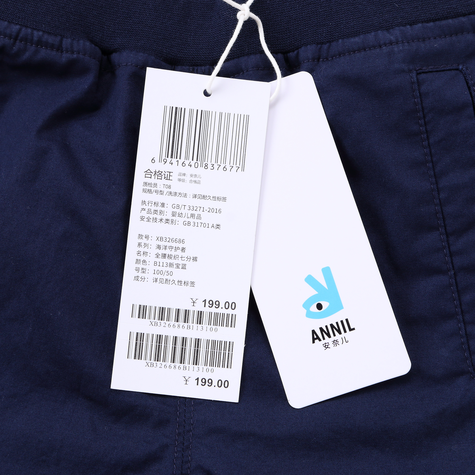 【实体店同款】男童装裤子夏季新束脚轻薄透气七分运动裤安奈儿童装XB326686