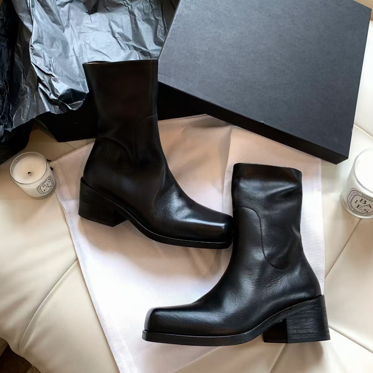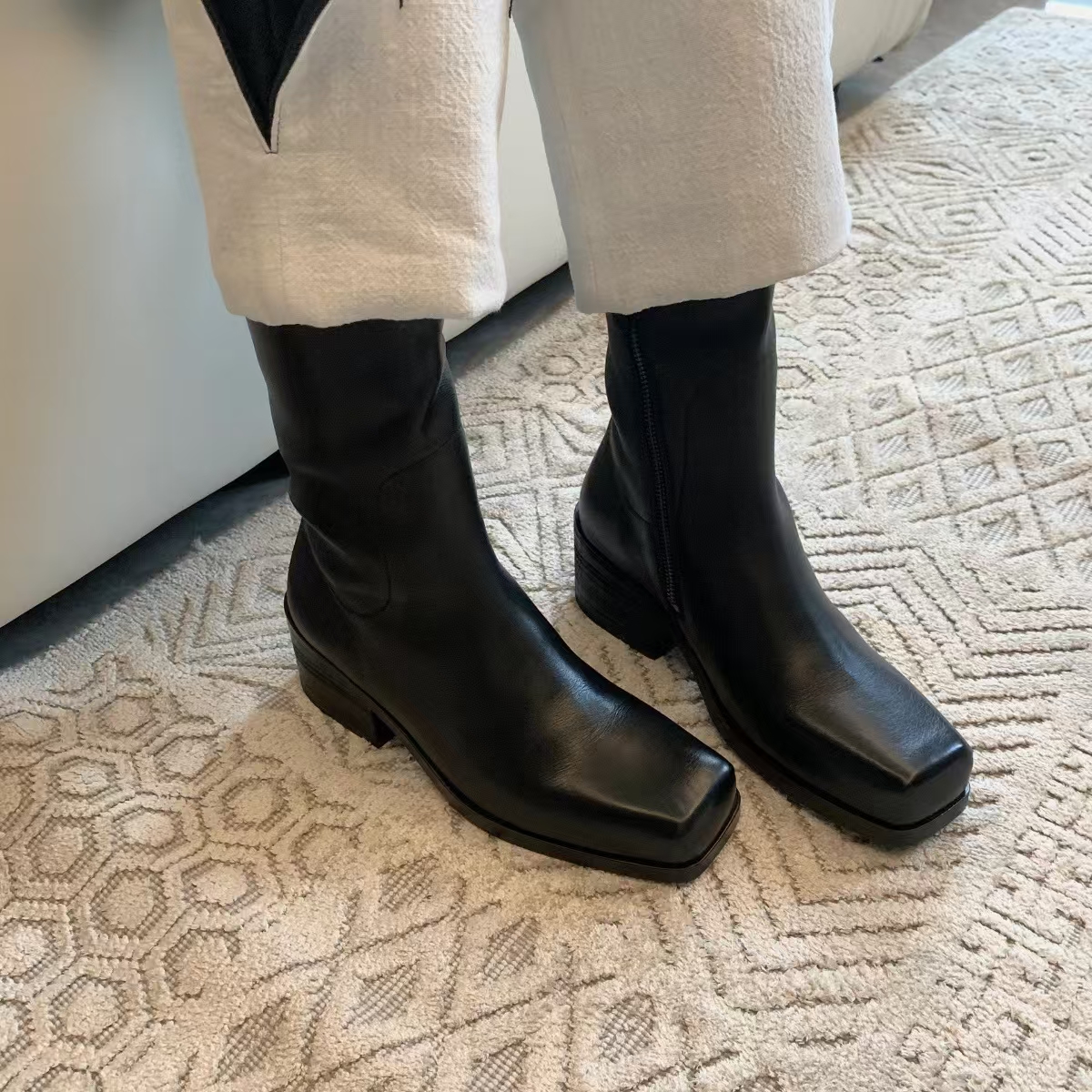 分镜头集成店25春新品真皮时尚百搭久穿不累厚底方头中筒靴