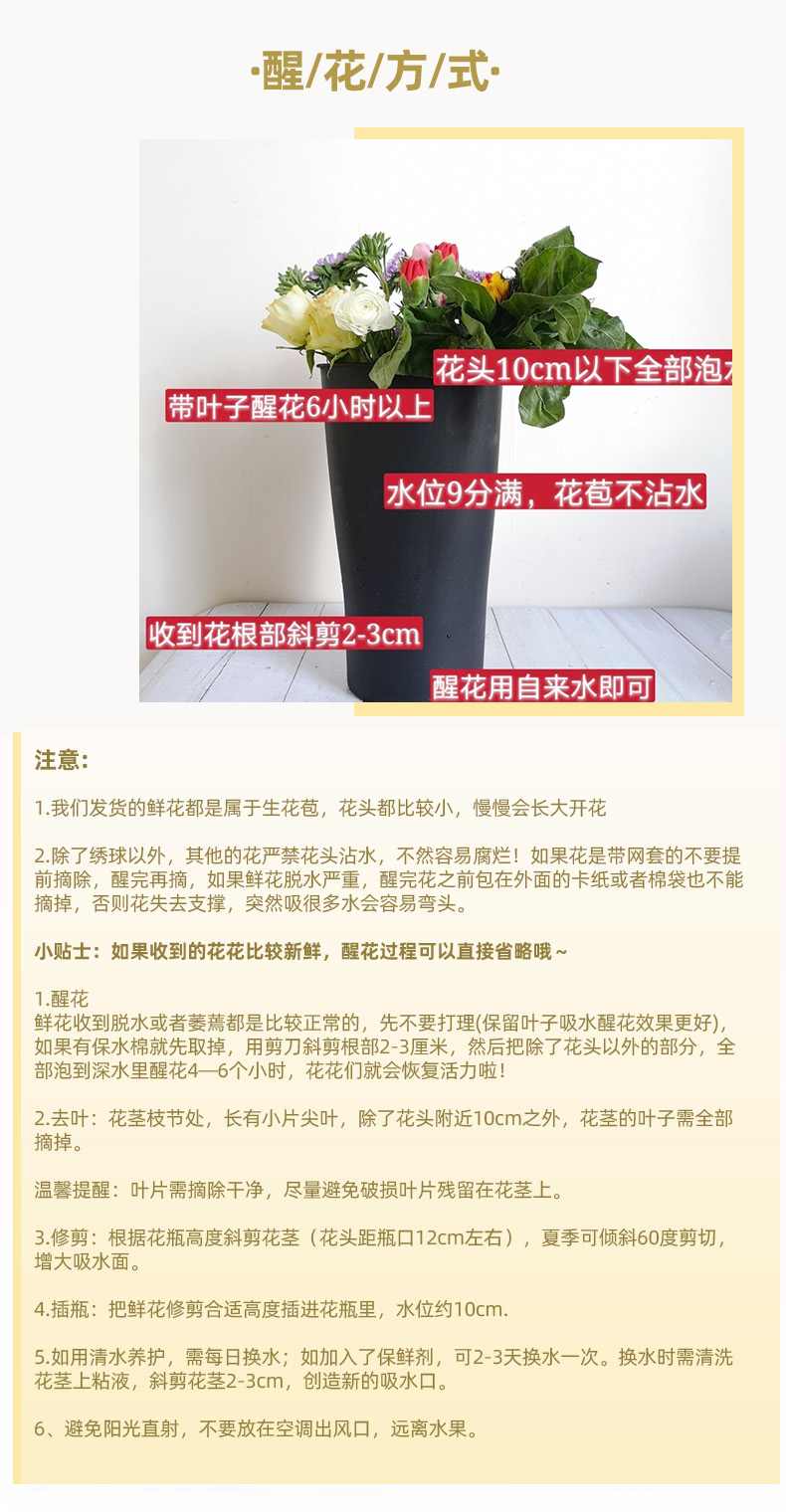 ⑥注意:鲜花产品比较特殊,请考虑好再下单。下单后不可改地址,每天下午14点提单发货,之后不可退改订单‼