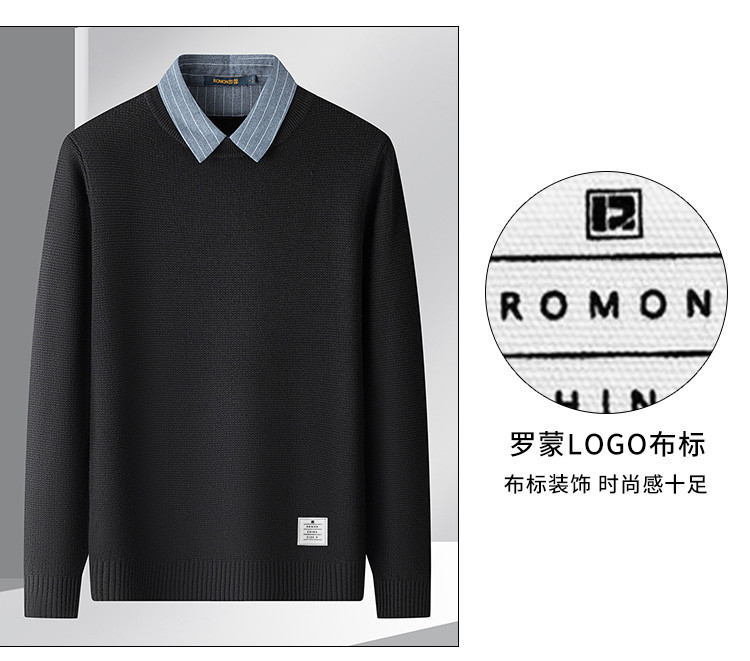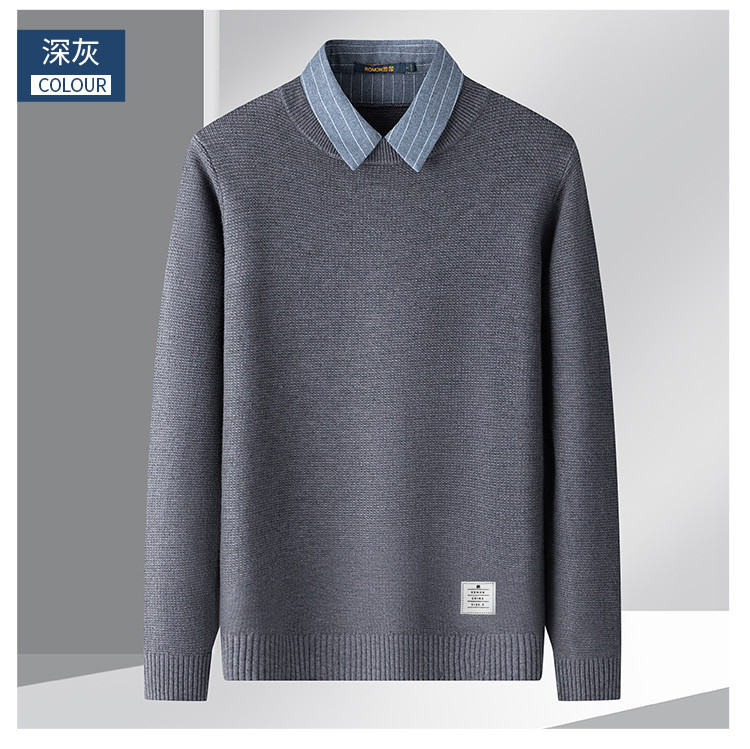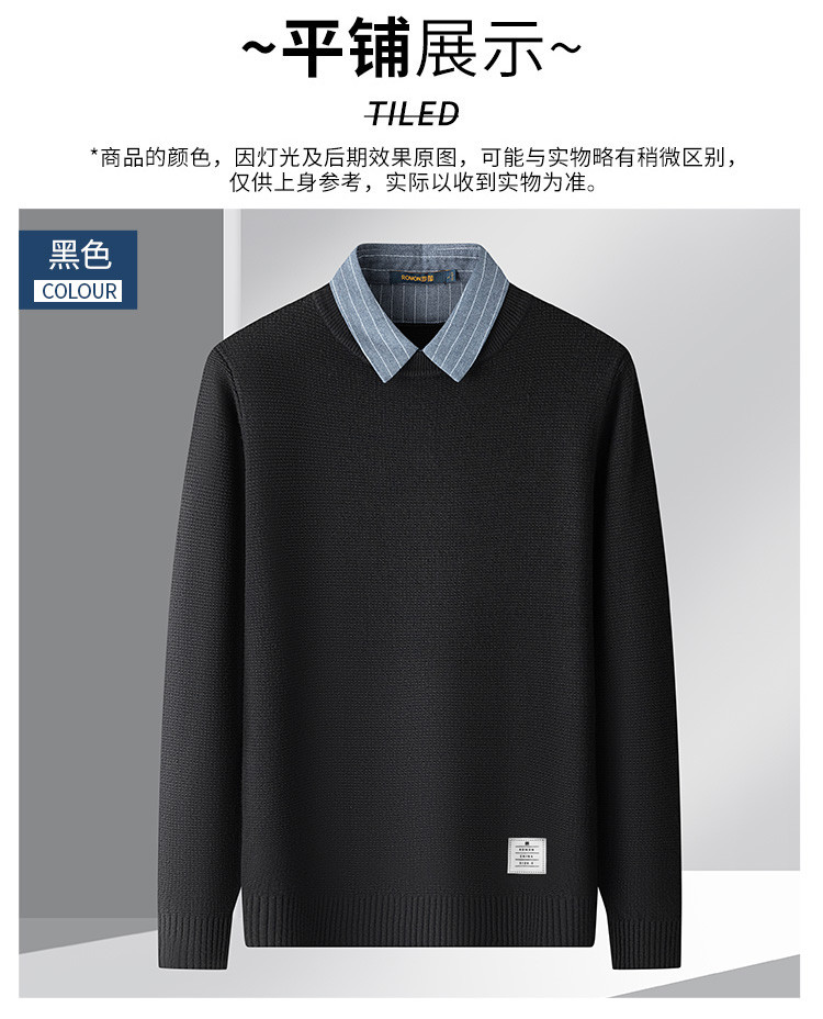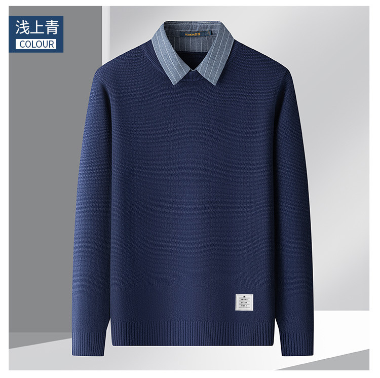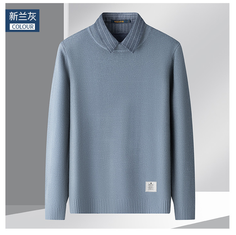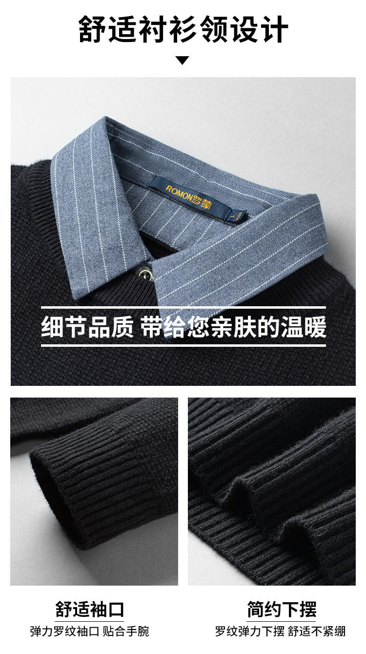 27DKXM7932A【华夫格】罗蒙假两件针织衫男春秋衬衫男长袖毛衣男士针织衫男式毛衣