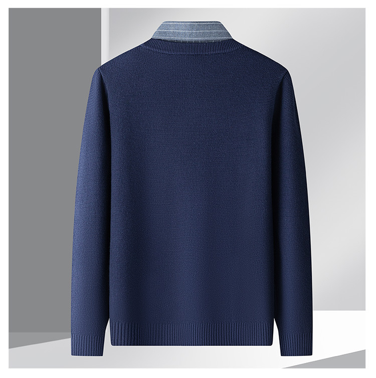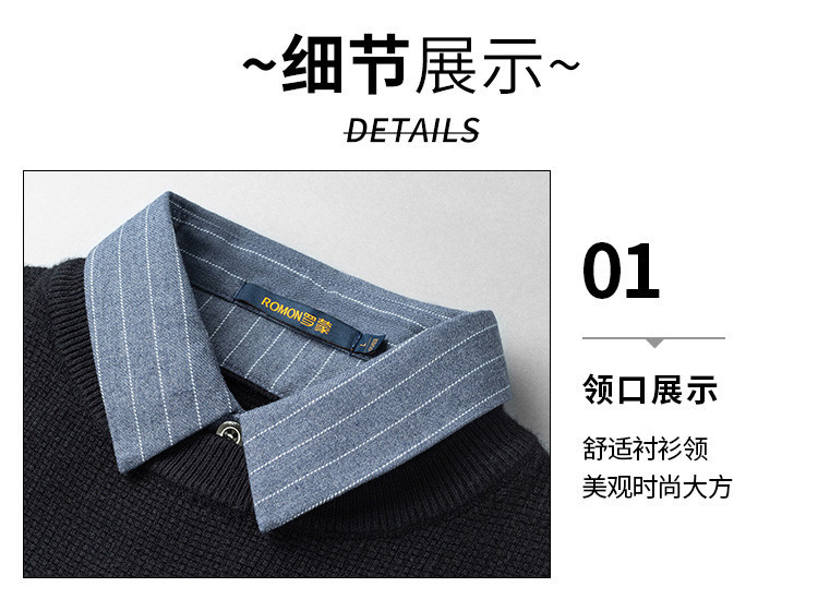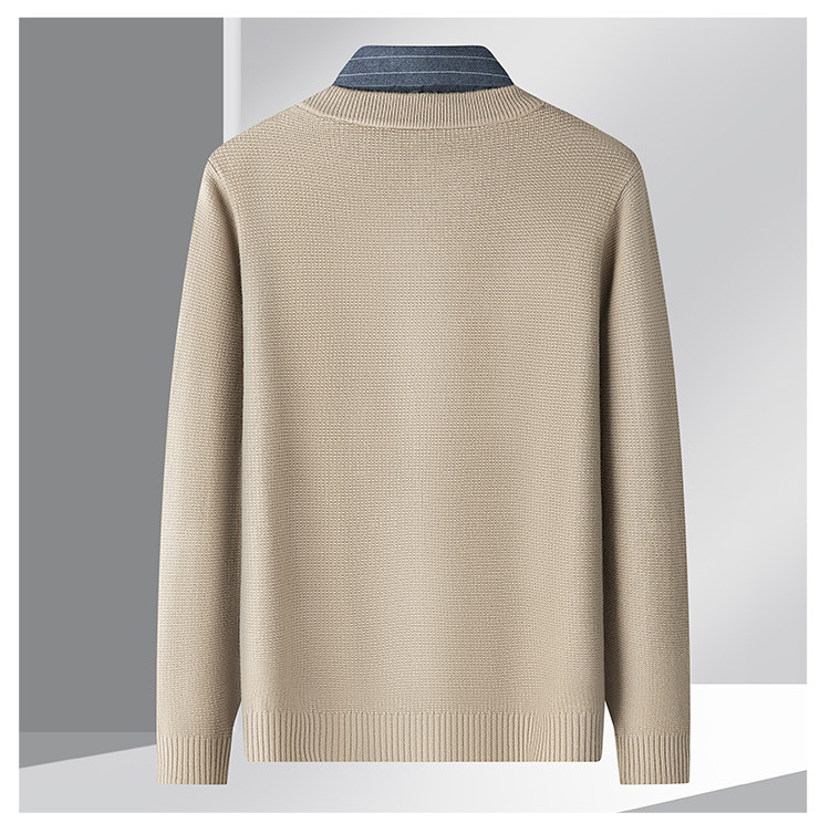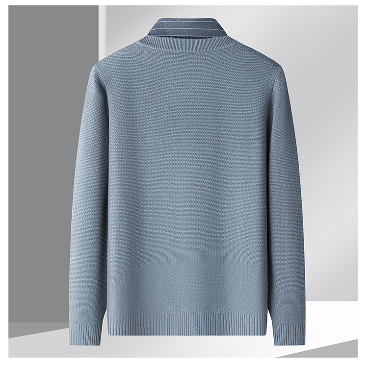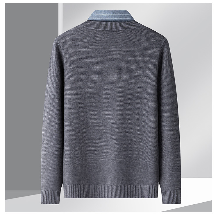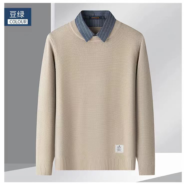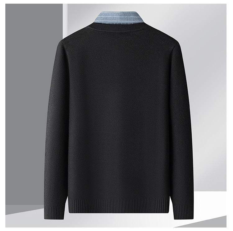 27DKXM7932A【华夫格】罗蒙假两件针织衫男春秋衬衫男长袖毛衣男士针织衫男式毛衣