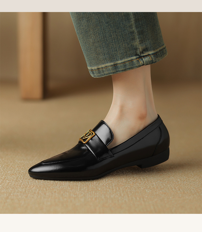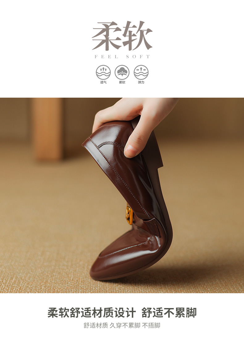 春季新款,真牛皮亮面尖头小皮鞋NX-8080