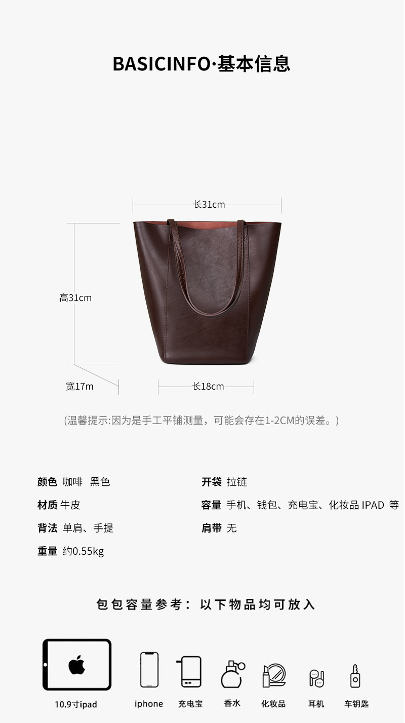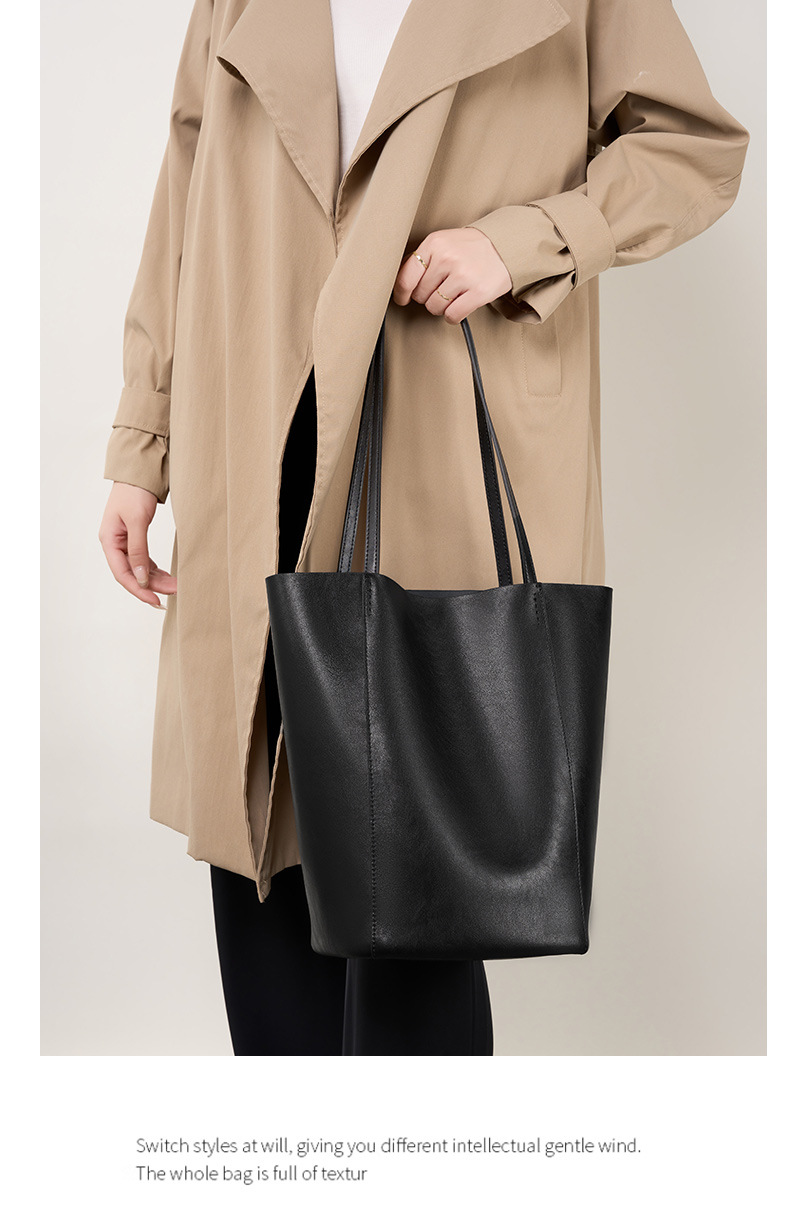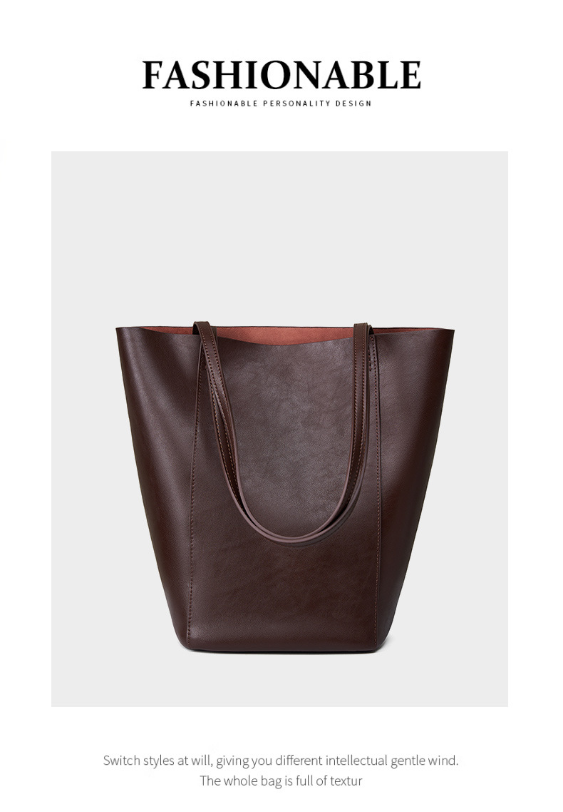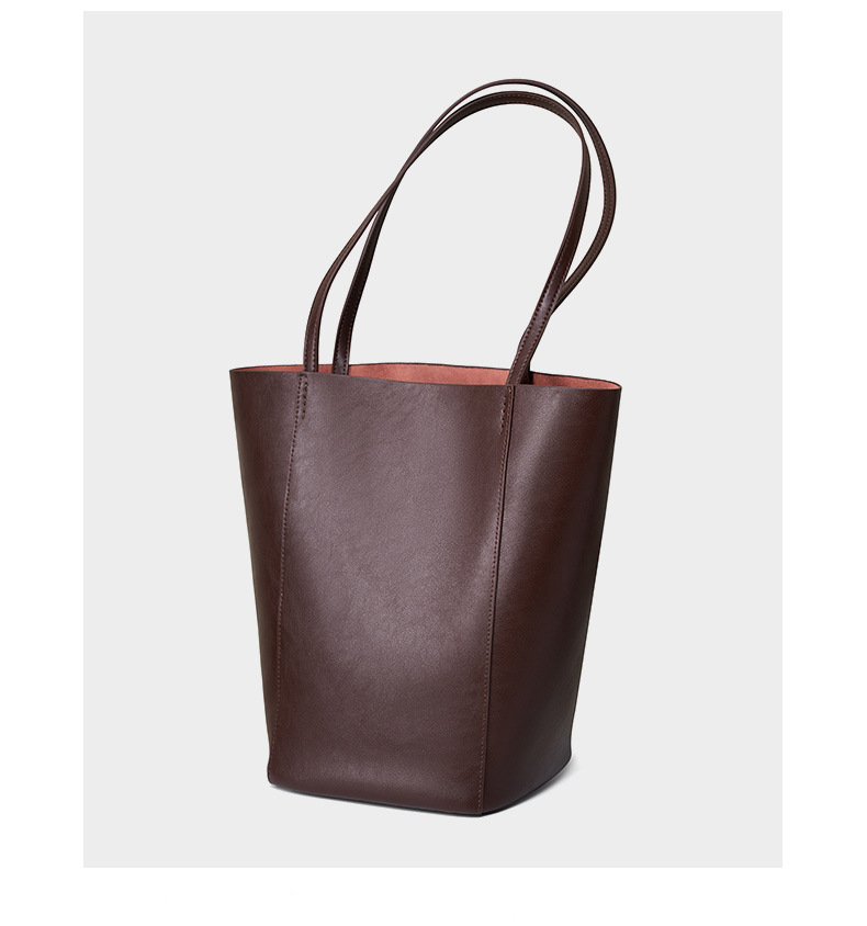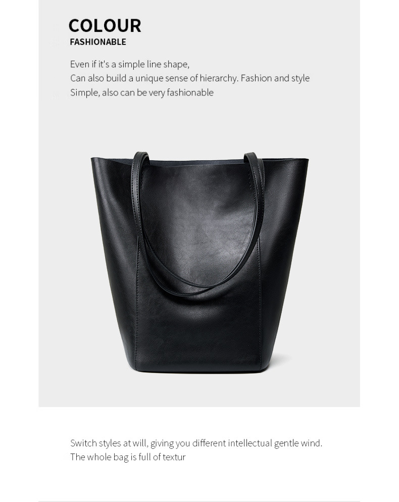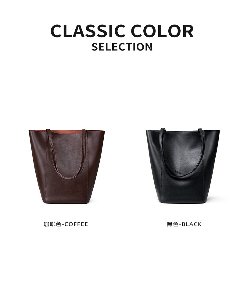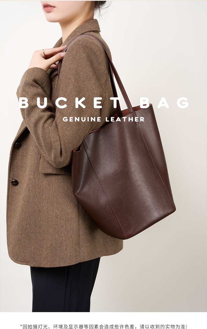 小众牛皮通勤托特包,女真皮大容量水桶包新款高级感单肩手提包QSL-2565