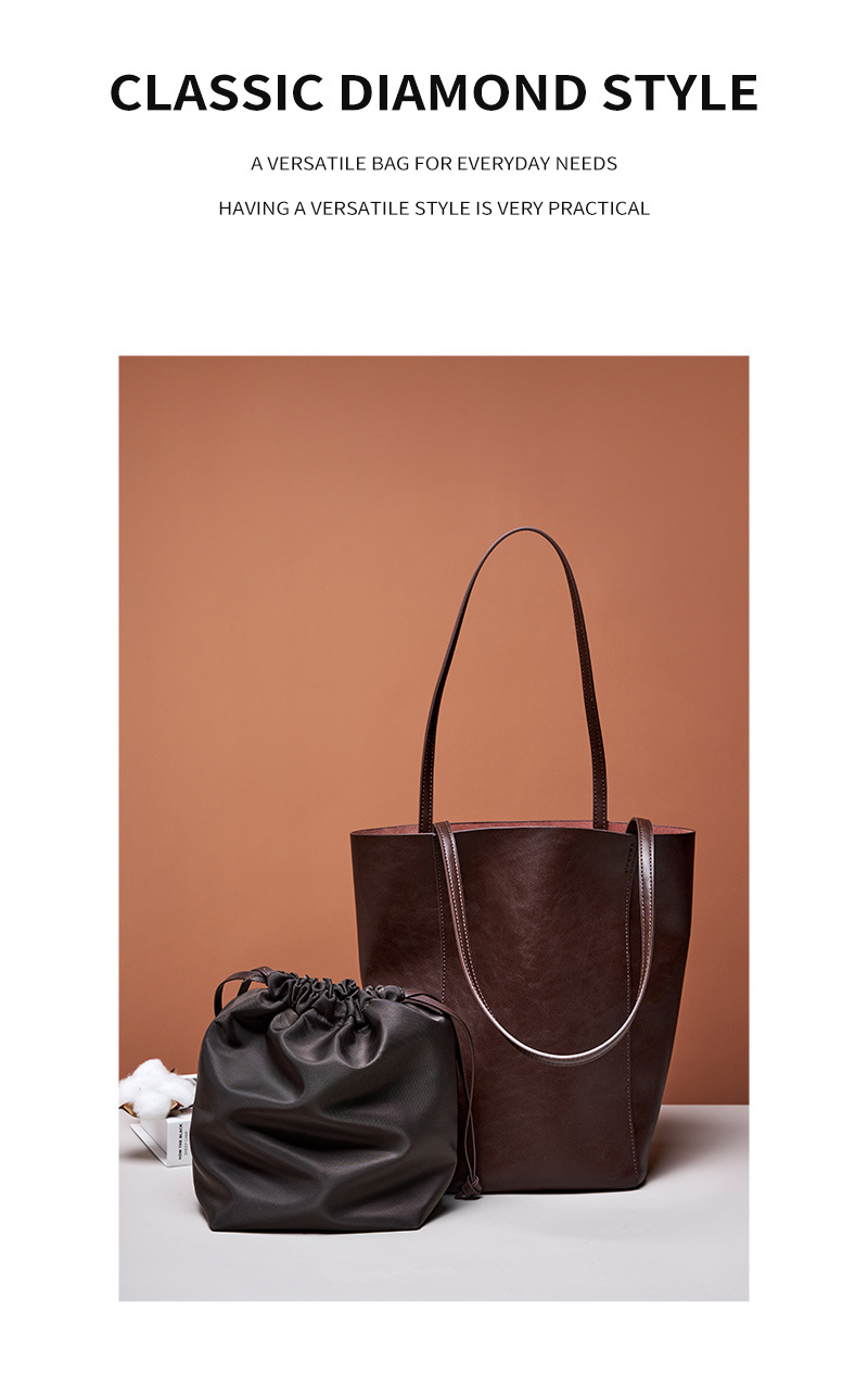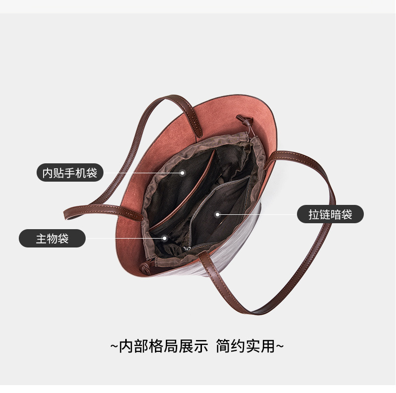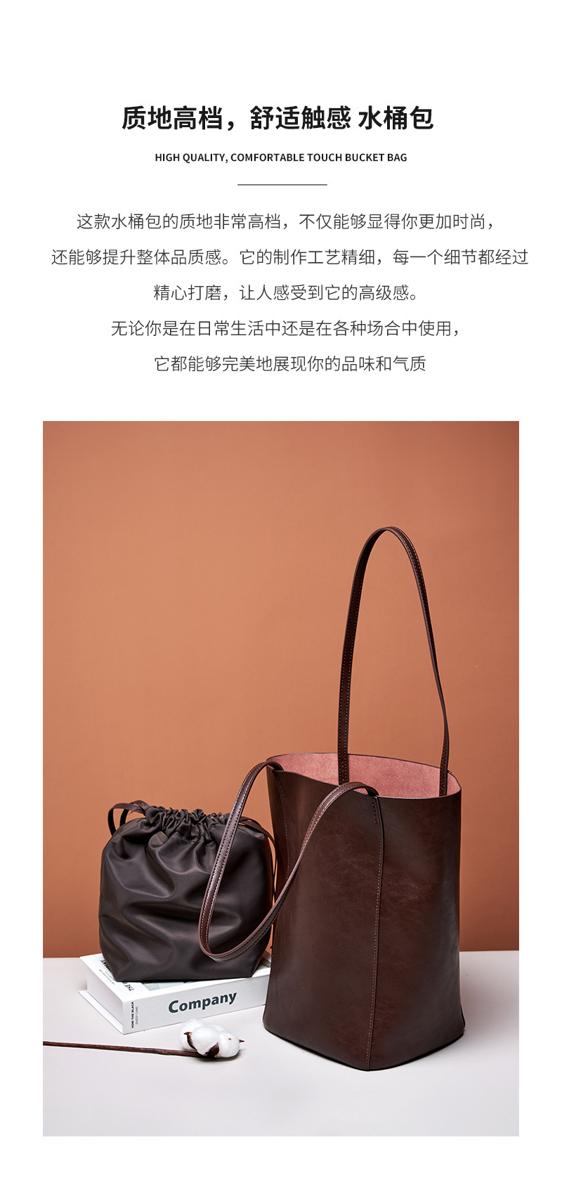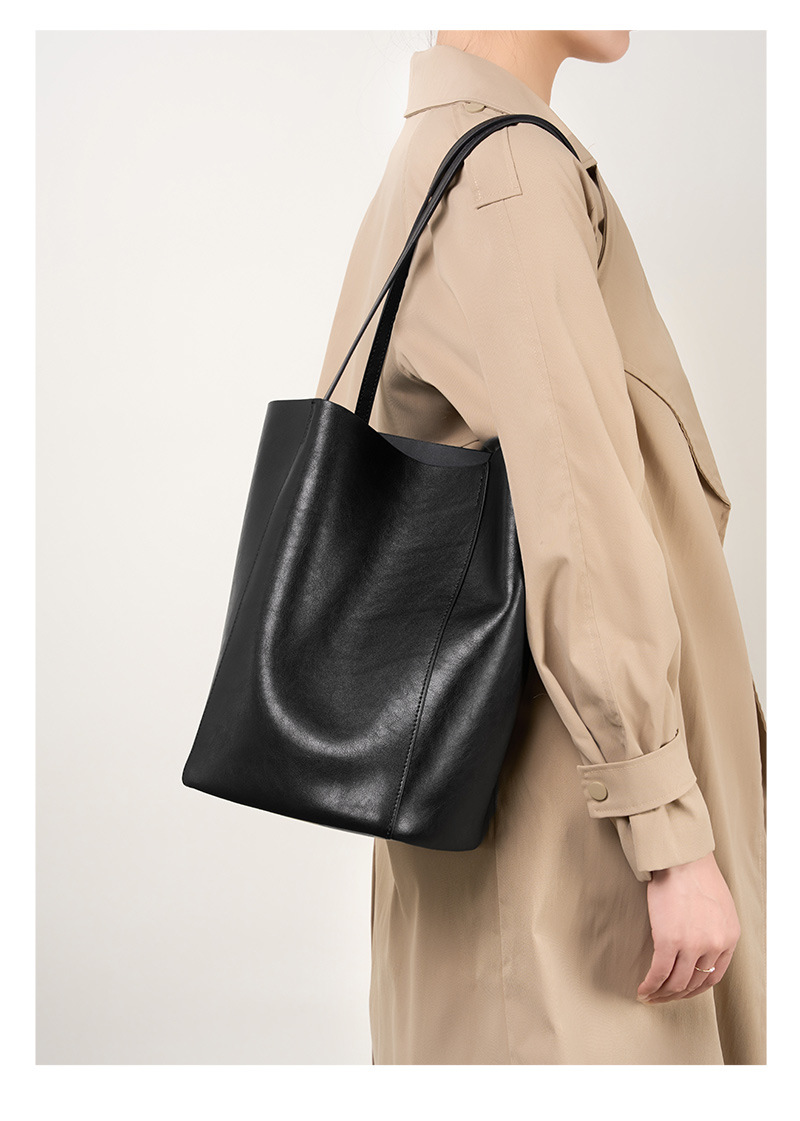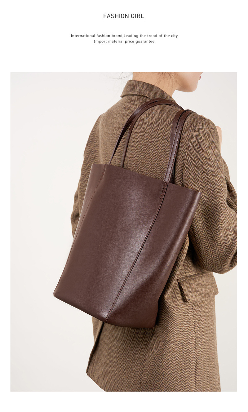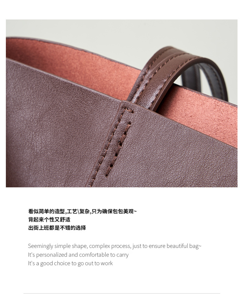 小众牛皮通勤托特包,女真皮大容量水桶包新款高级感单肩手提包QSL-2565