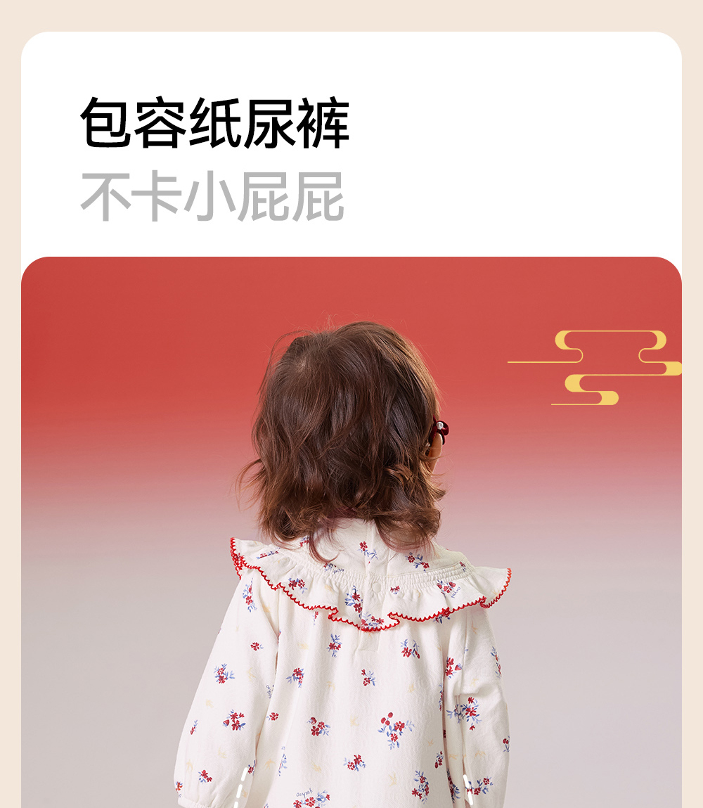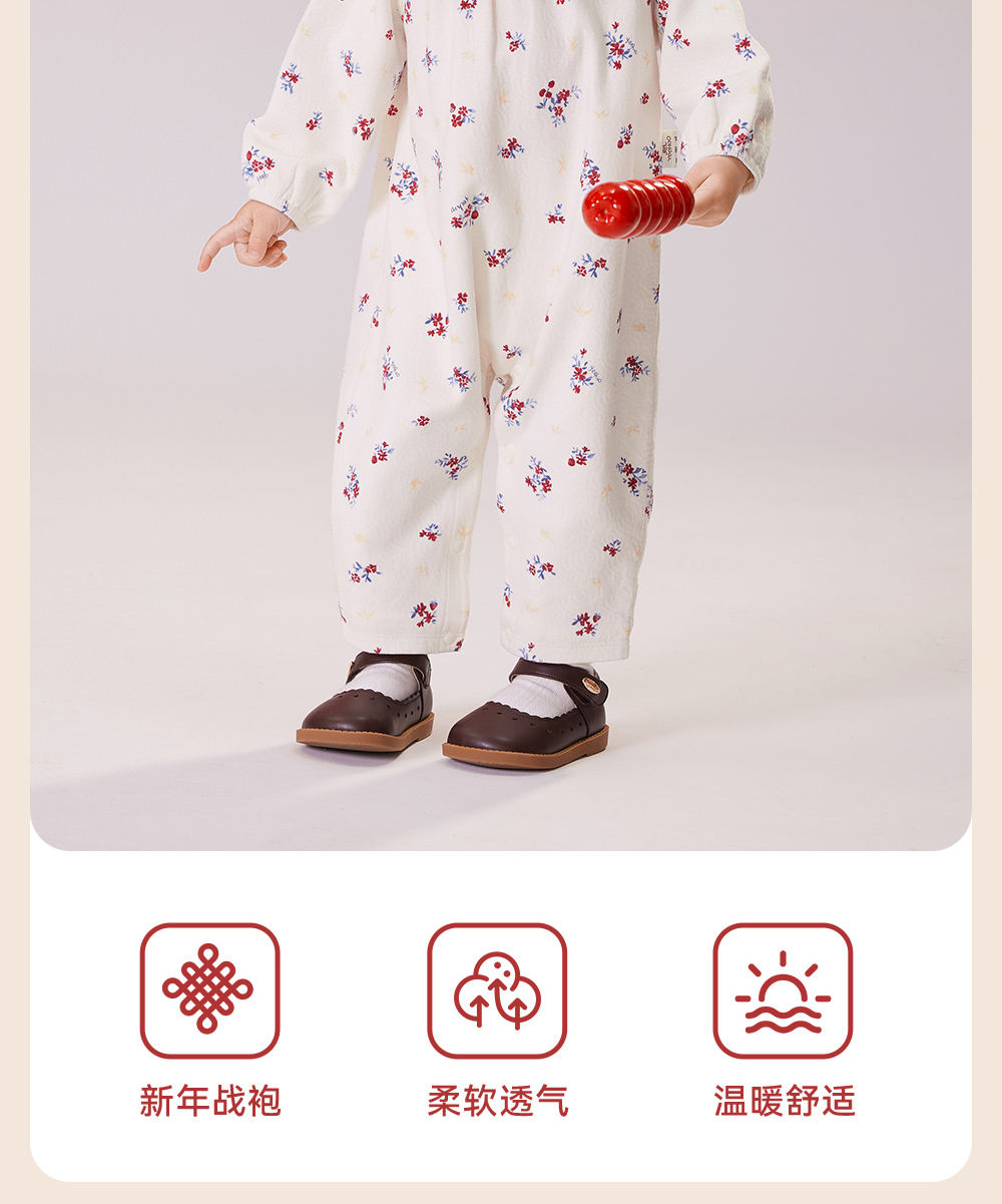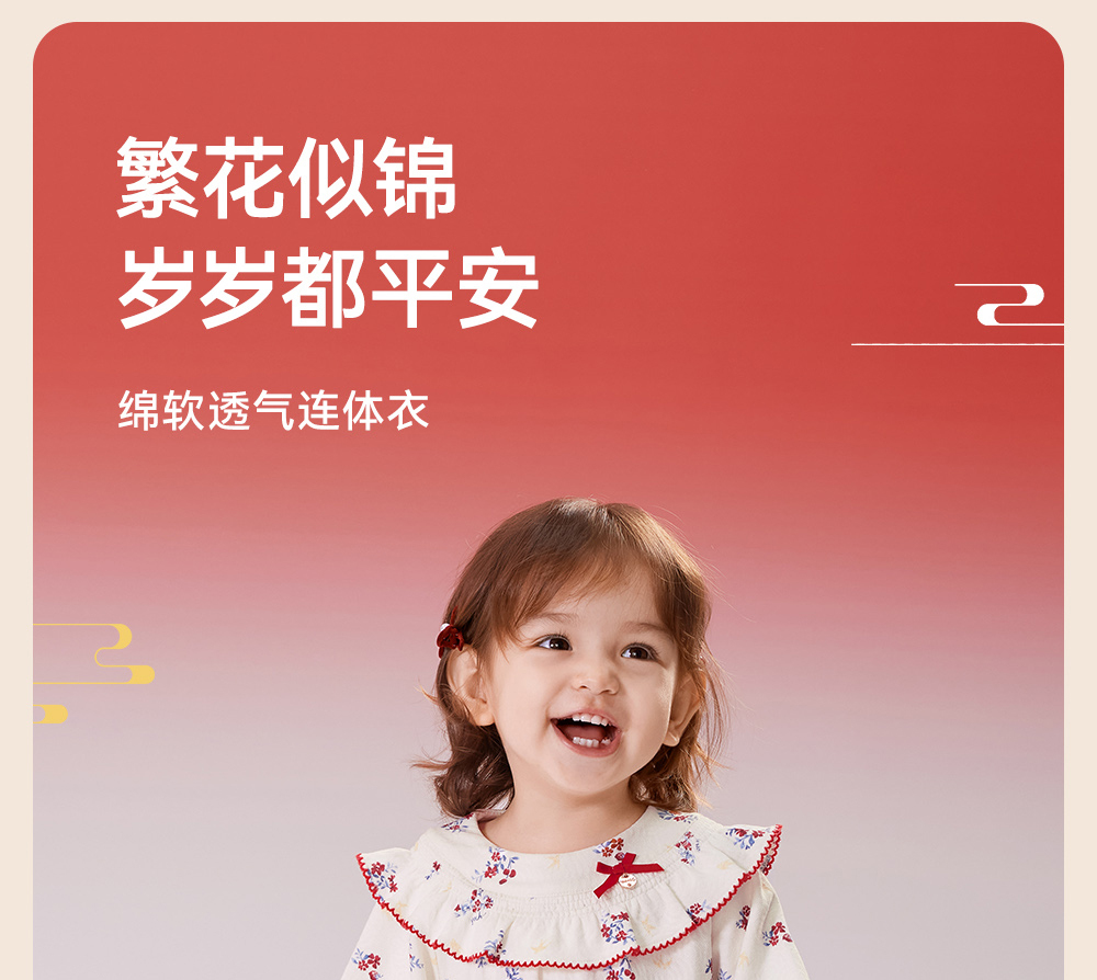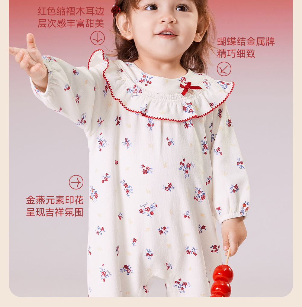 【商场同款】英氏女童衣服纯棉长袖新年喜庆连体衣2025新款拜年服