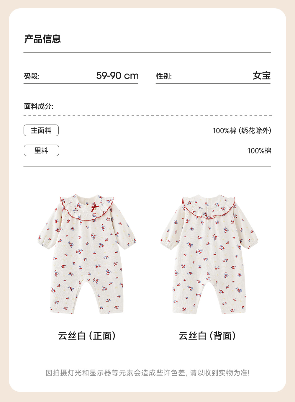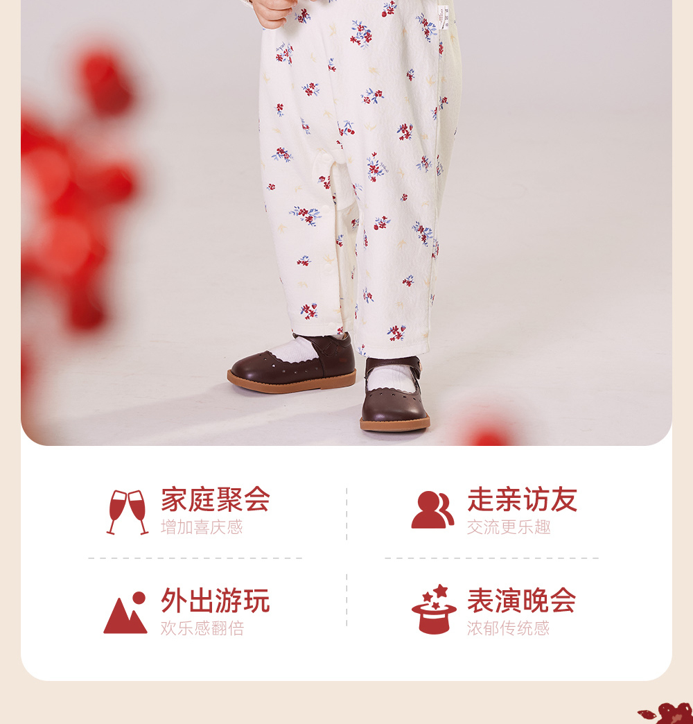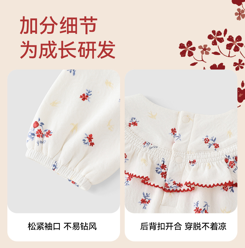 【商场同款】英氏女童衣服纯棉长袖新年喜庆连体衣2025新款拜年服