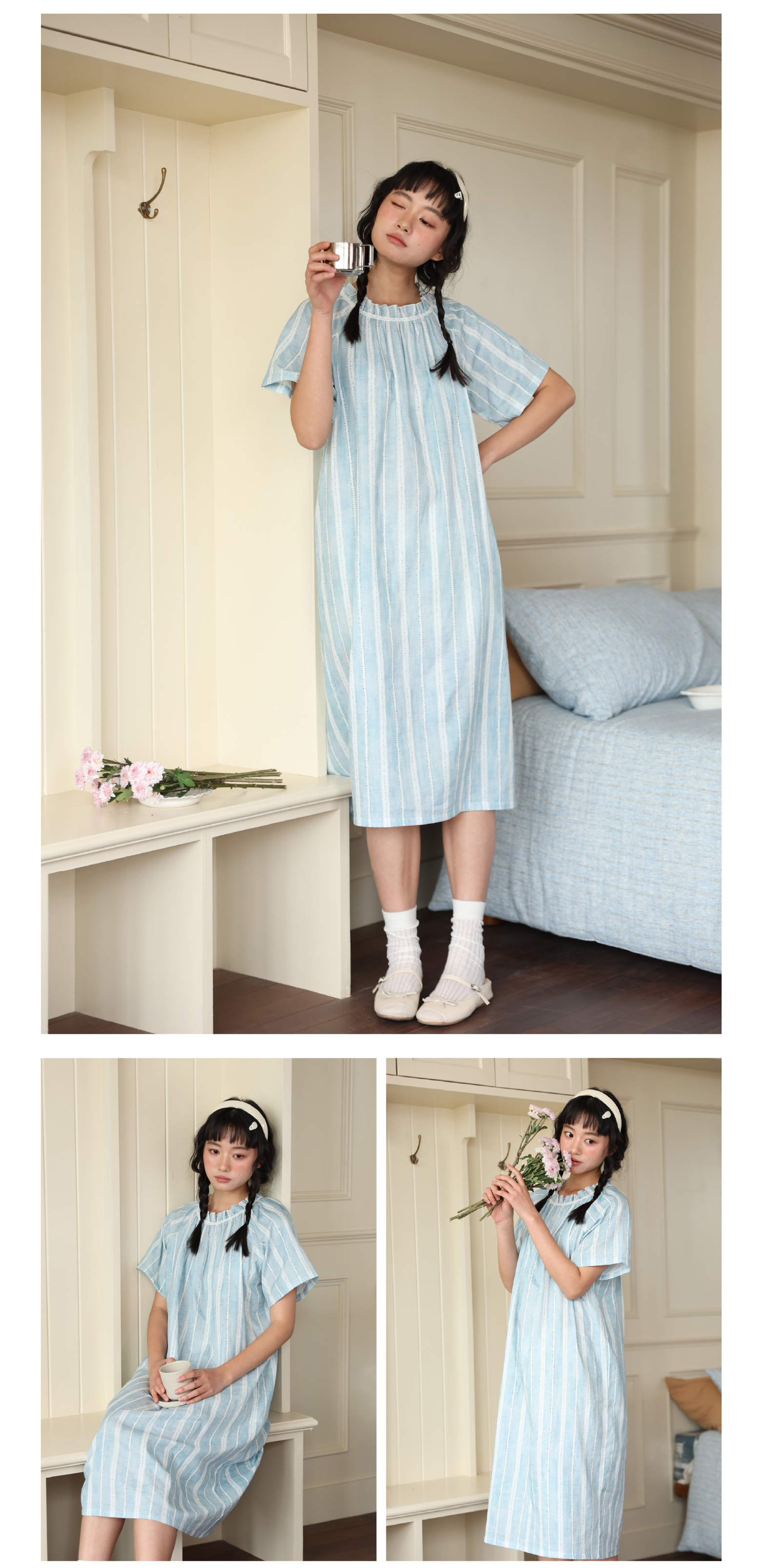 (小眠专属)KEMU棉纱花苞睡裙 | 花苞领设计,褶皱立体蓬松,修饰脖颈线条,慵懒不失精致