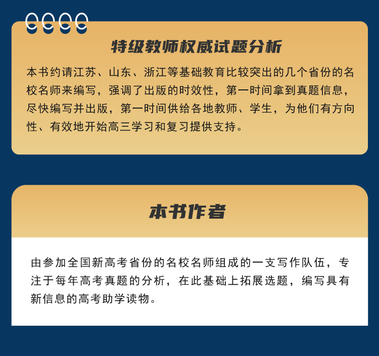 由参加全国新高考省份的名校名师组成的一支写作队伍,专注于每年高考真题的分析,在此基础上拓展选题,编写具有新信息的高考助学读物。