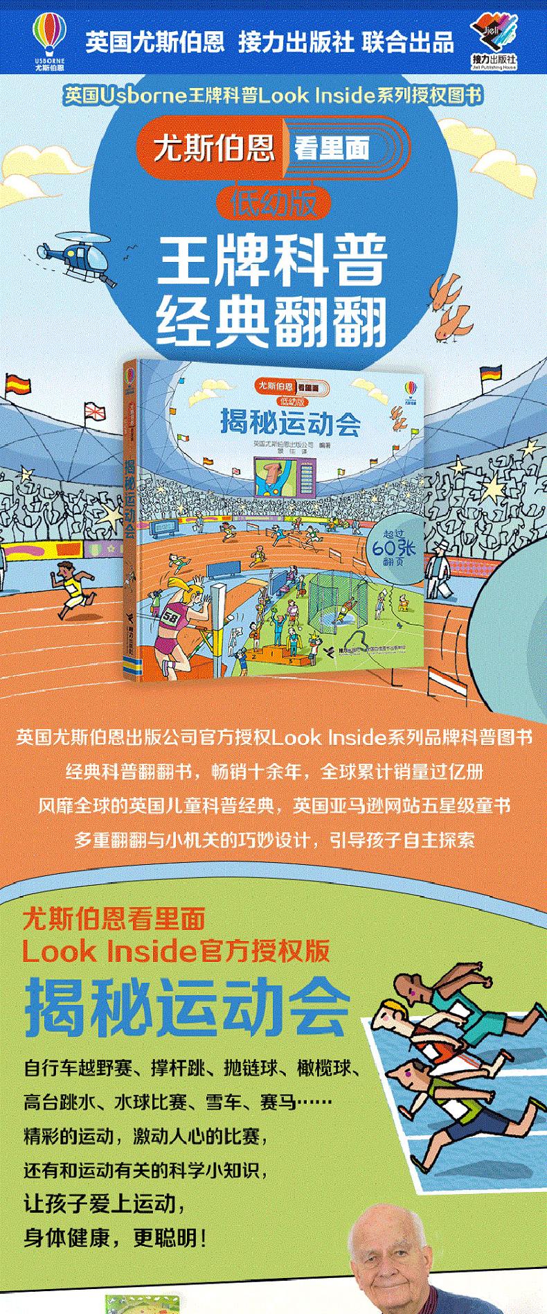 “尤斯伯恩看里面”是英国童书diyi品牌尤斯伯恩出版公司出品的典科普翻翻书,自2005年开始,已陆续出版50余种,曾荣获英国地理学会银奖,入围英国皇家学会青少年图书奖,获全球销量zuida生活科技杂志《PopularScience》quanwei*荐,被翻译成26种语言,在29个国家出版,全球销量超过一亿册。