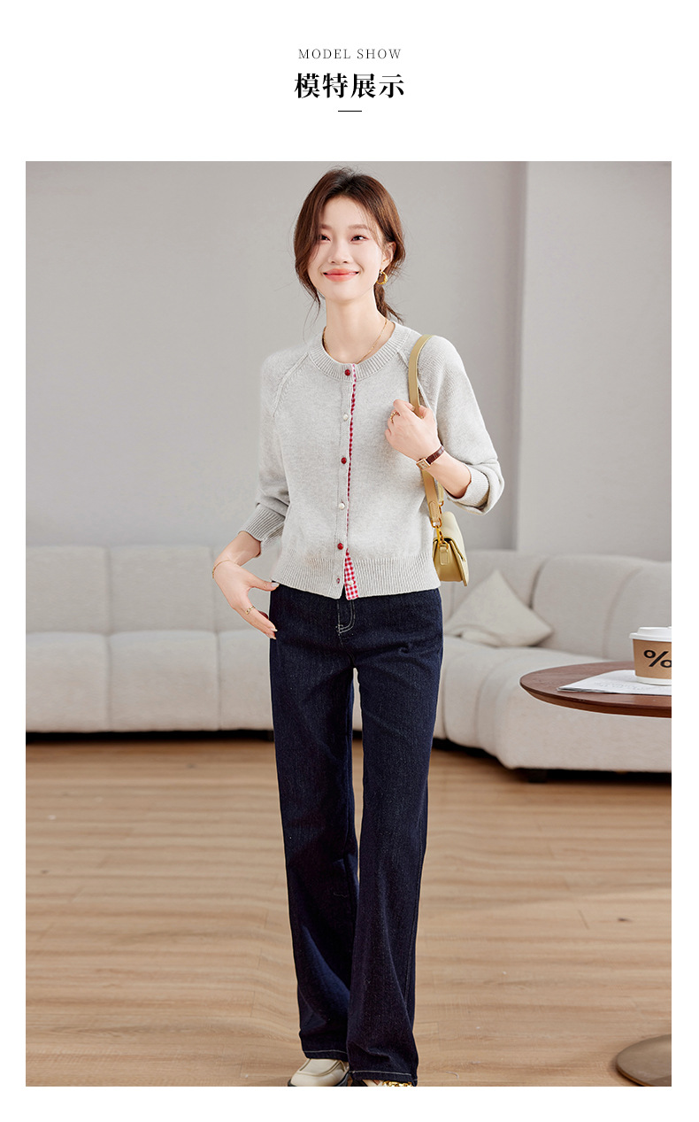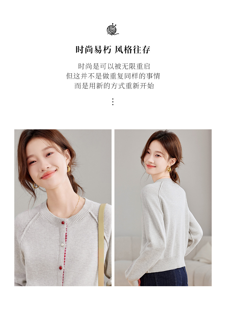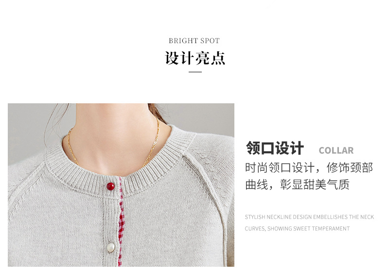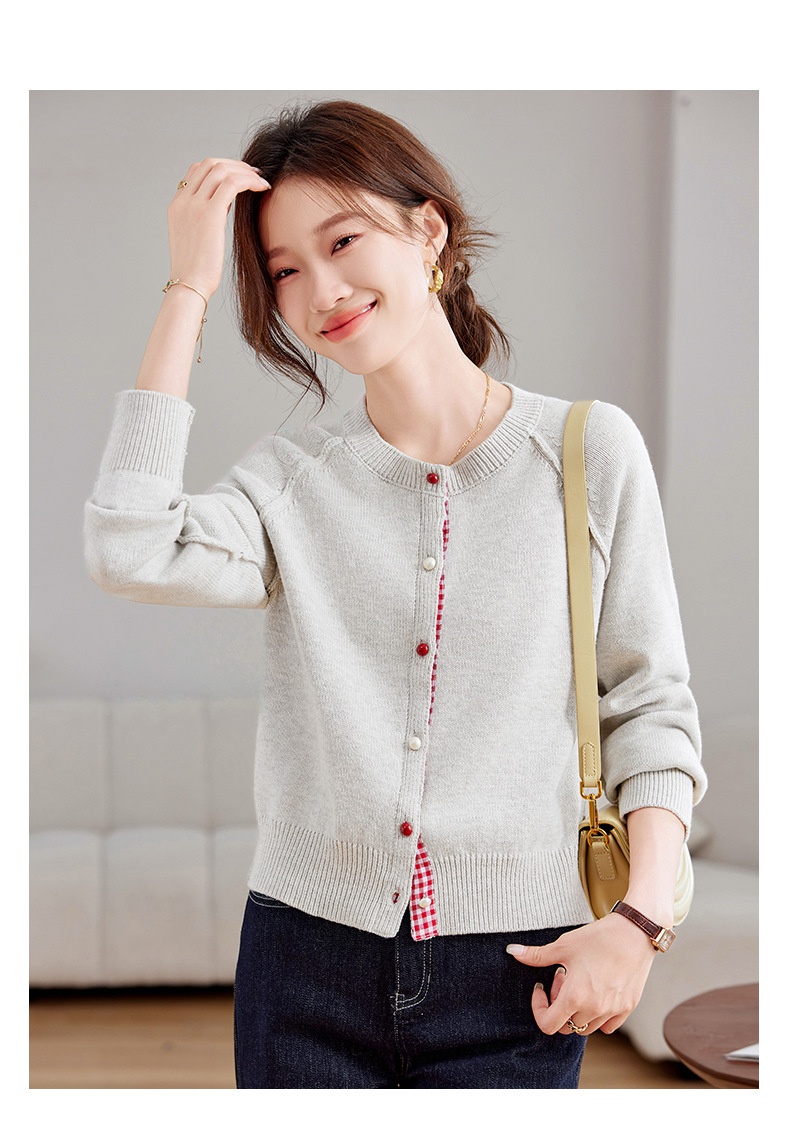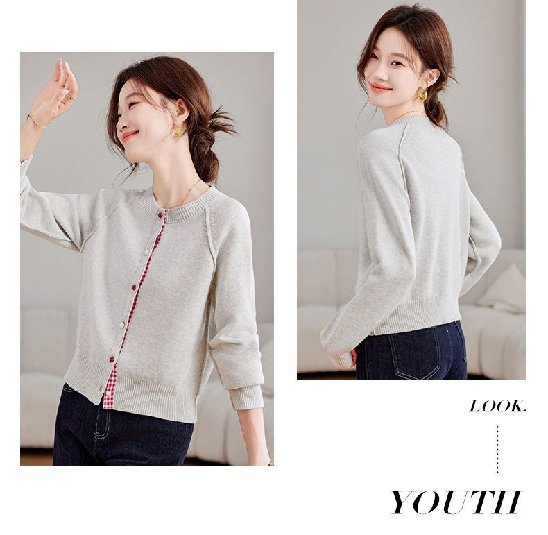 CC-SD2775春秋新款短款气质减龄圆领针织开衫女软糯拼色毛衣外套上衣