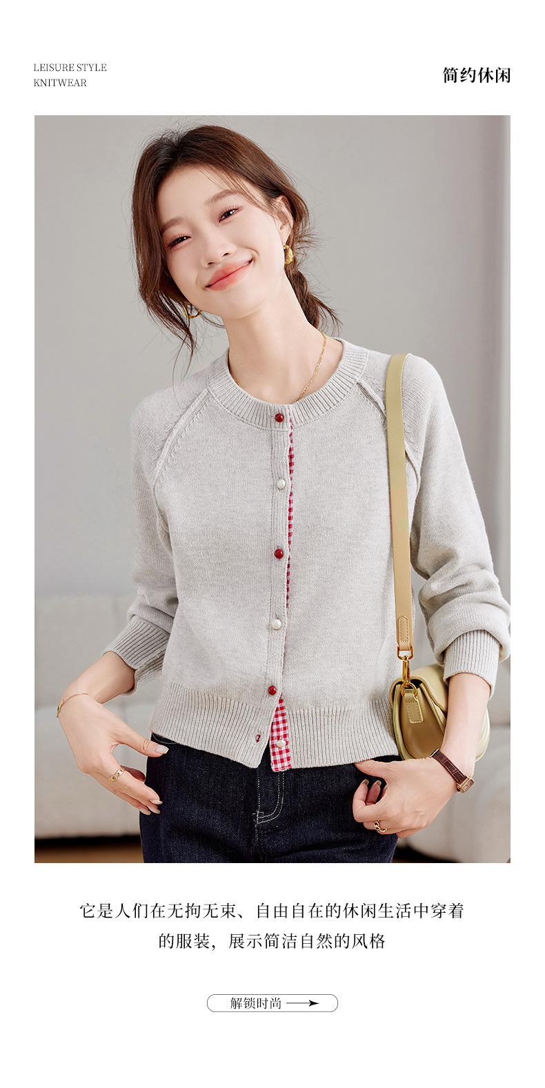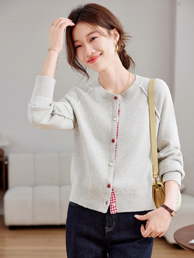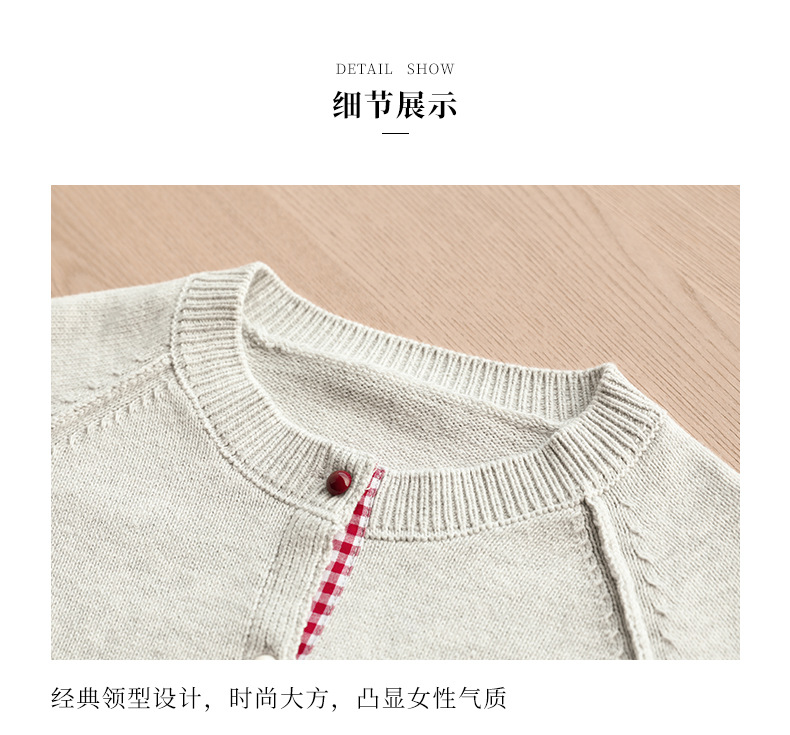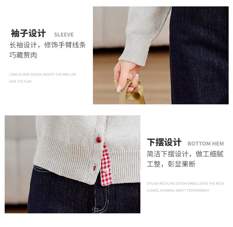 CC-SD2775春秋新款短款气质减龄圆领针织开衫女软糯拼色毛衣外套上衣