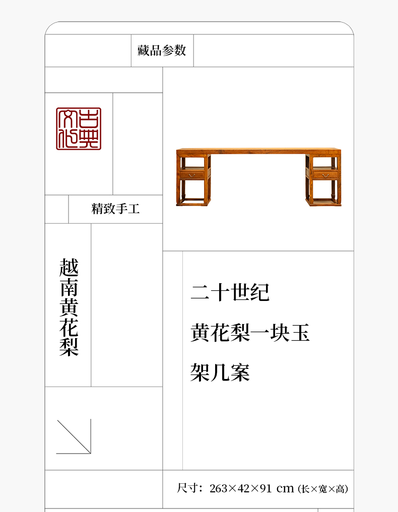 二十世纪 黄花梨一块玉架几案