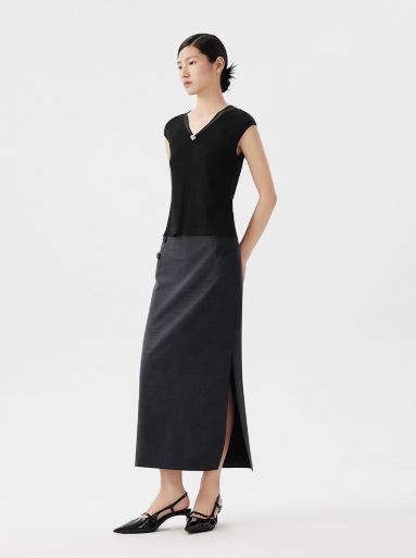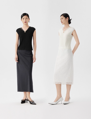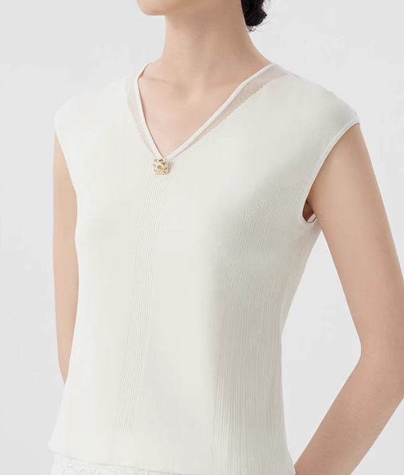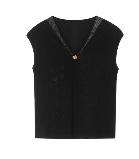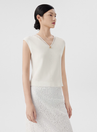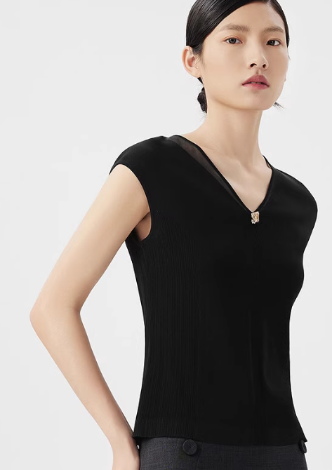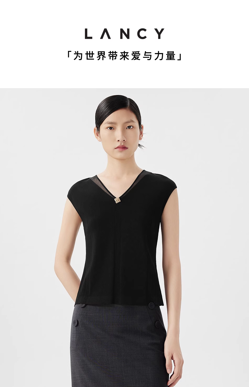 朗姿 设计感V领无袖针织背心LCET02KPR472