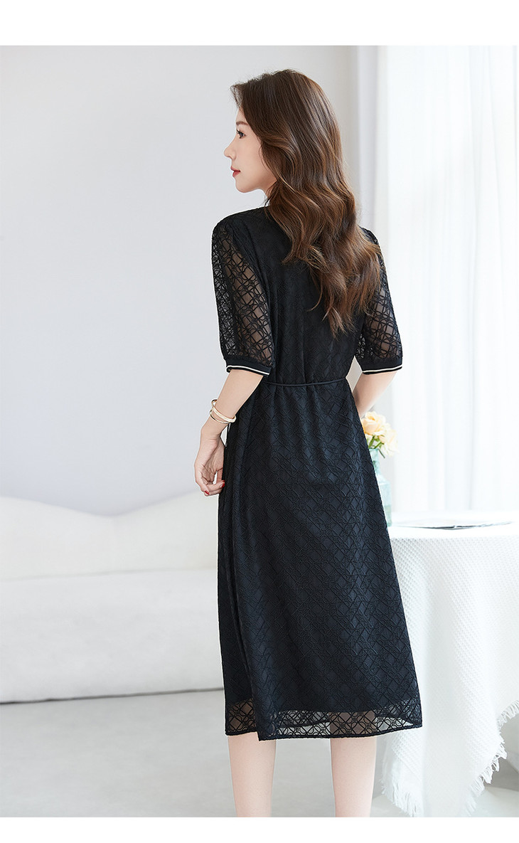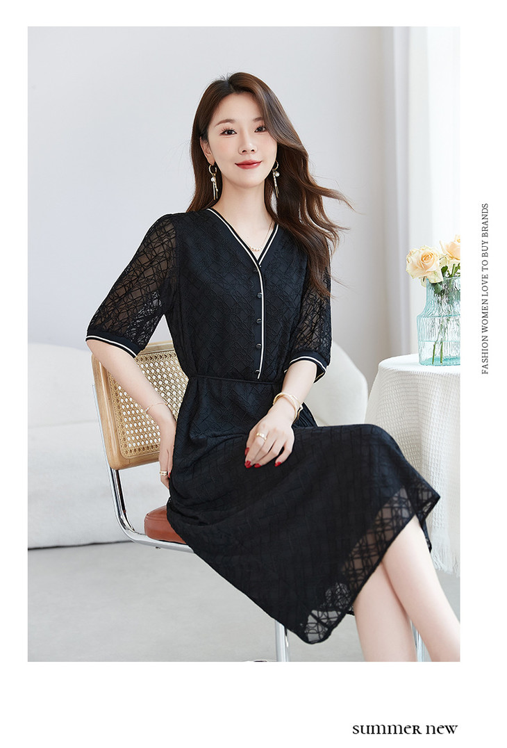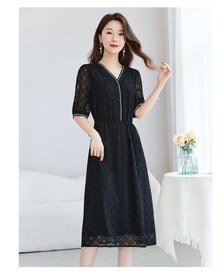轻奢大码V领减龄连衣裙,重工绣花真丝连衣裙SM-82501677
