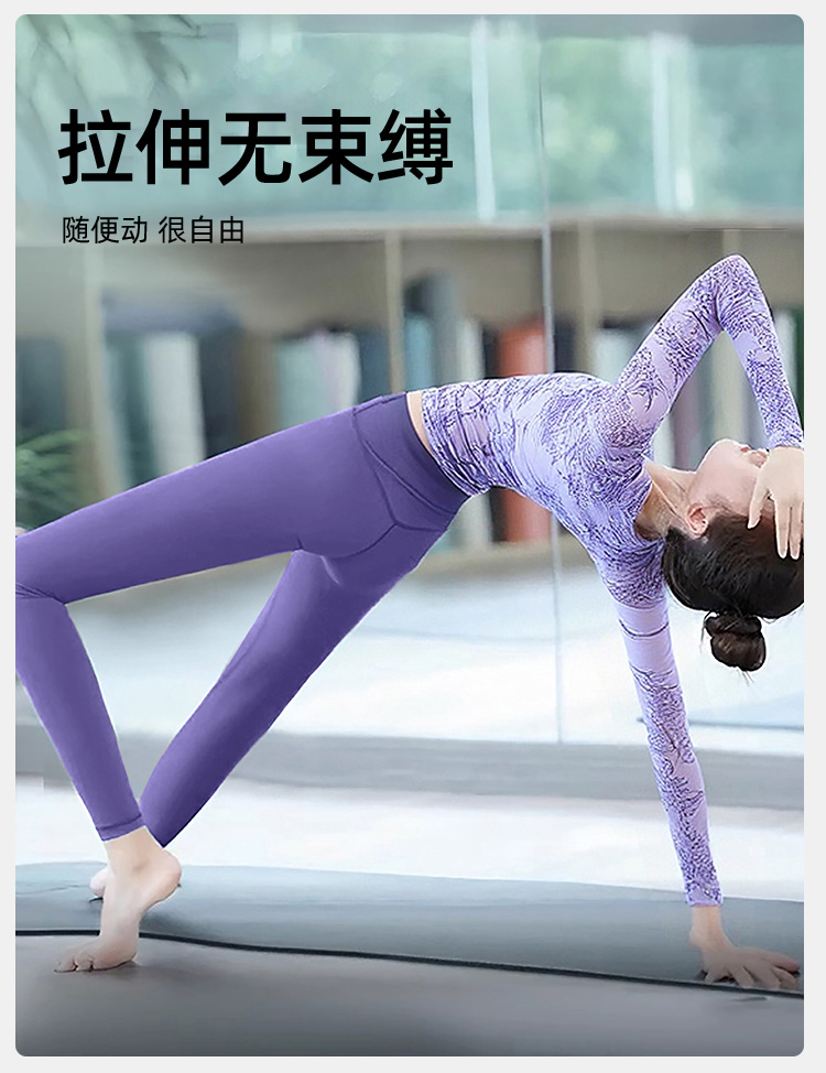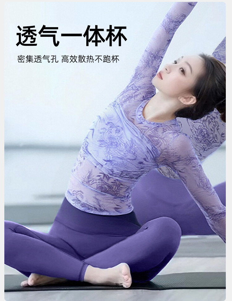 跃牌【海听系列】新款女长袖瑜伽服固定杯圆领国风水墨画印花T恤XC45