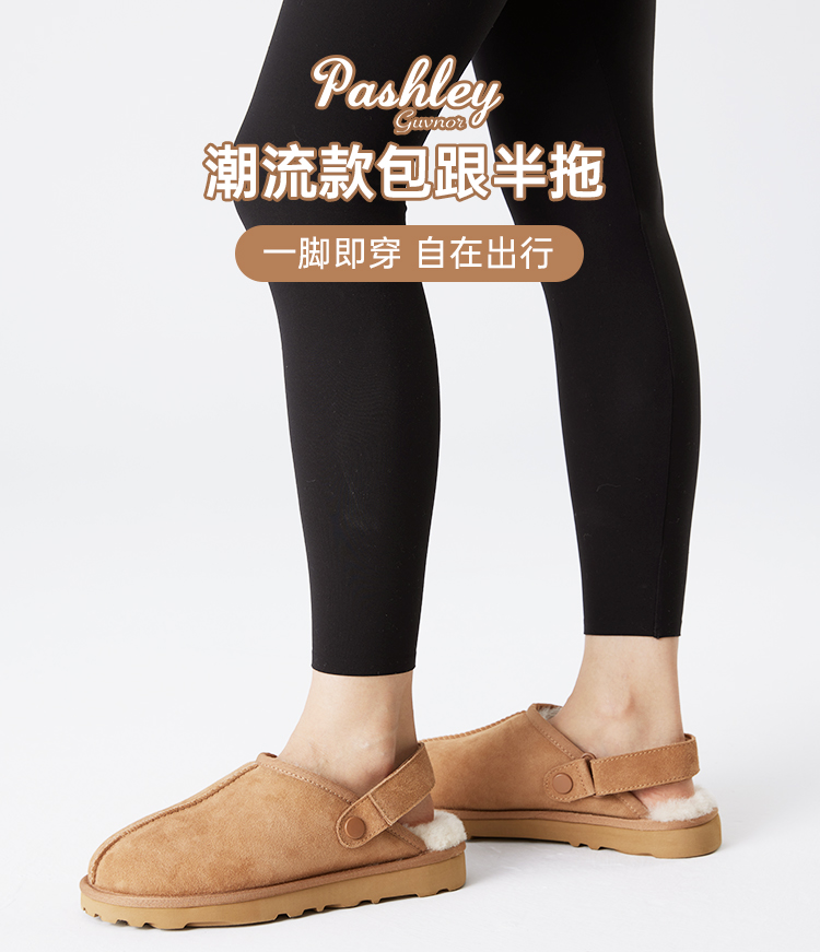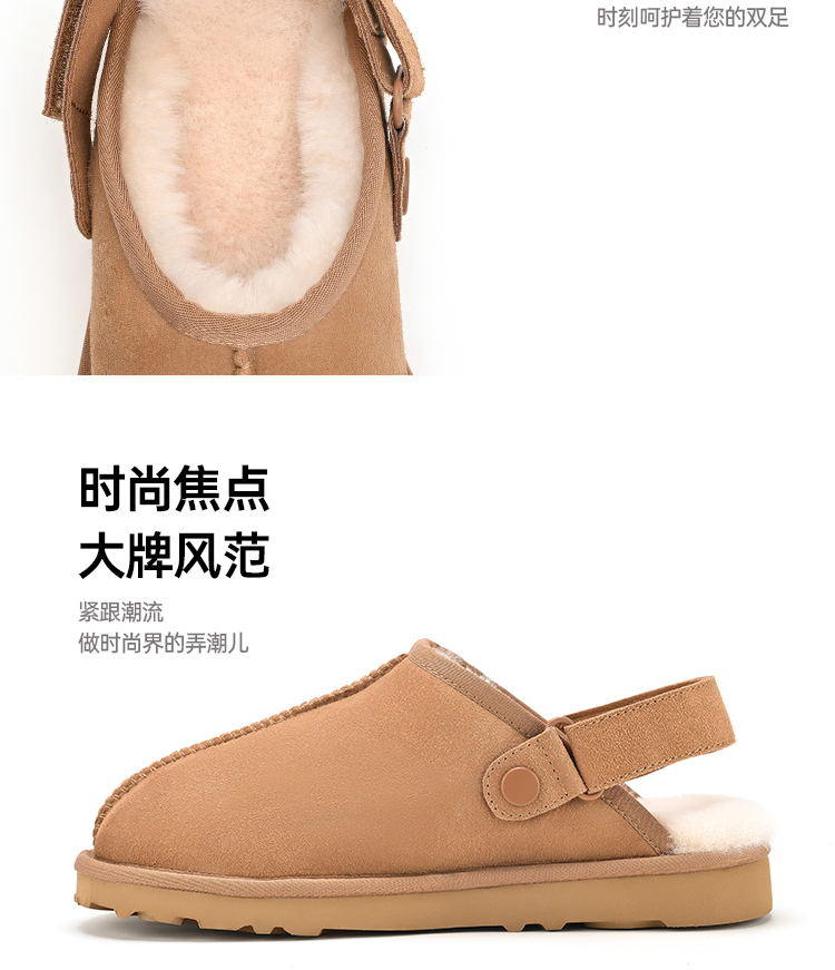 【梅花雪地靴】帕奢利羊皮毛一体平底低帮圆头软底拖鞋HZ003L