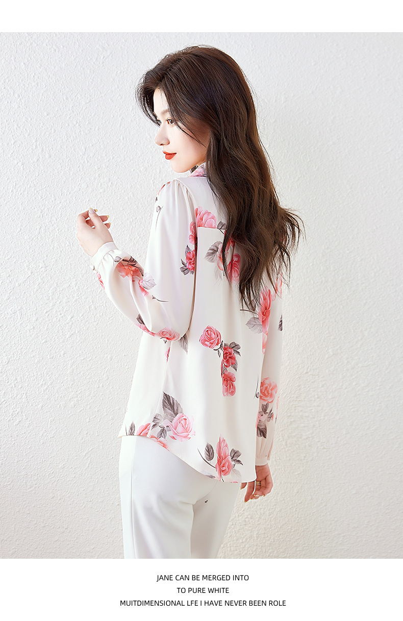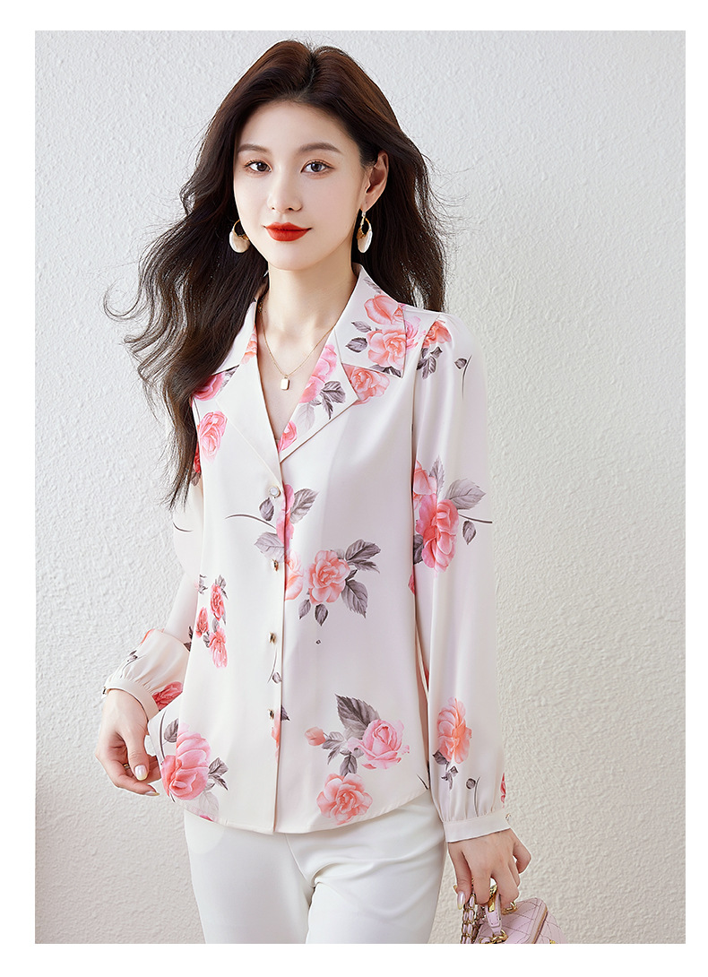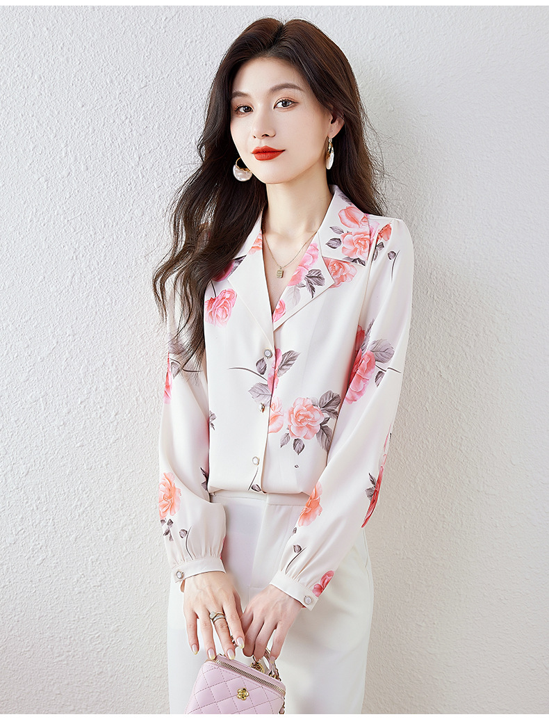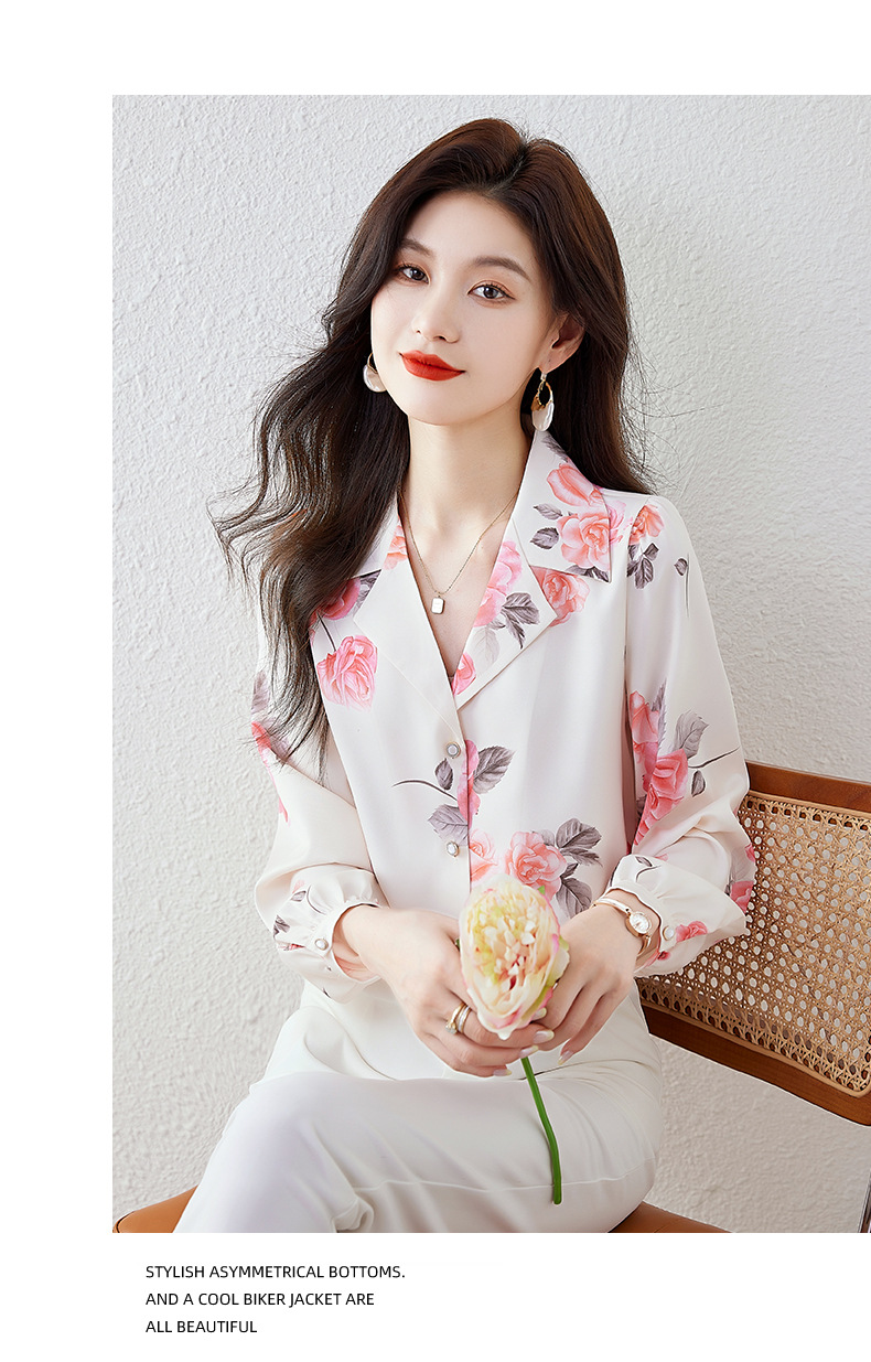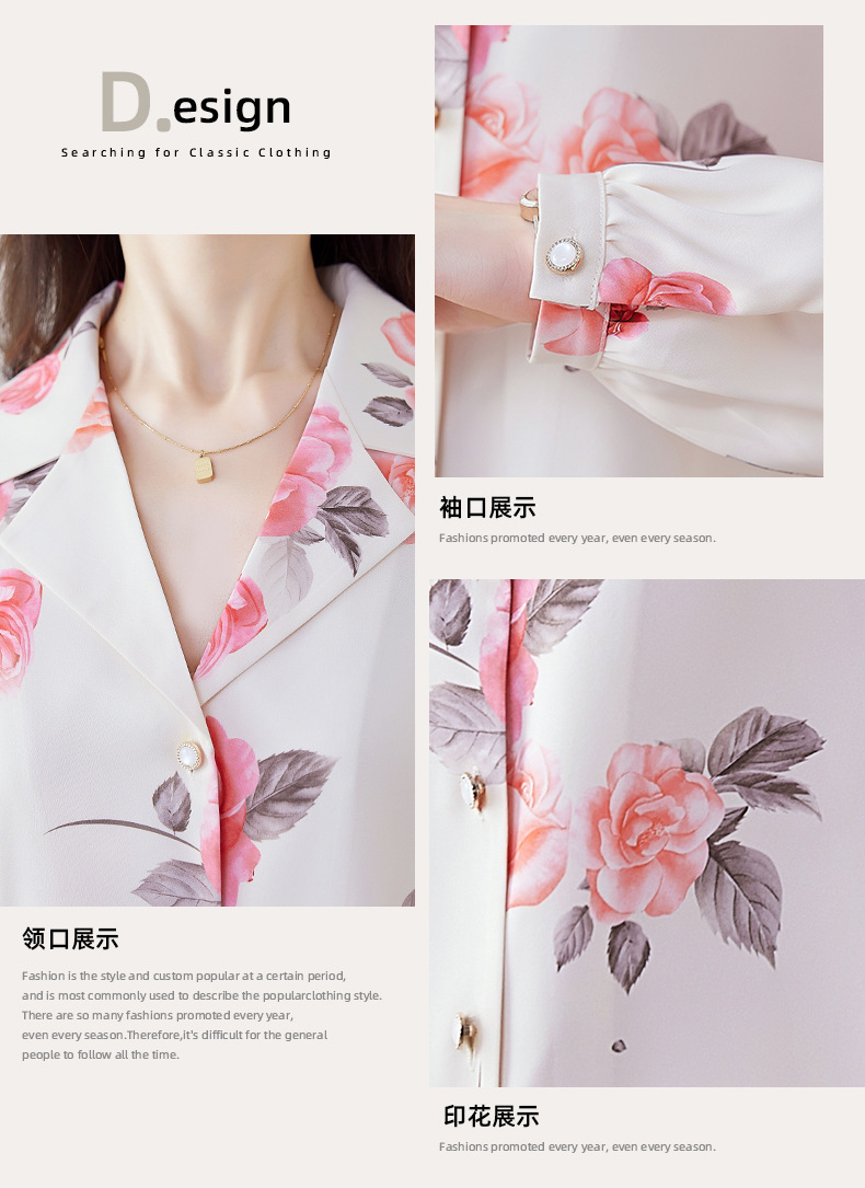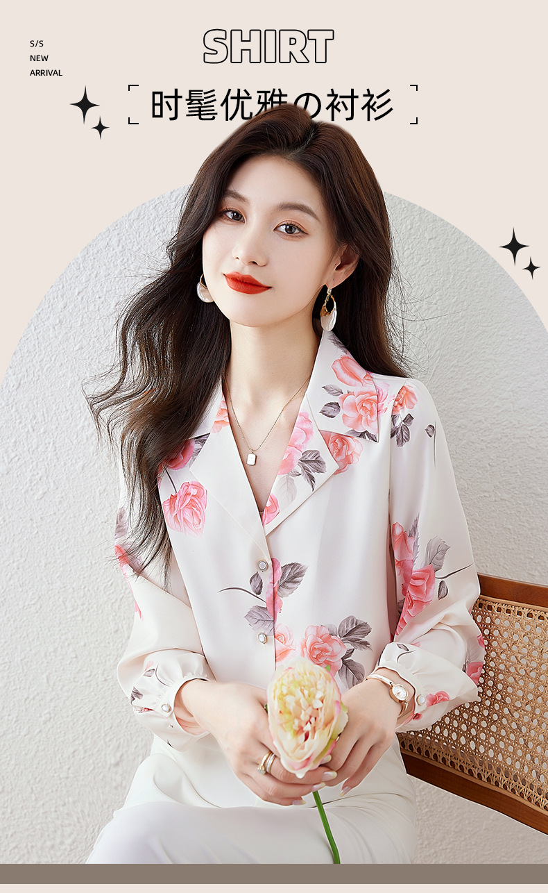雀说法式印花衬衫新款时尚洋气西装领特别设计感减龄上衣AL7779