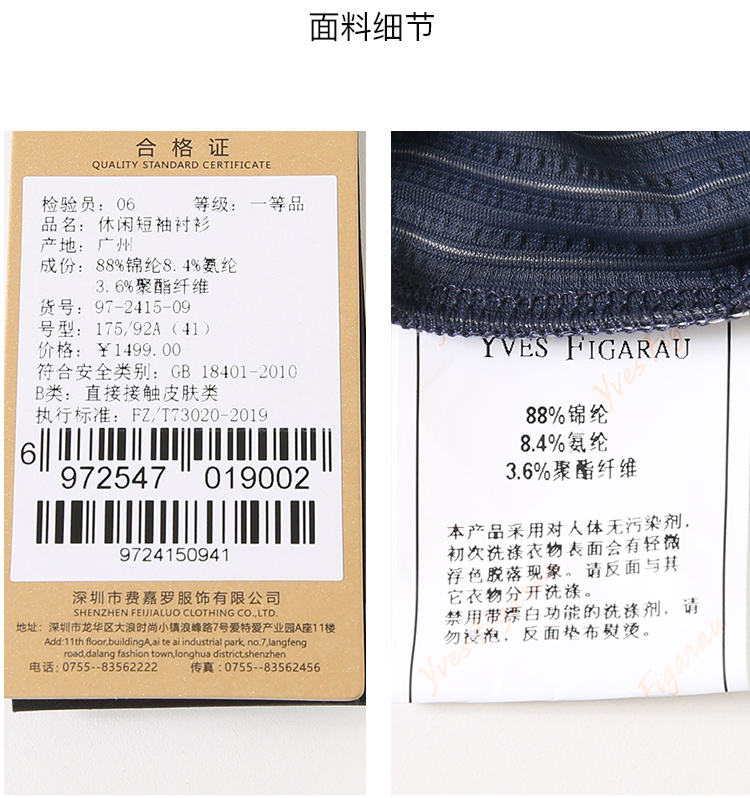 YvesFigarau伊夫·费嘉罗新款休闲短袖衬衫972415