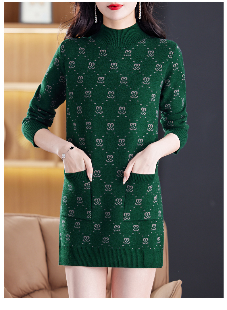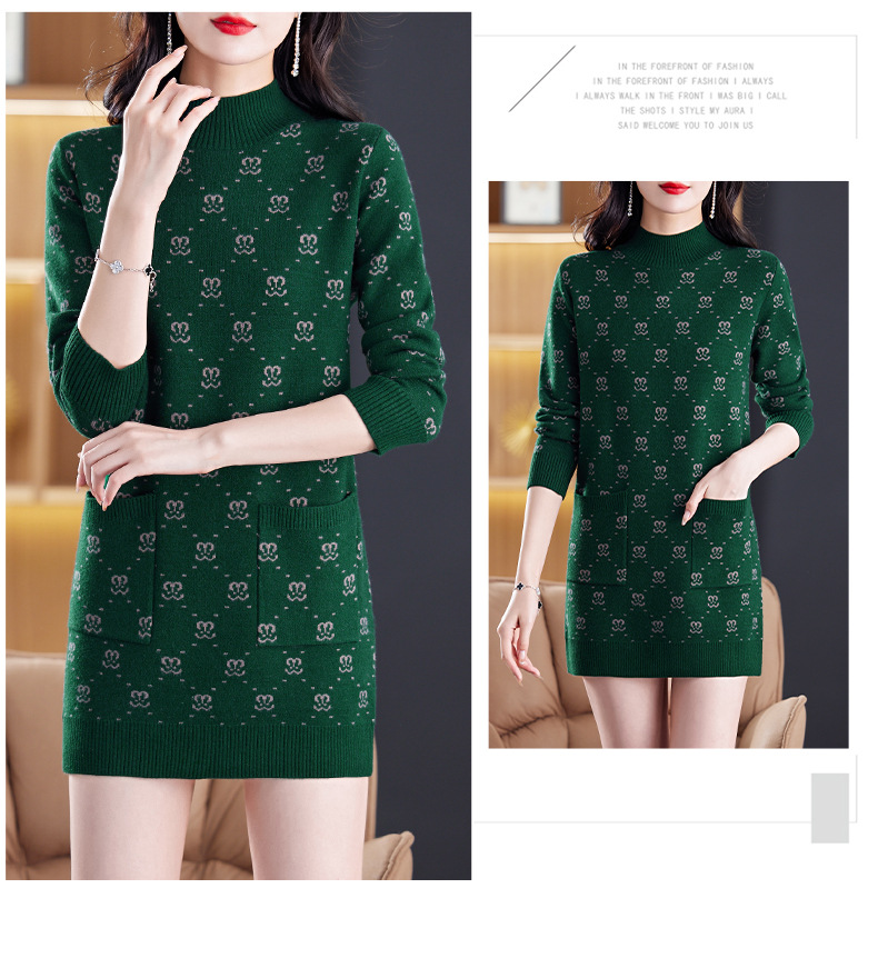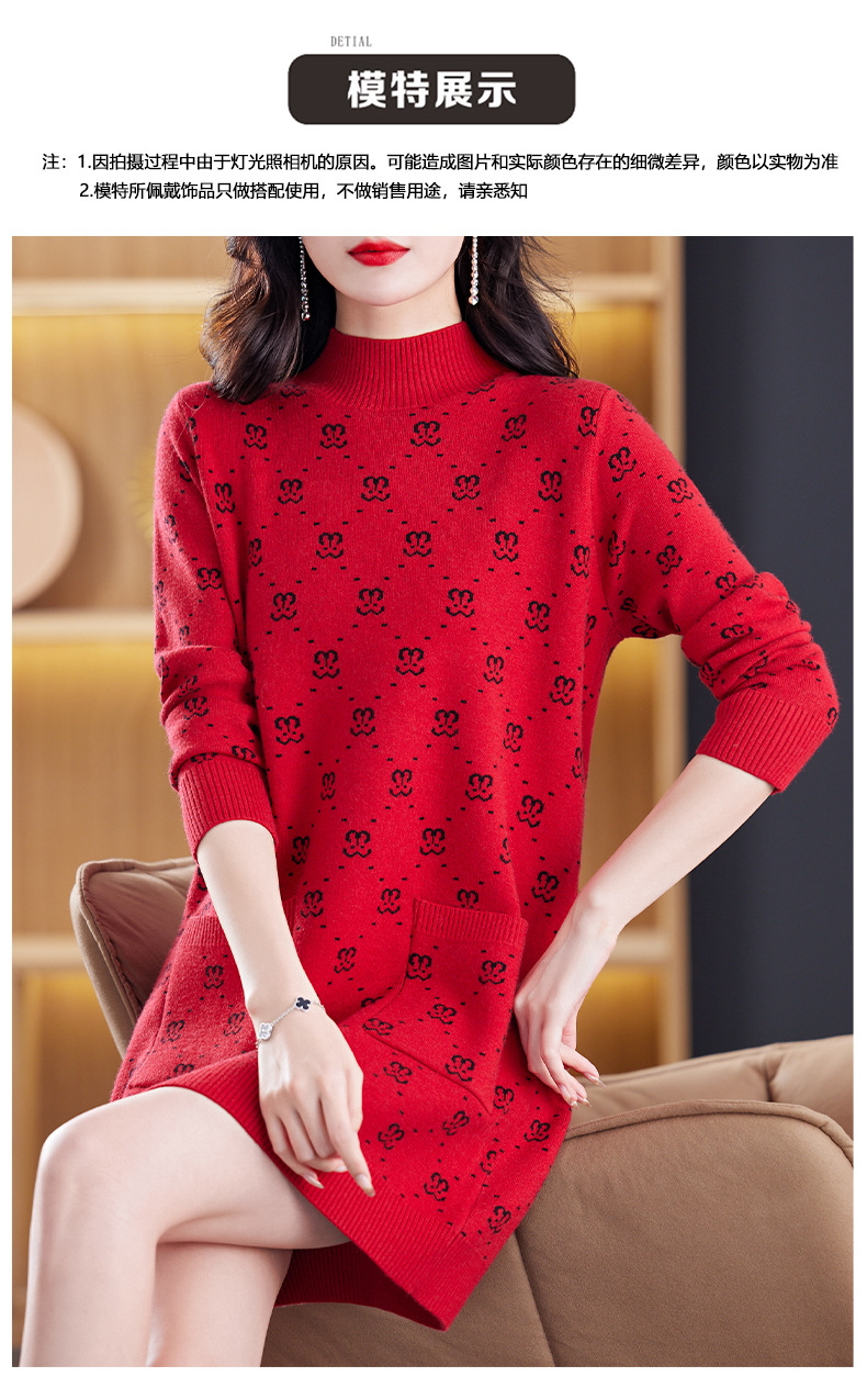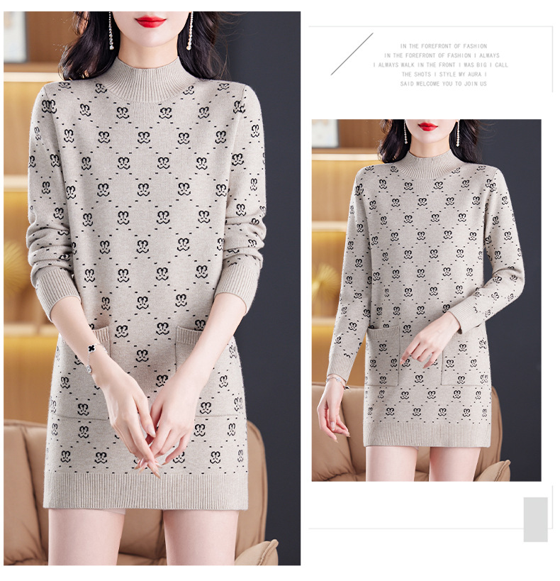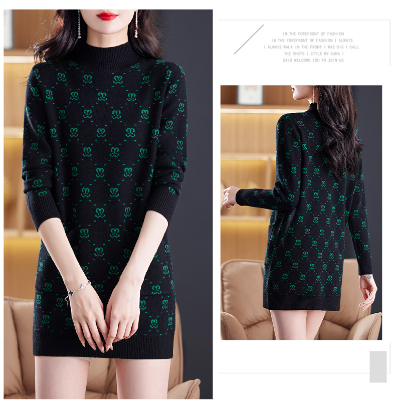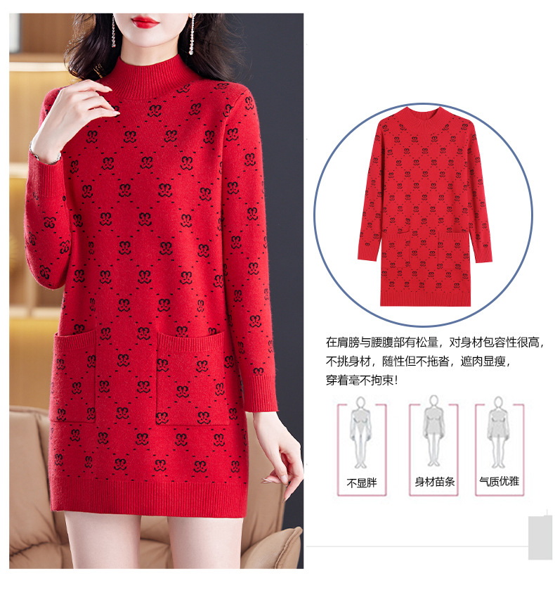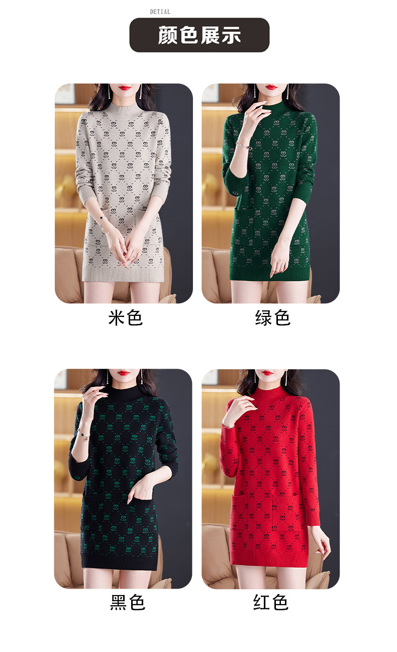 秋冬季新款,中长款毛衣女遮屁股洋气厚款半高领打底衫提花内搭CC-XX-3717