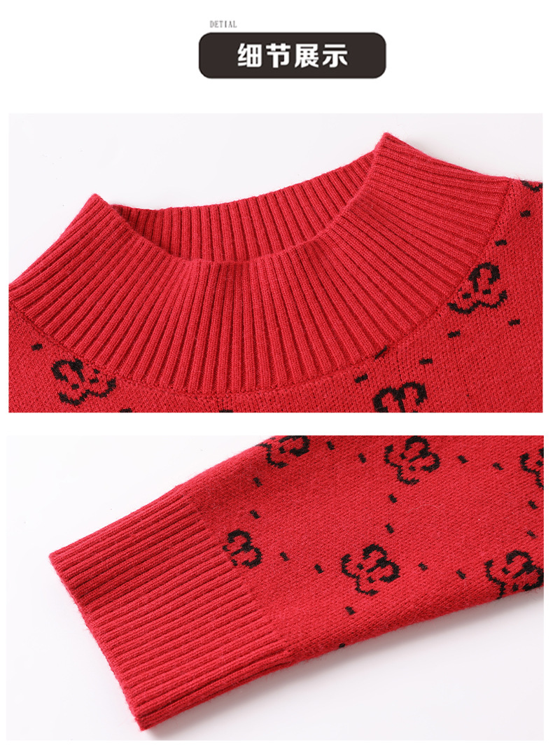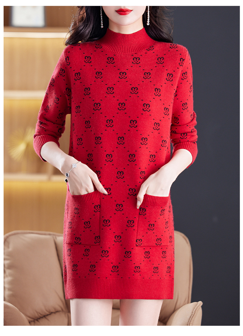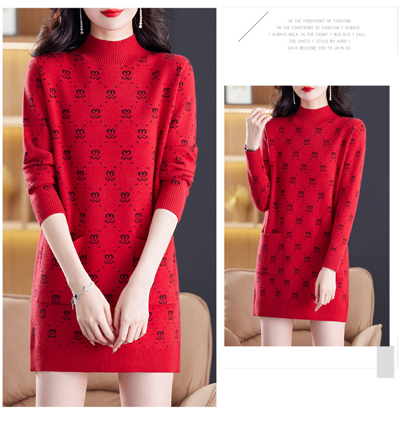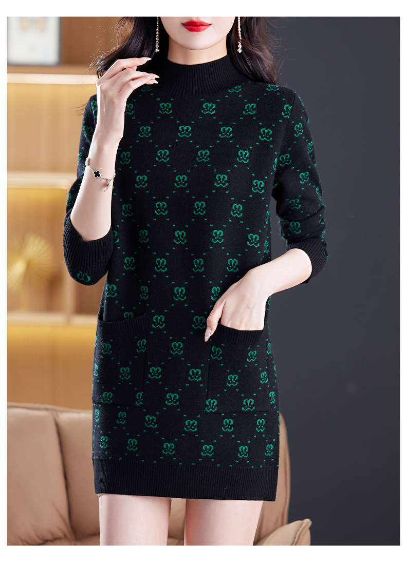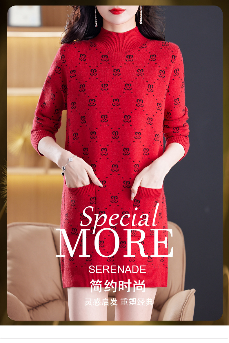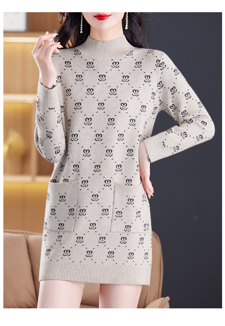 秋冬季新款,中长款毛衣女遮屁股洋气厚款半高领打底衫提花内搭CC-XX-3717