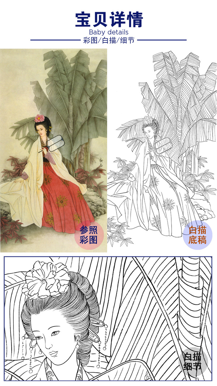 竖幅工笔传统仕女人物白描底稿-B029