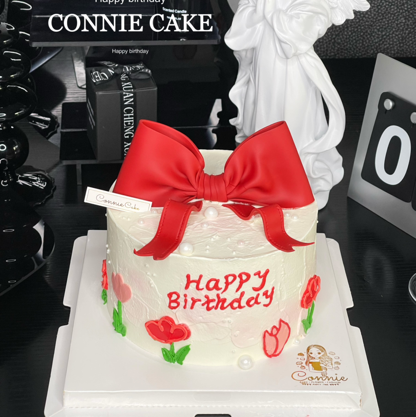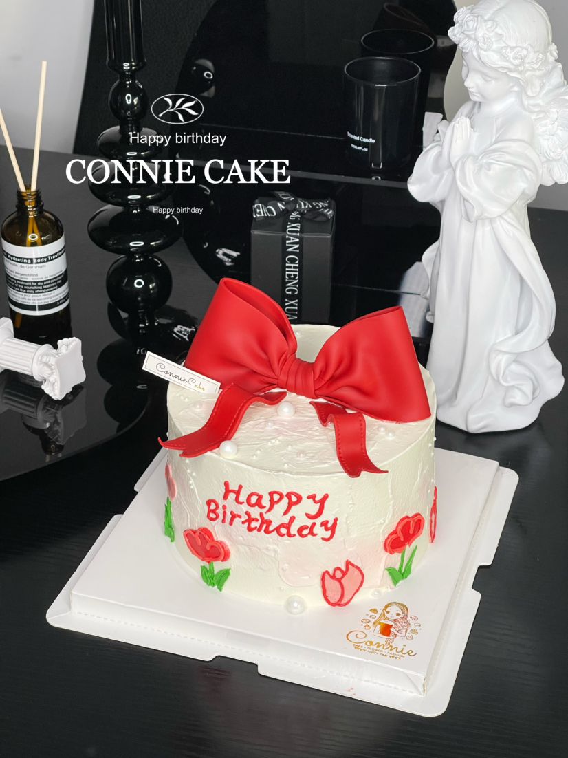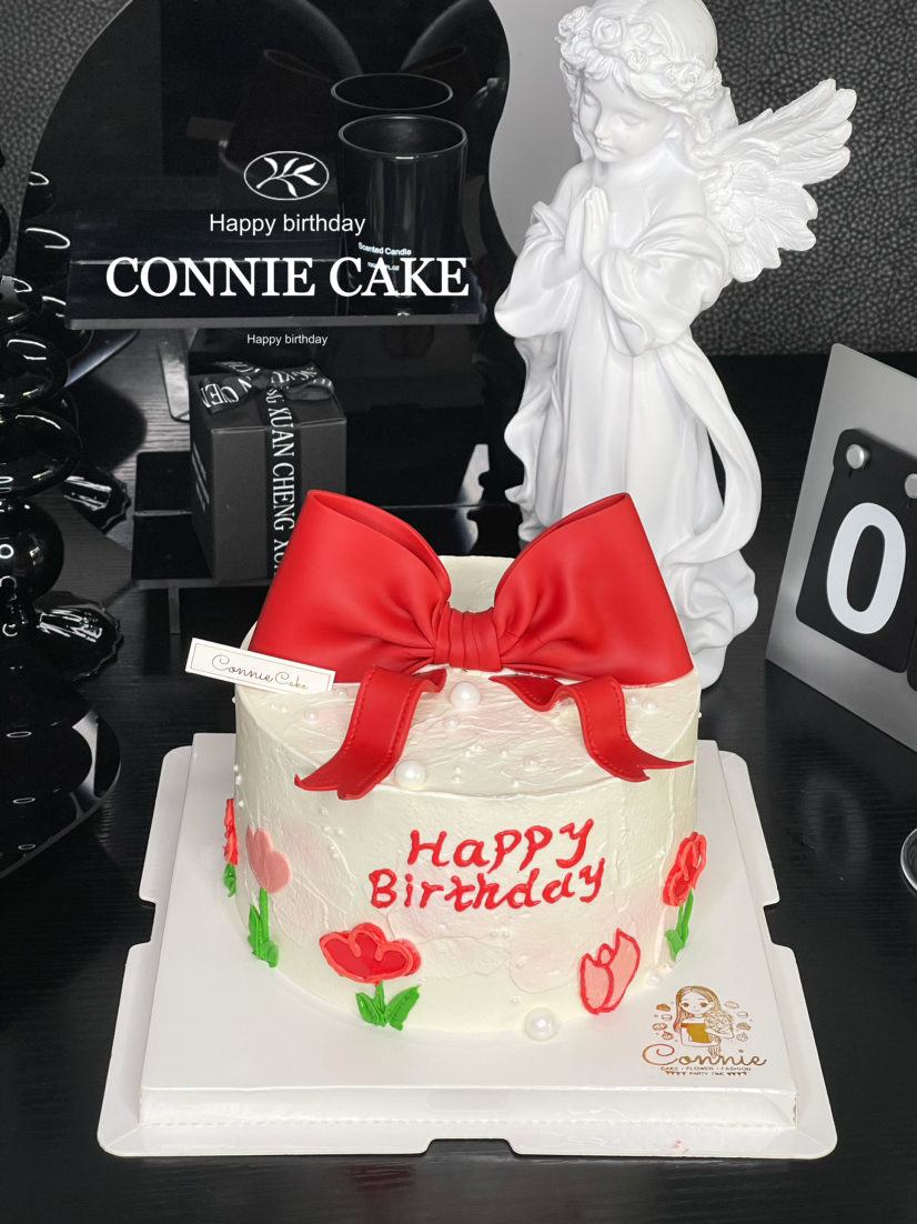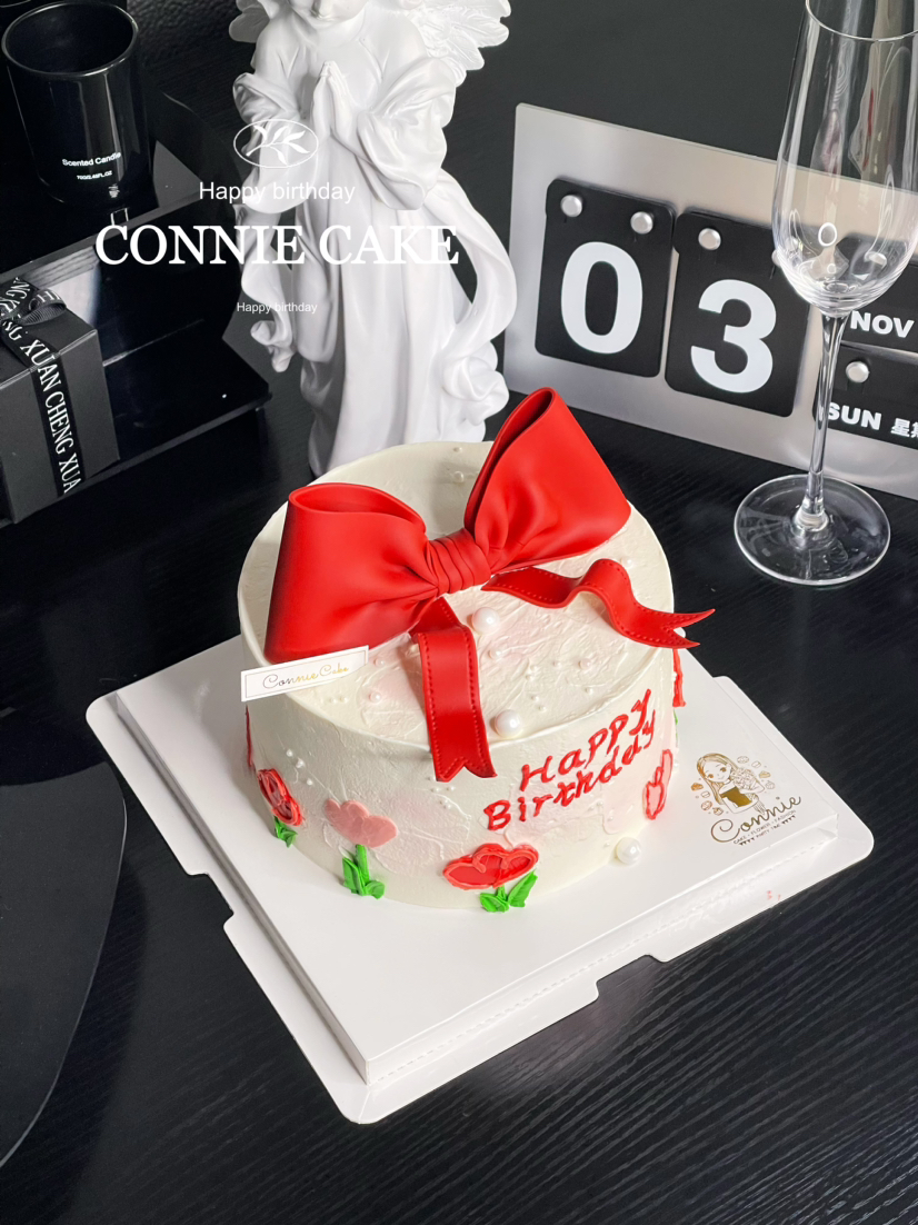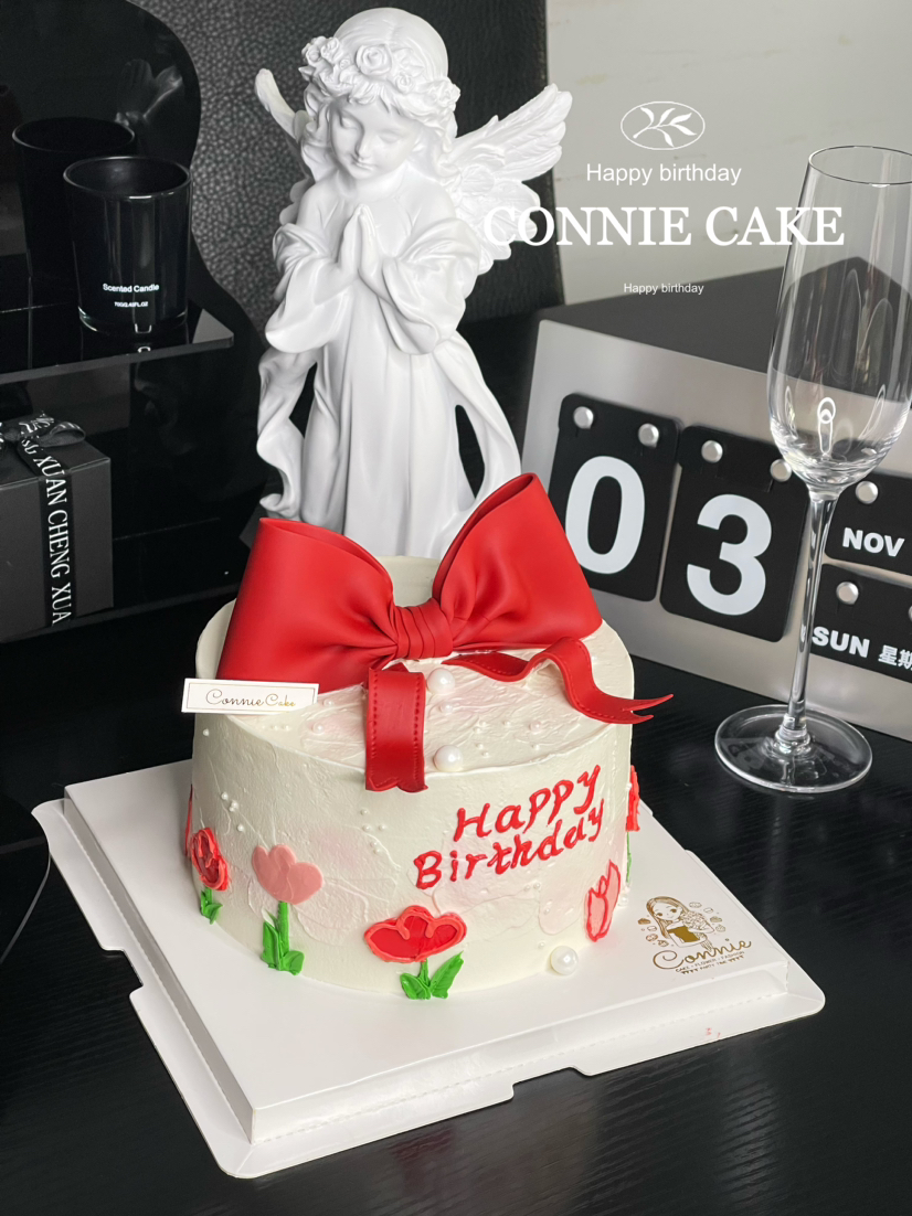 【1218】翻糖蝴蝶结手绘蛋糕(红色)