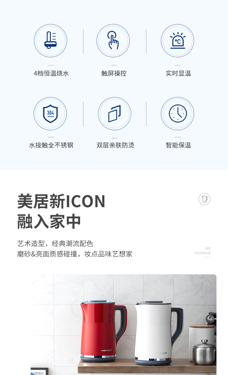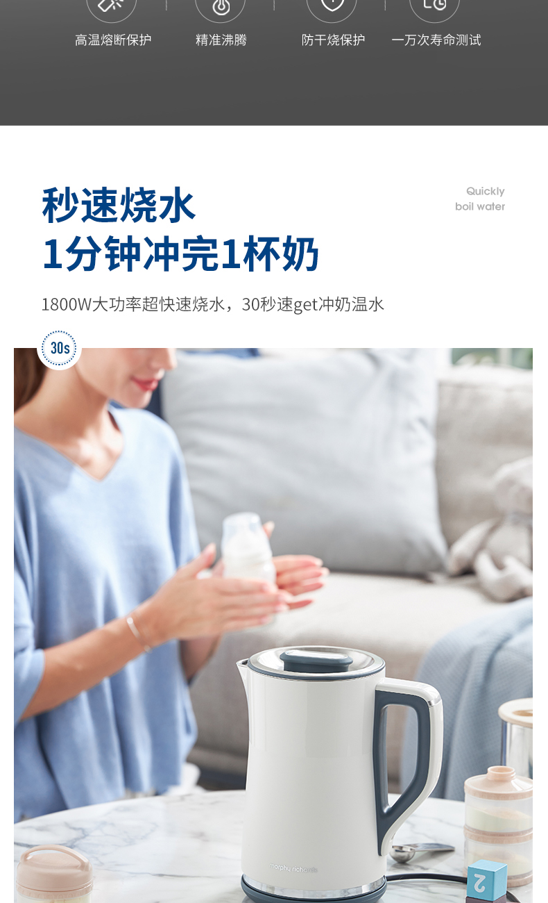 1.5L摩飞电热水壶MR6070(灰)(次日起提配)