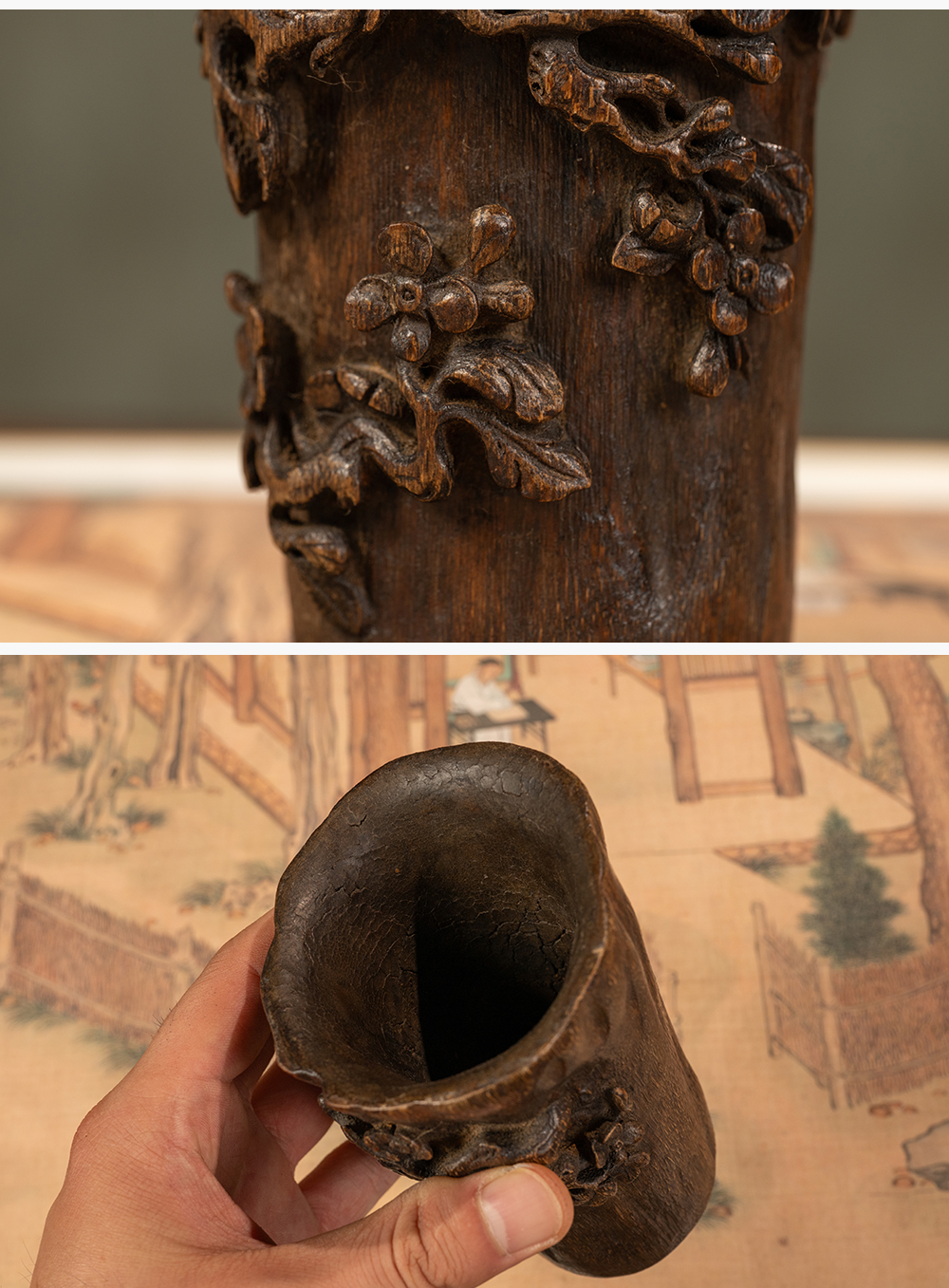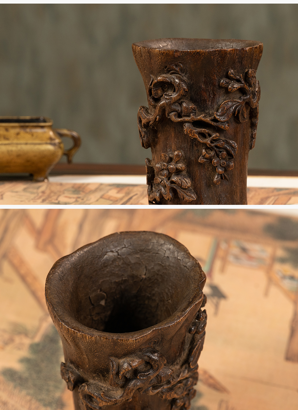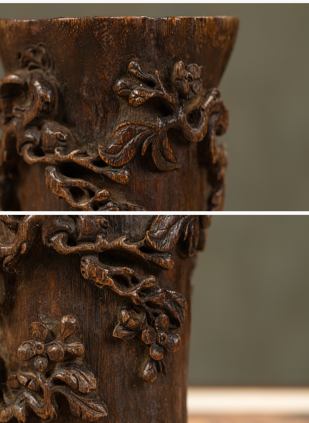 清 黄花梨镶竹丝编四抹门亮格柜摆件