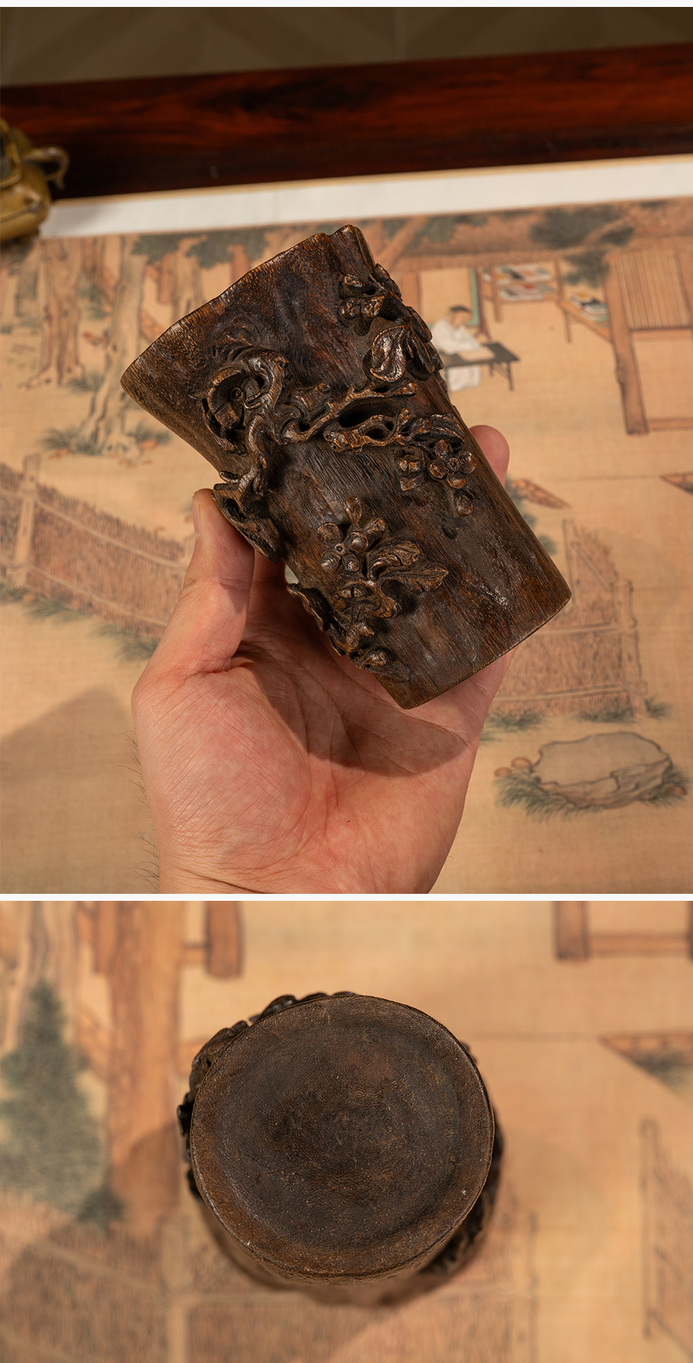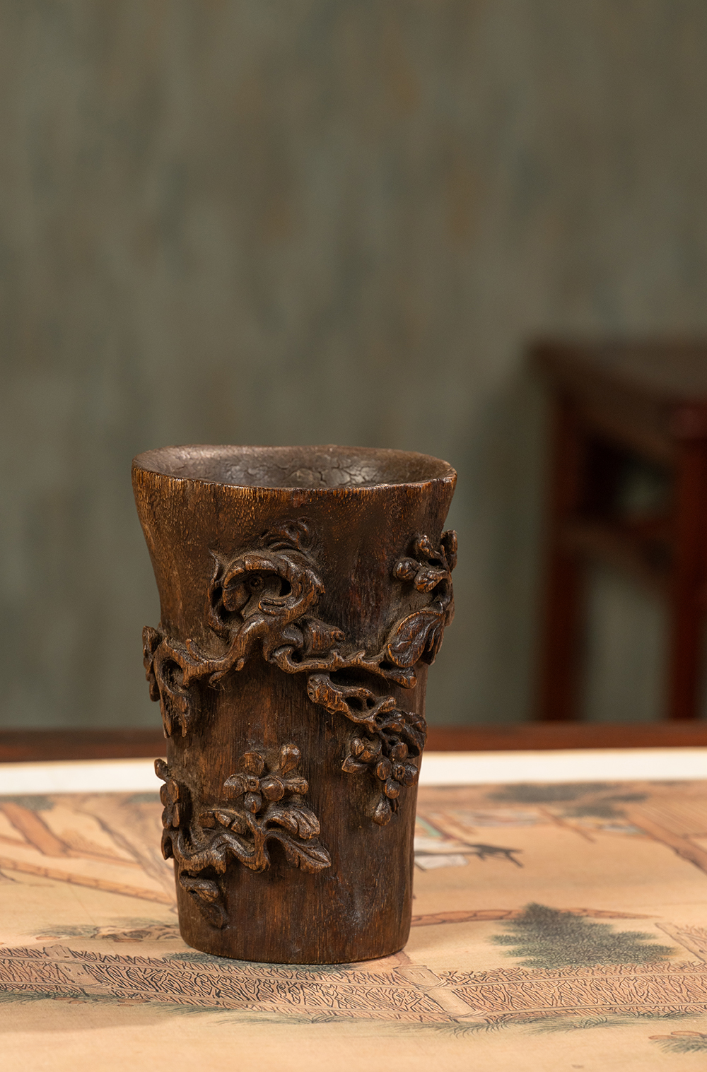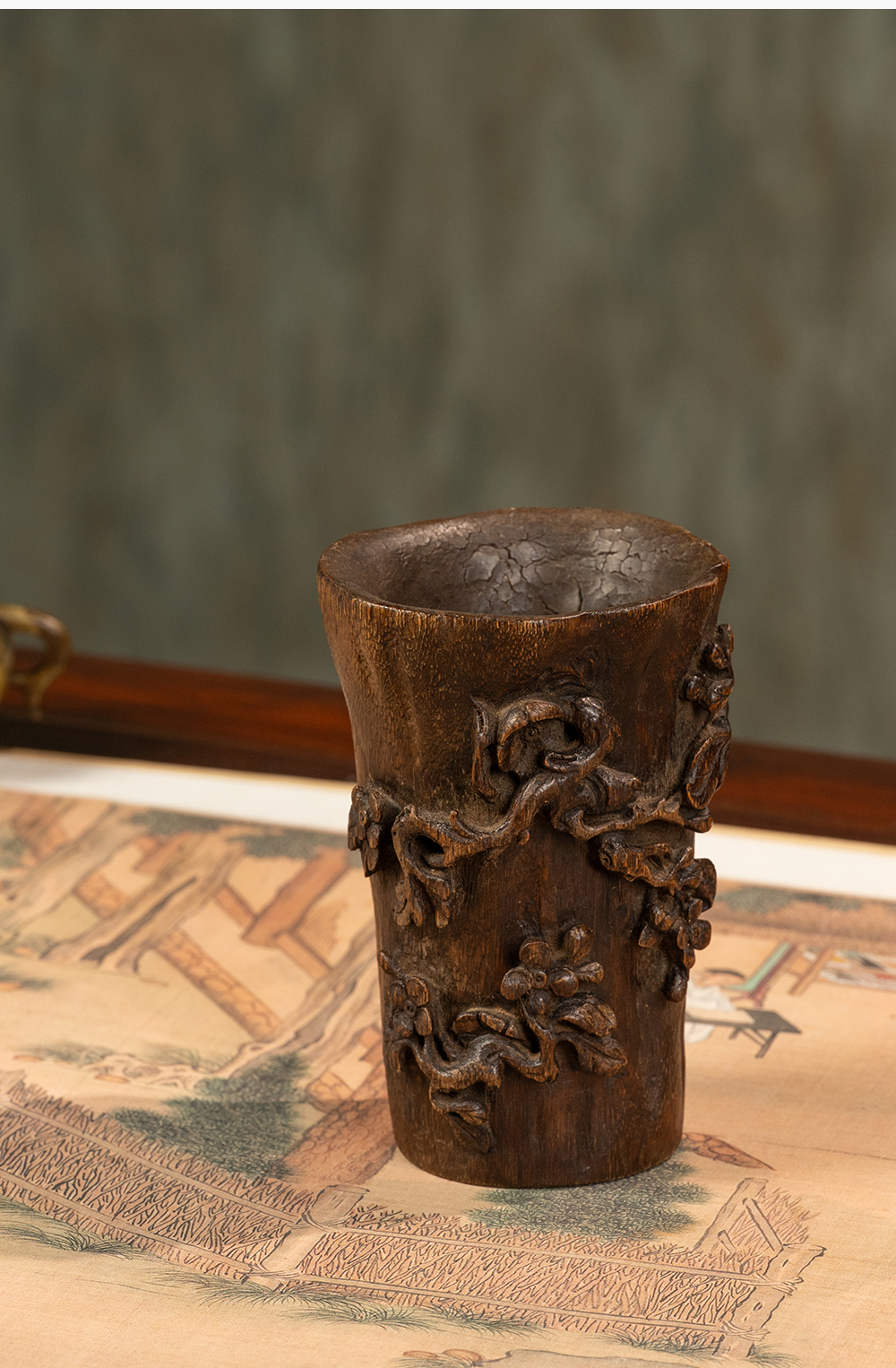 清 黄花梨镶竹丝编四抹门亮格柜摆件