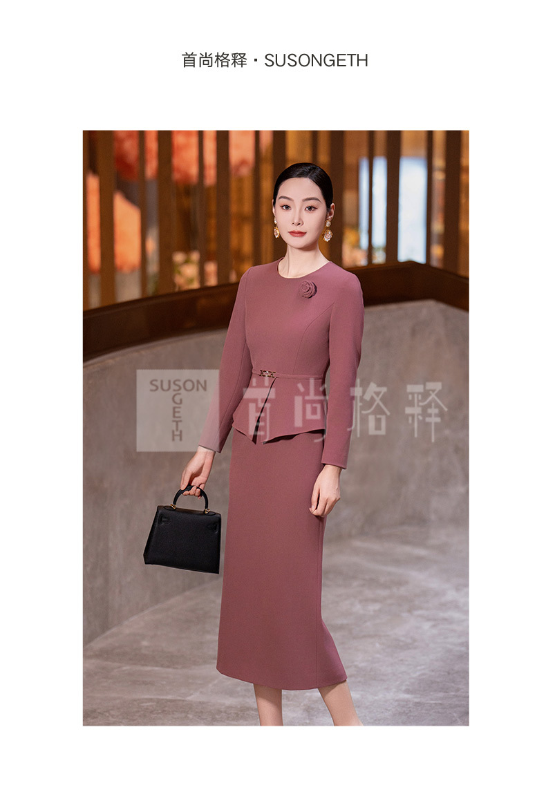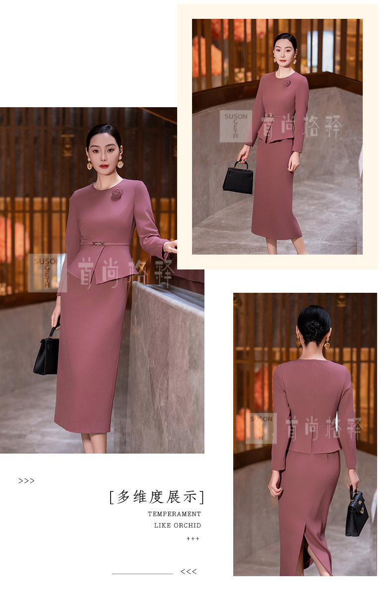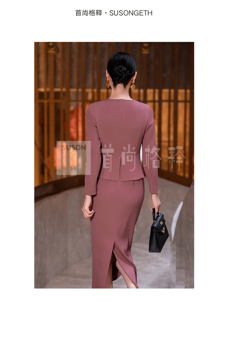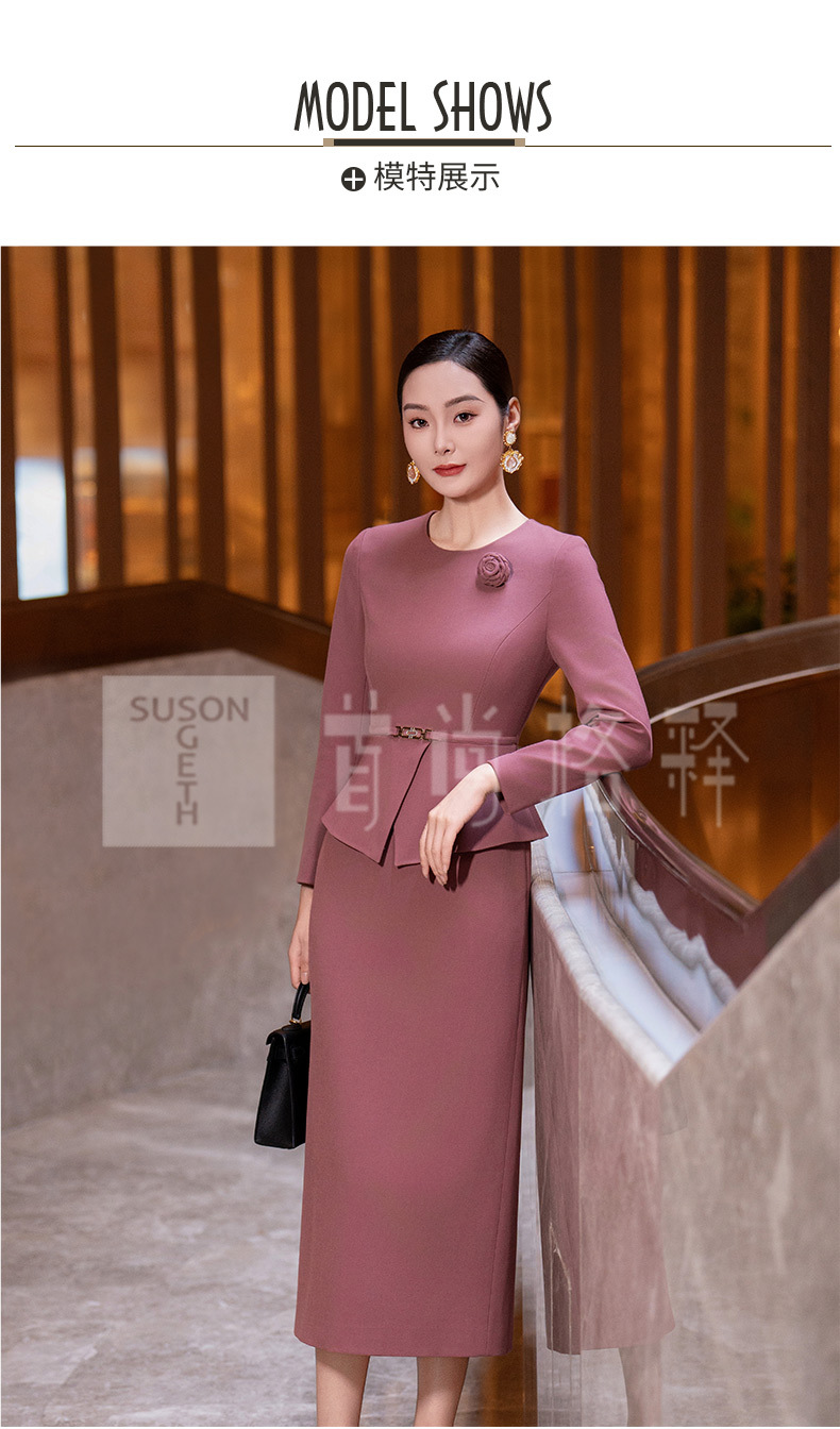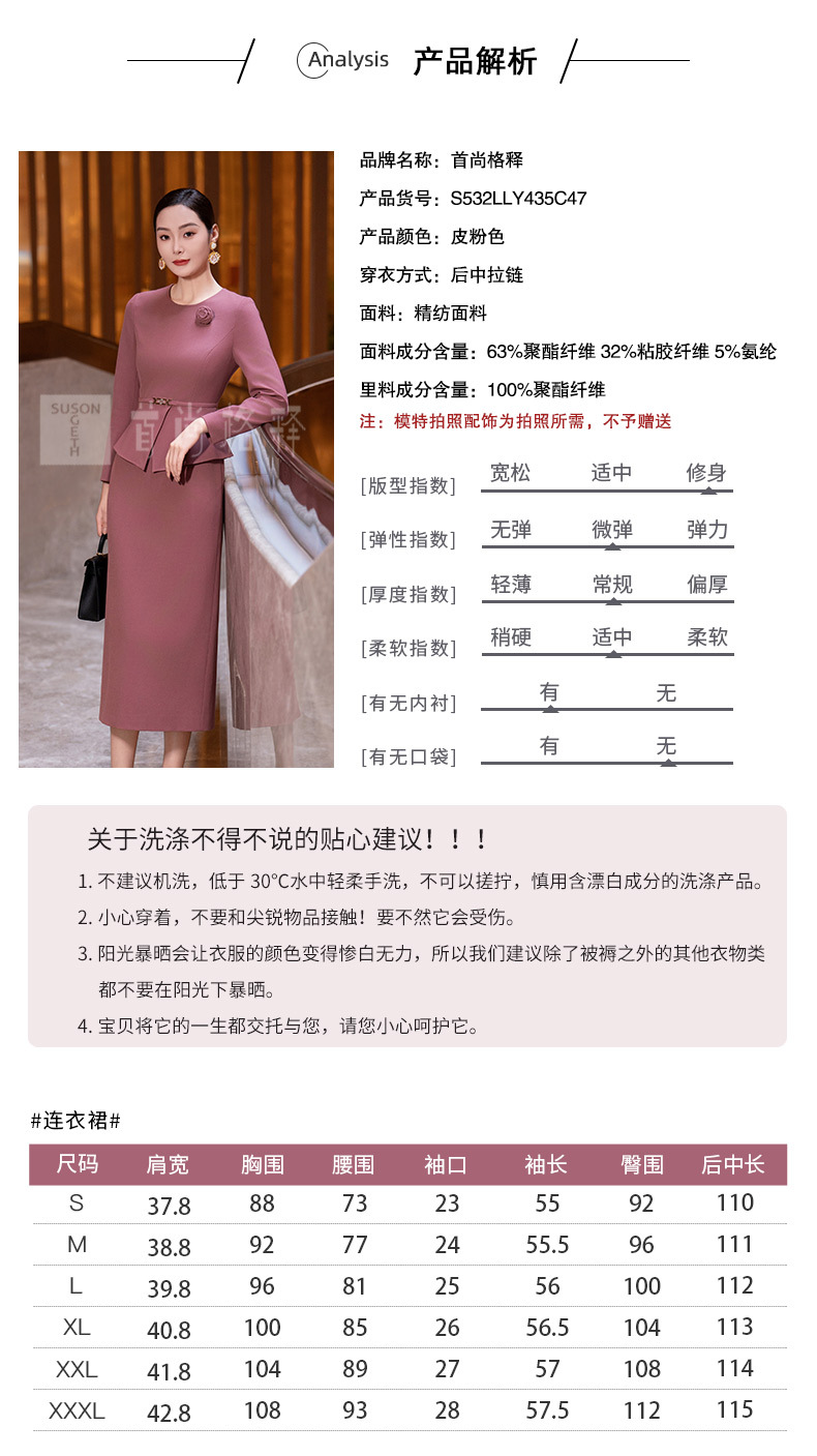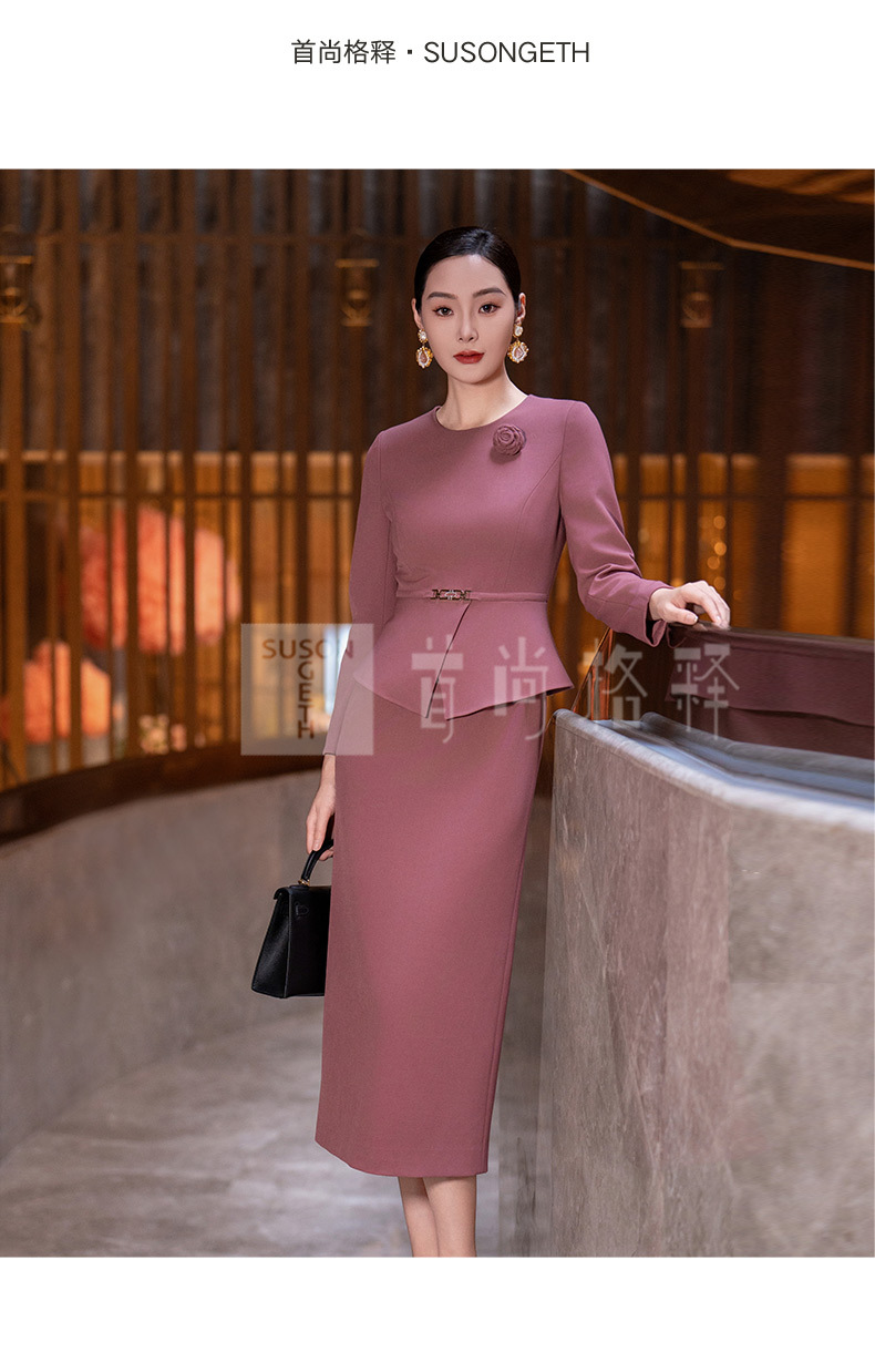Y435粉色连衣裙女2025秋季新款气质时尚减龄修身显瘦假两件长袖直筒裙