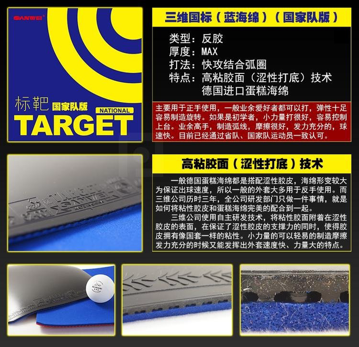 SANWEI三维 蓝海绵国标靶/省标靶/德国蛋糕粘性胶皮